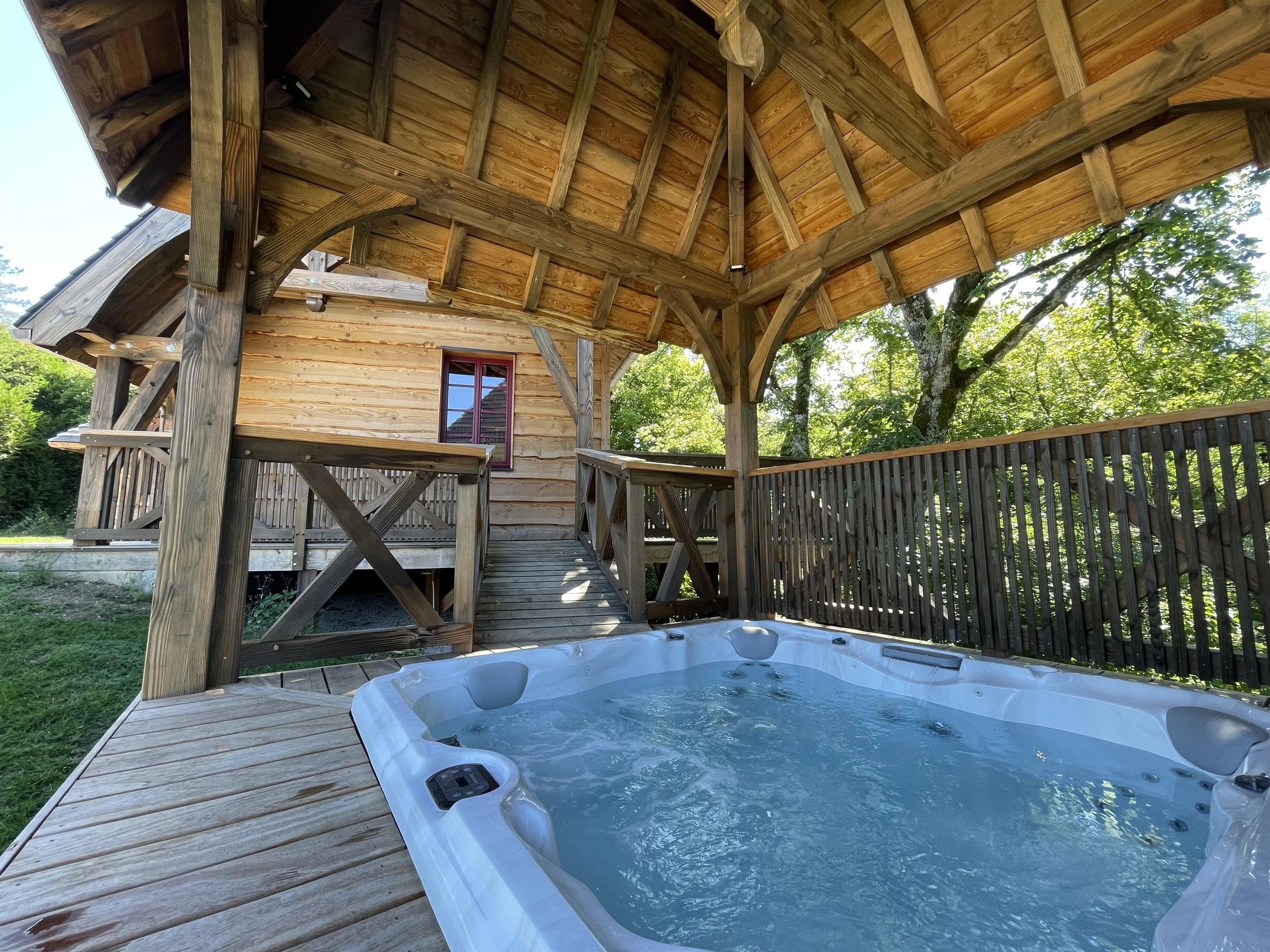 Un large salon/salle à manger avec cuisine ouverte toute équipée s'ouvre sur une terrasse ombragée. Un ponton vous mènera au SPA extérieur abrité. La salle d'eau moderne est équipée d'une large douche avec double colonne (2 douches) et d'une double vasque. WC indépendants.
