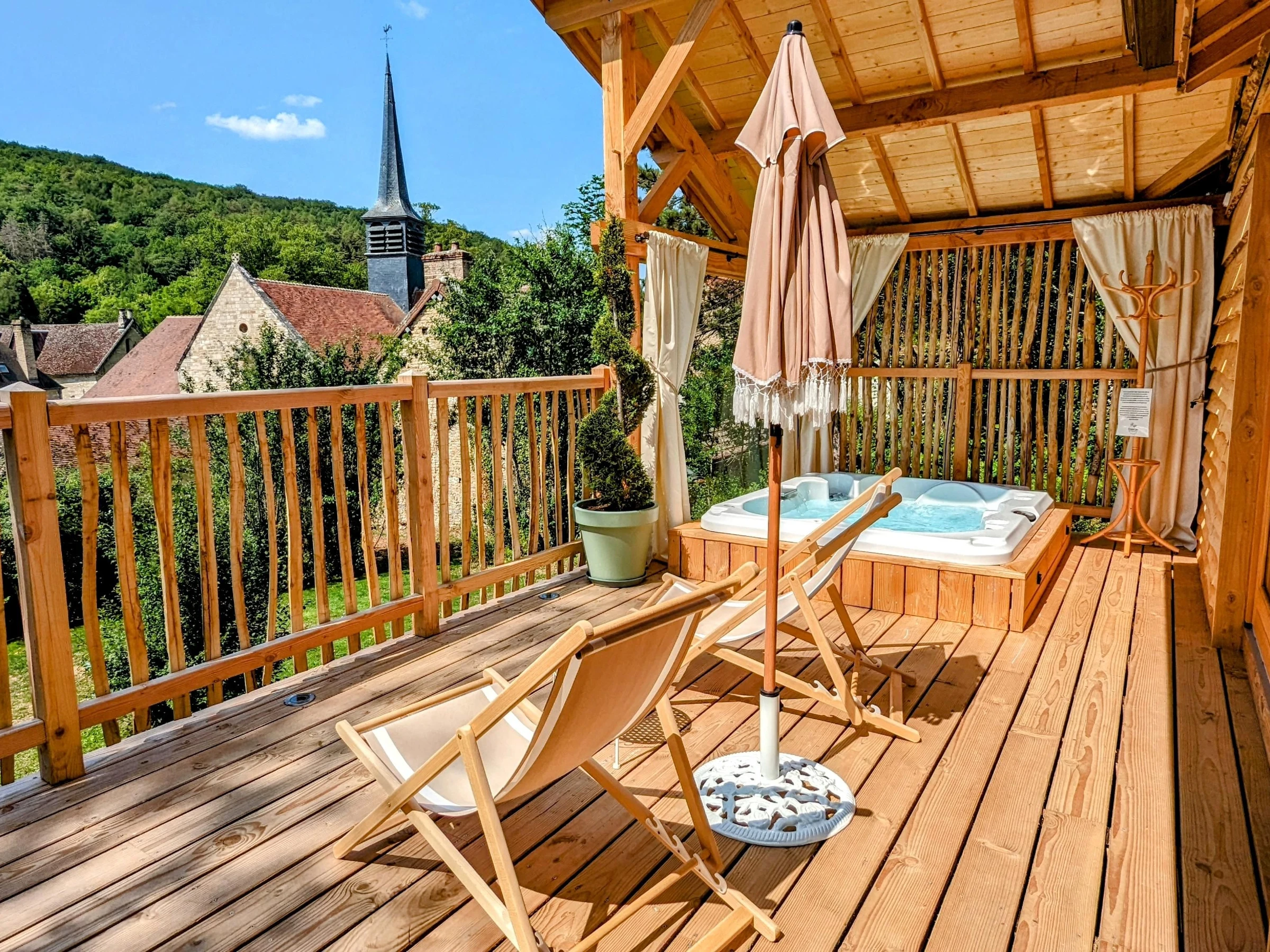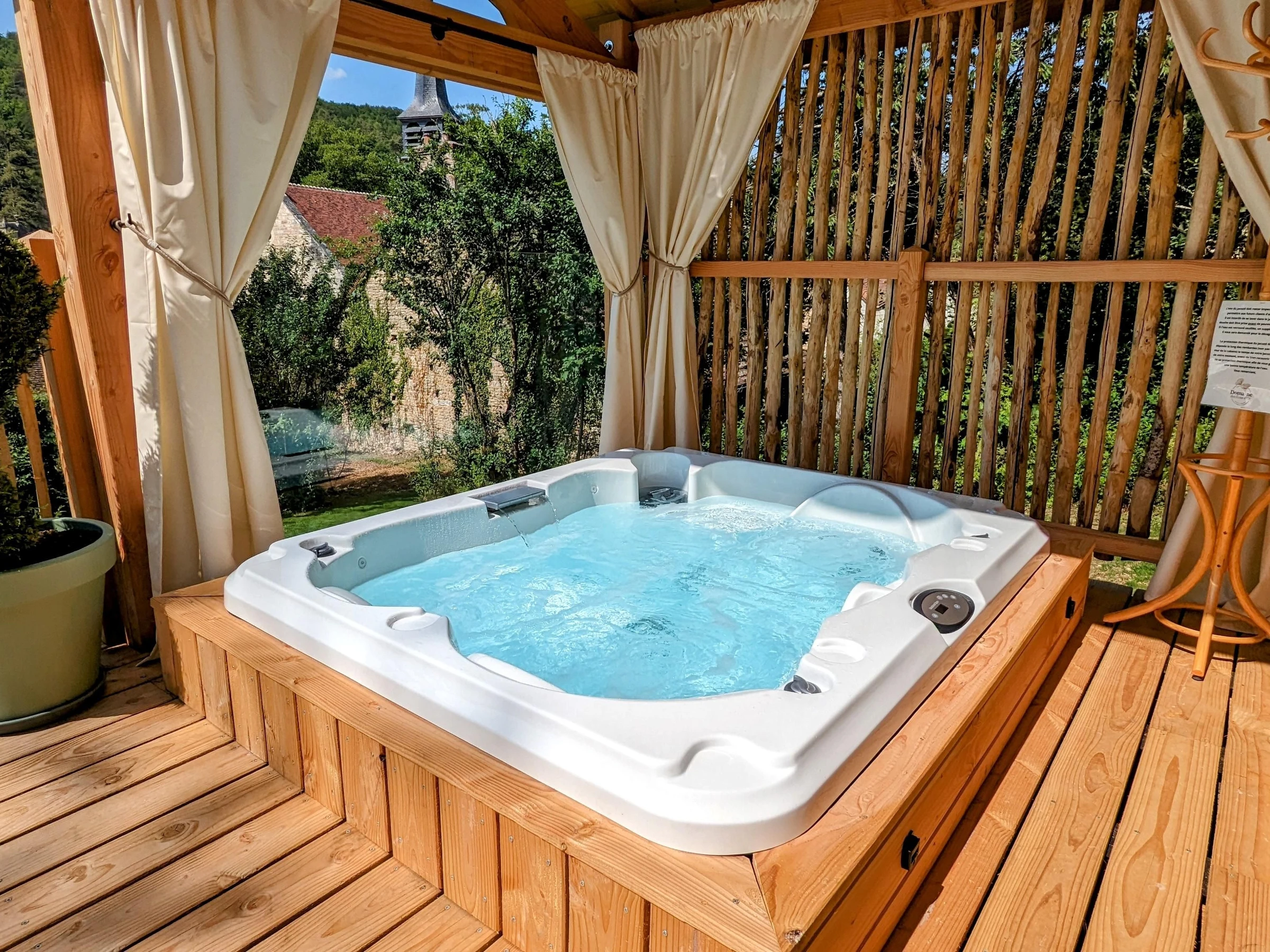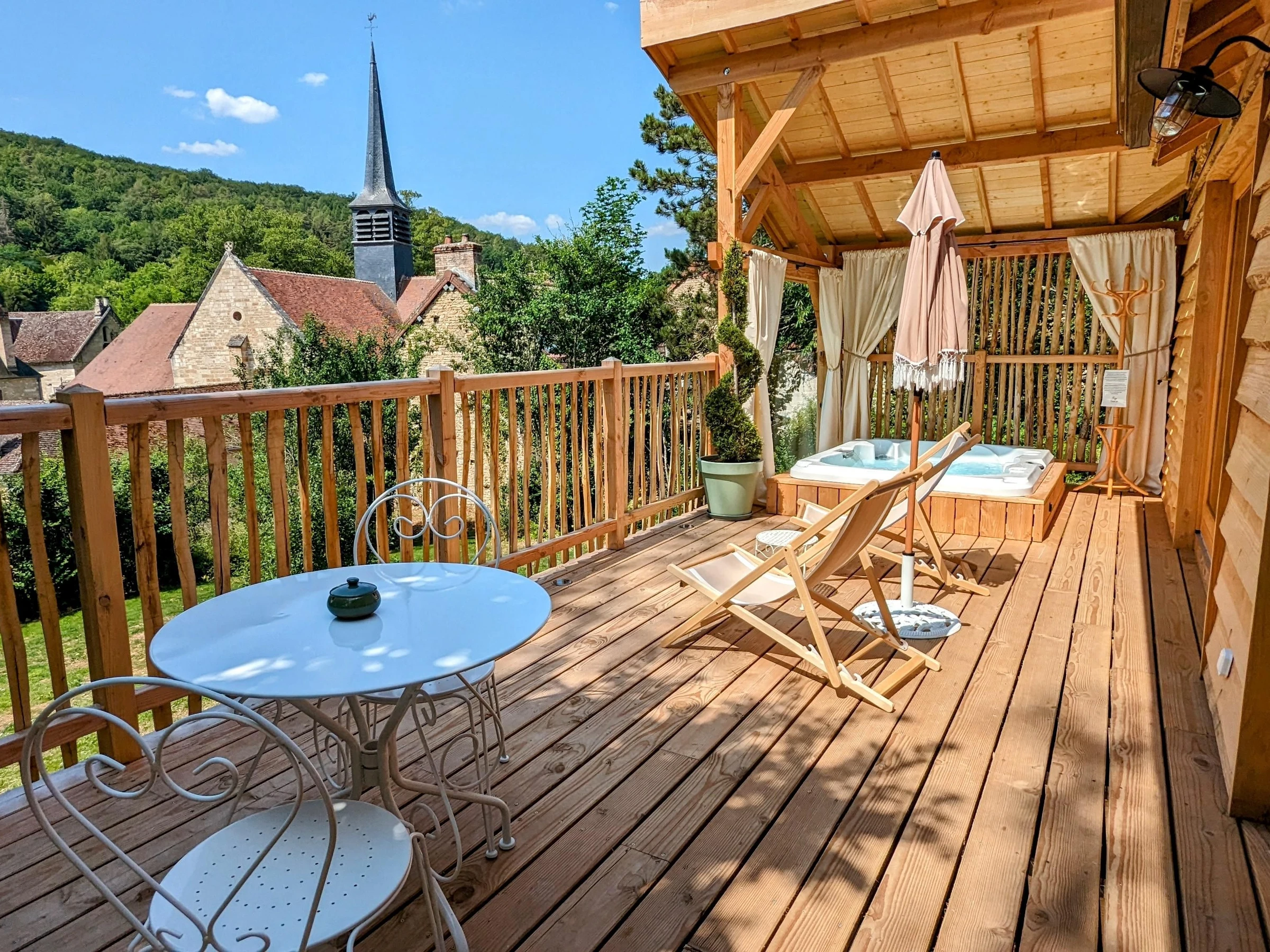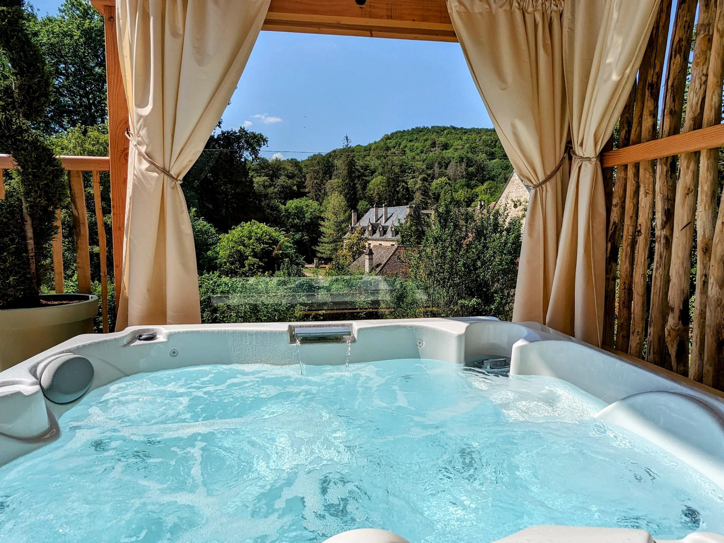 La terrasse avec SPA (ouvert toute l'année) et vue sur l'Abbaye est un réel plus, qui vous charmera à coup sûr...