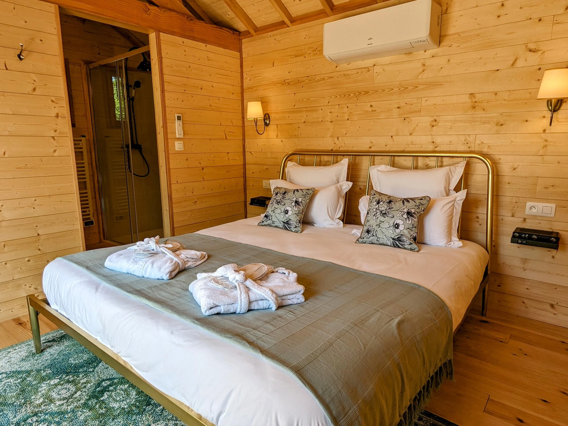 Profitez d'un séjour détente dans une cabane très confortable et à la décoration soignée, dans un cadre naturel, au calme et sans aucun vis-à-vis.