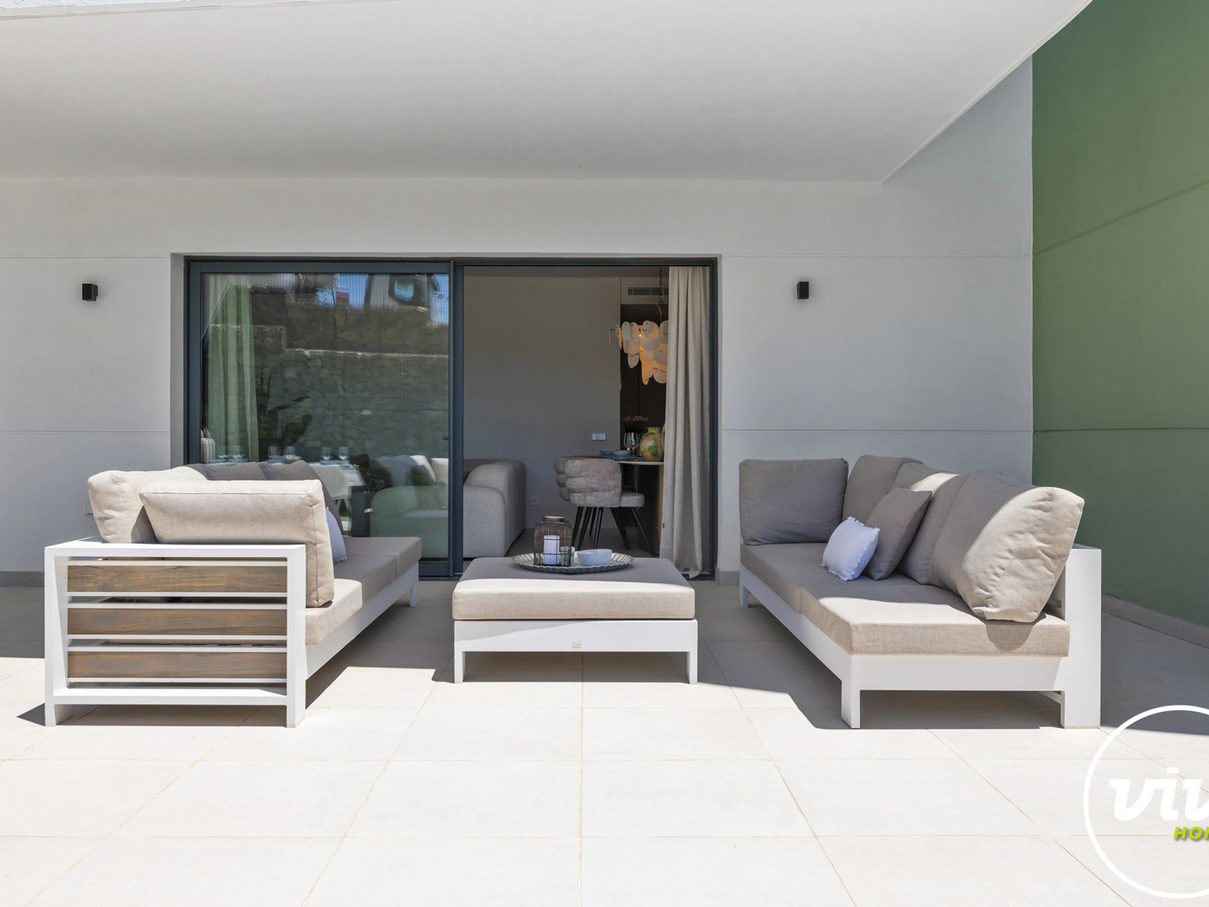 Elle dispose de ascenseur, jardin, mobilier de jardin, clôture, 18 m² de terrasse, lave-linge, sèche-linge, barbecue, fer à repasser, coffre-fort, accès internet (wifi), sèche-cheveux, balcon, salle de sport, spa, chauffage central, climatisation dans tout le logement, piscine collective+infantile, piscine chauffée collective, garage même bâtiment, 1 Télévision.