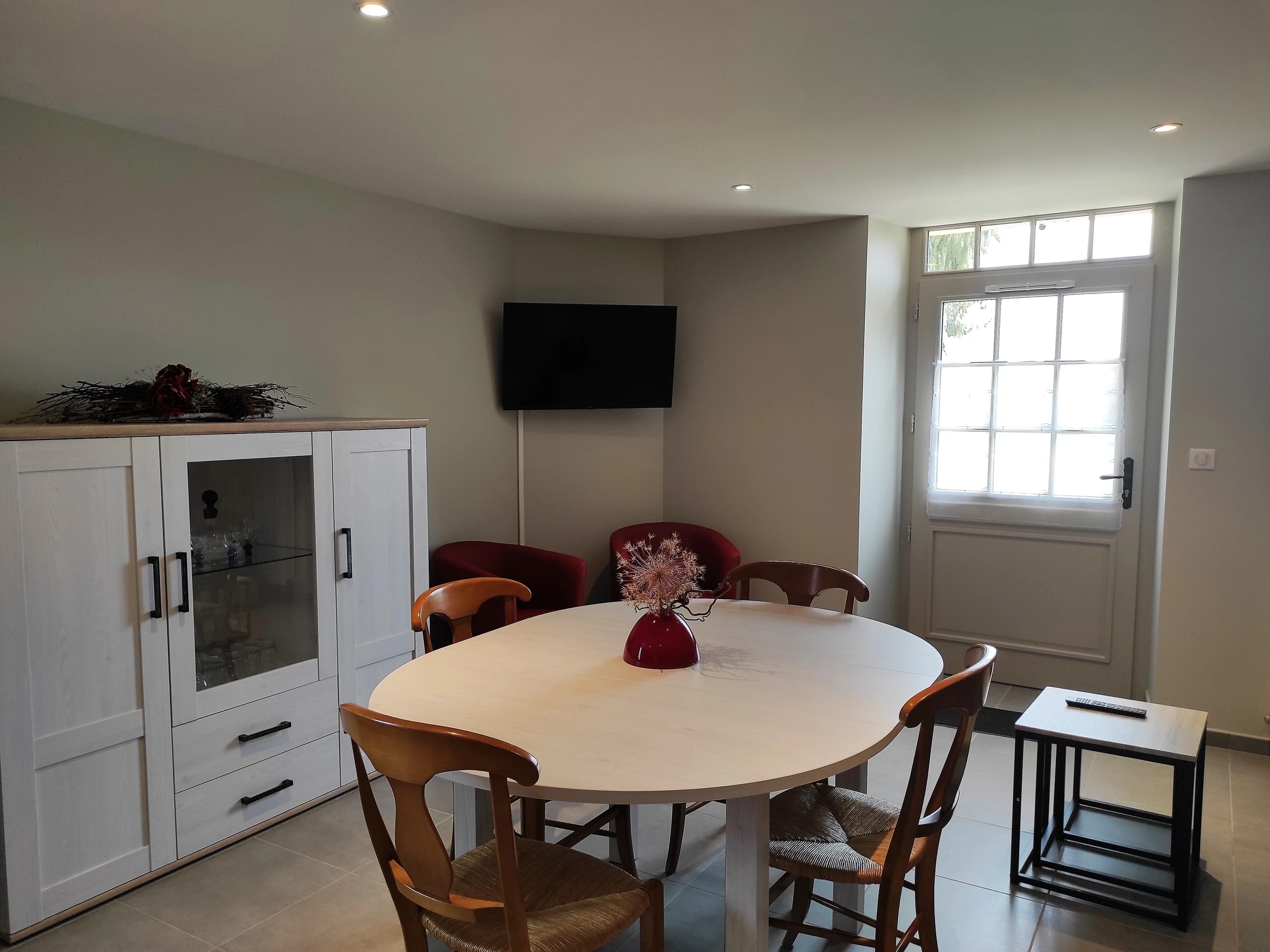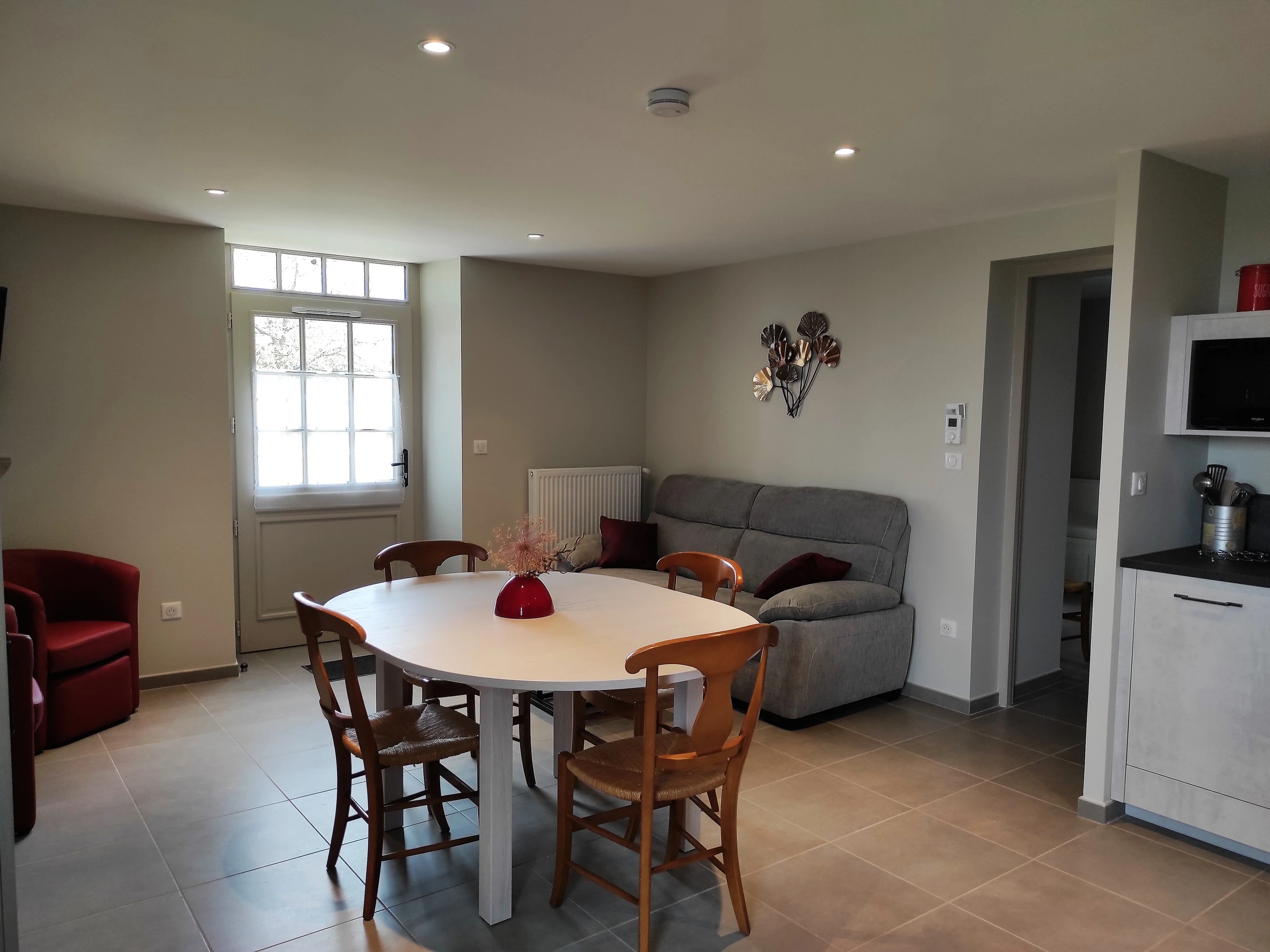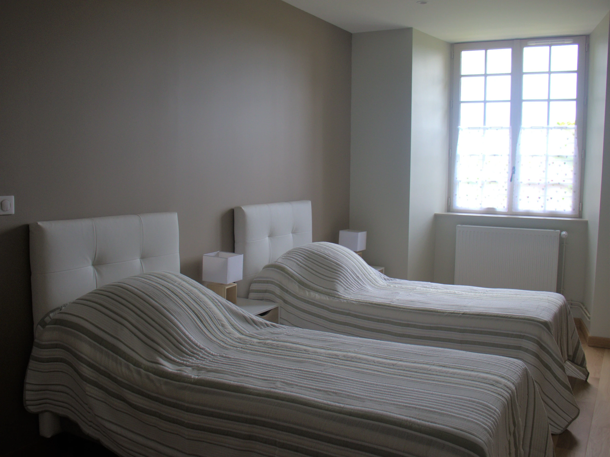 Dans un bourg calme au patrimoine bâti riche, gîte mitoyen à un autre, aménagé au rez-de-chaussée et 1er étage de l'ancien prieuré entièrement restauré, avec terrasse privative non close (salon de jardin et barbecue à disposition) et accès direct au parc avec aire de jeux pour enfants. Au rez-de-chaussée, il comprend 1 pièce à vivre avec cuisine équipée, 1 chambre double (possibilité lit gigogne 90cm) ainsi qu'une salle d'eau/wc. Au premier étage, 2 chambres twins sont à votre disposition ainsi qu'une salle de bains/wc. Le prix comprend : l'électricité, le chauffage et les lits faits à l'arrivée. Possibilité de location pour 8 personnes avec supplément.