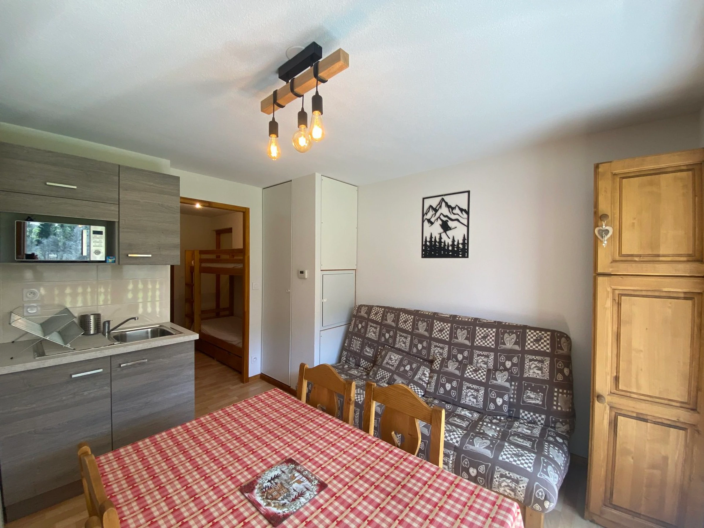 Appartement de 32 m², situé au 1er étage comprenant une entrée avec coin montagne (90x190), une chambre avec un lit double (140x190), toilettes indépendantes, une salle de bains avec douche et lavabo, un séjour avec kitchenette équipée.