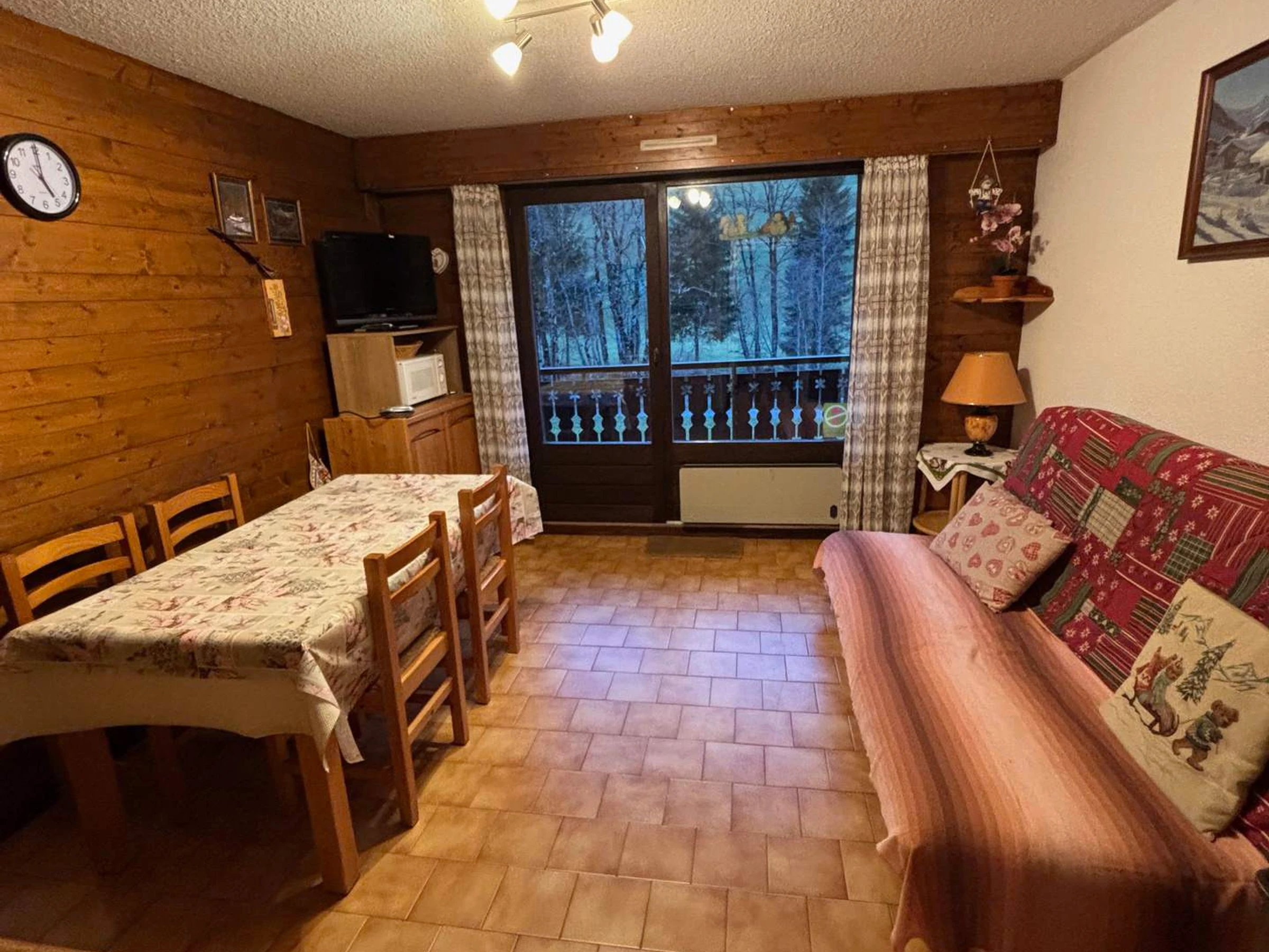 Appartement situé au 1er étage sans ascenseur comprenant une entrée, coin montagne avec lits superposés (2 x une personne 80x190 avec couvertures), une chambre avec un lit double (140x190 avec couette), salle de bains, toilettes séparés, séjour avec canapé convertible (140x180 avec couverture) et kitchenette équipée. Balcon exposé Sud.