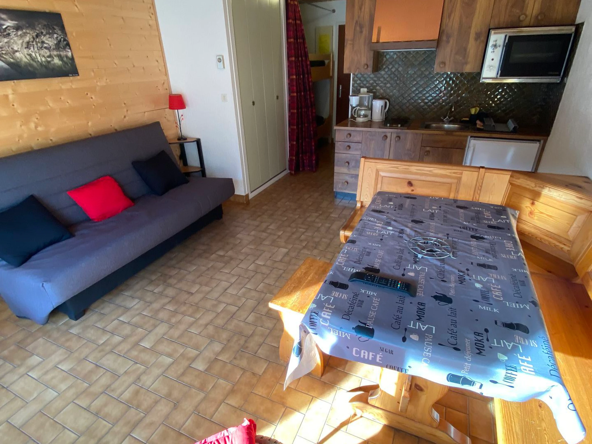 Studio situé au rez-de-chaussée comprenant un hall d'entrée, coin montagne avec lits simples superposés (2 x 80x190), salle de bains avec toilettes, séjour avec TV, un canapé convertible (130x180), kitchenette équipée. Balcon exposé sud.