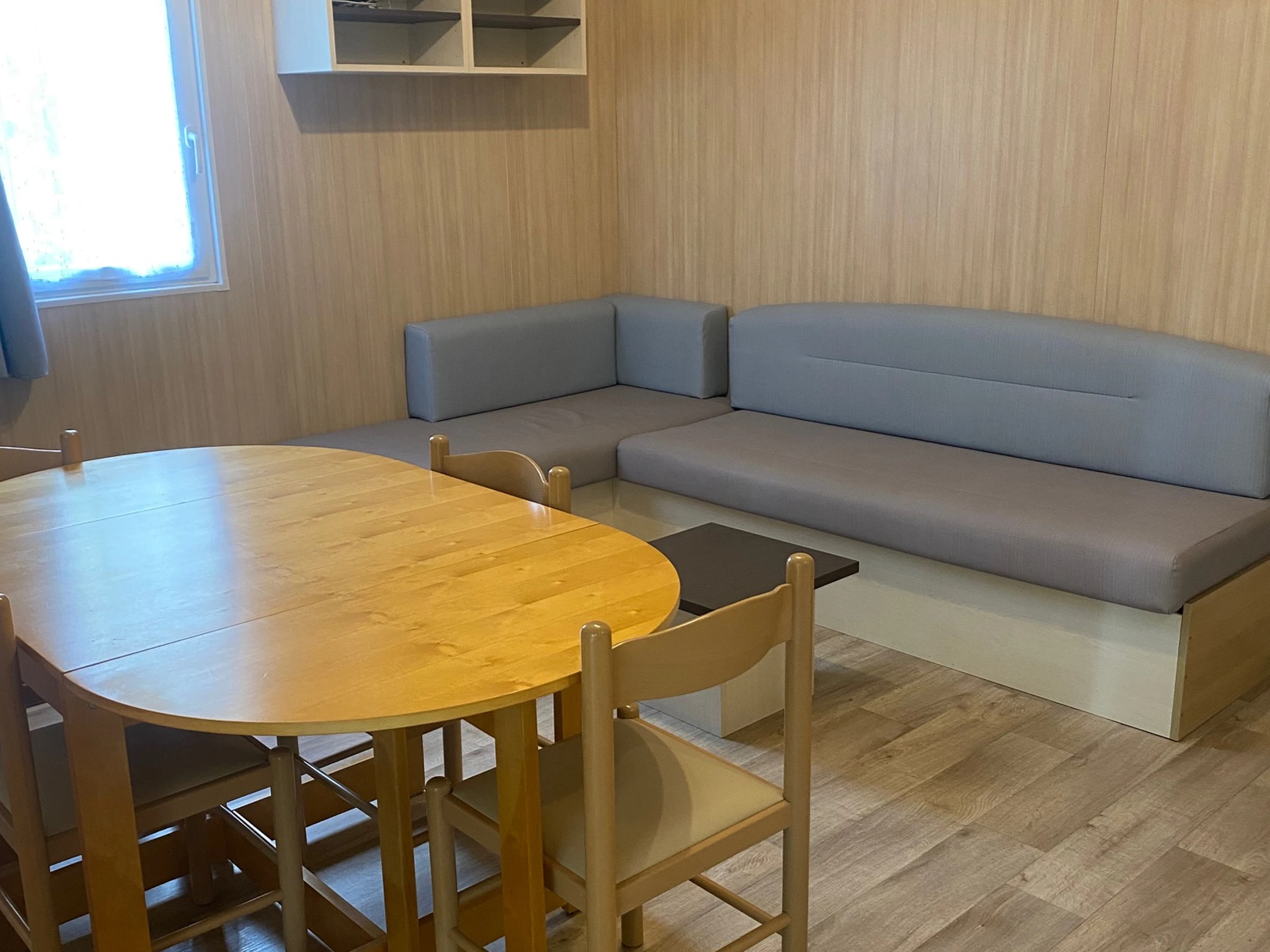 1 Séjour équipé avec canapé convertible (120*190cm), télévision, table à manger