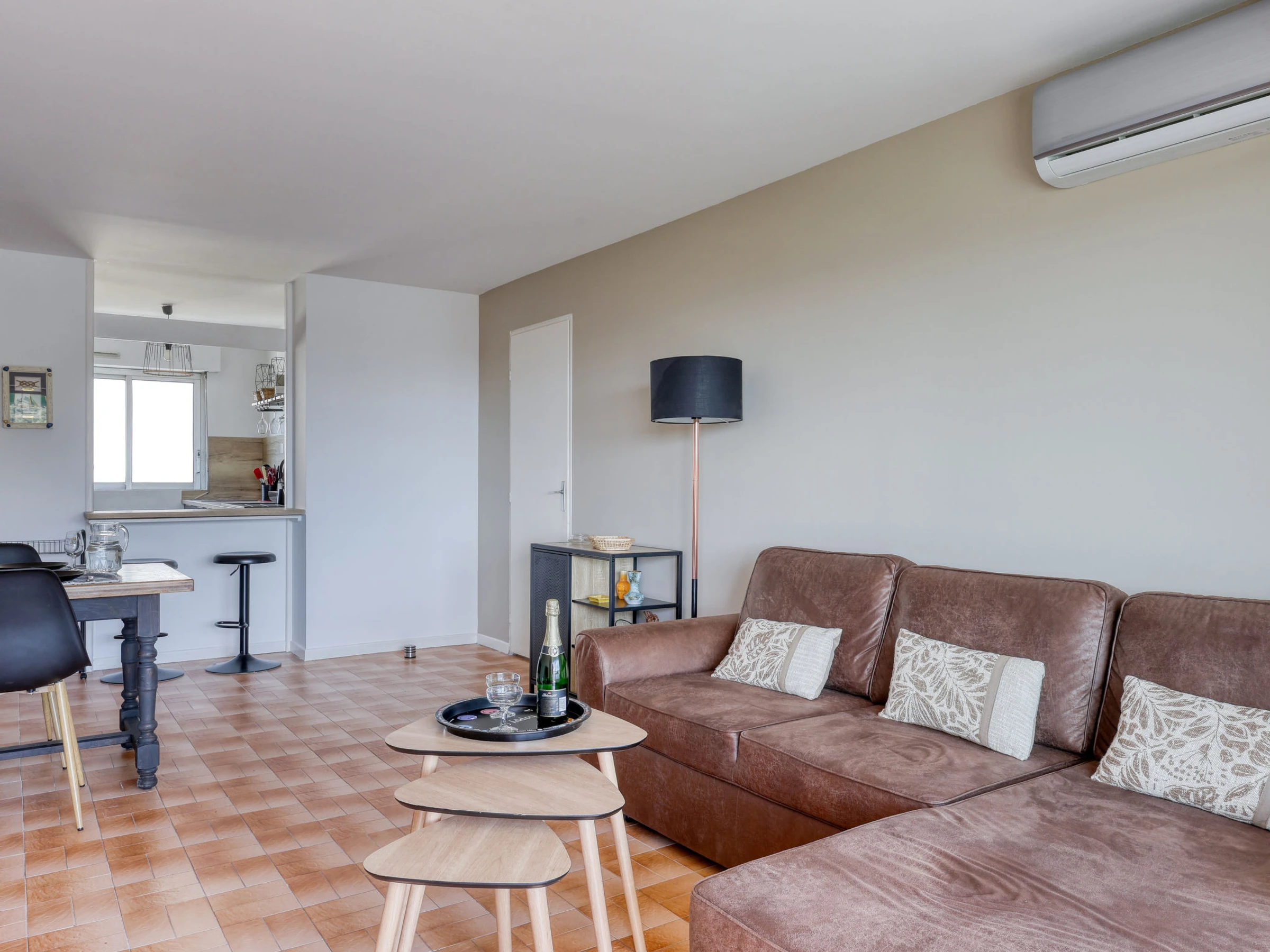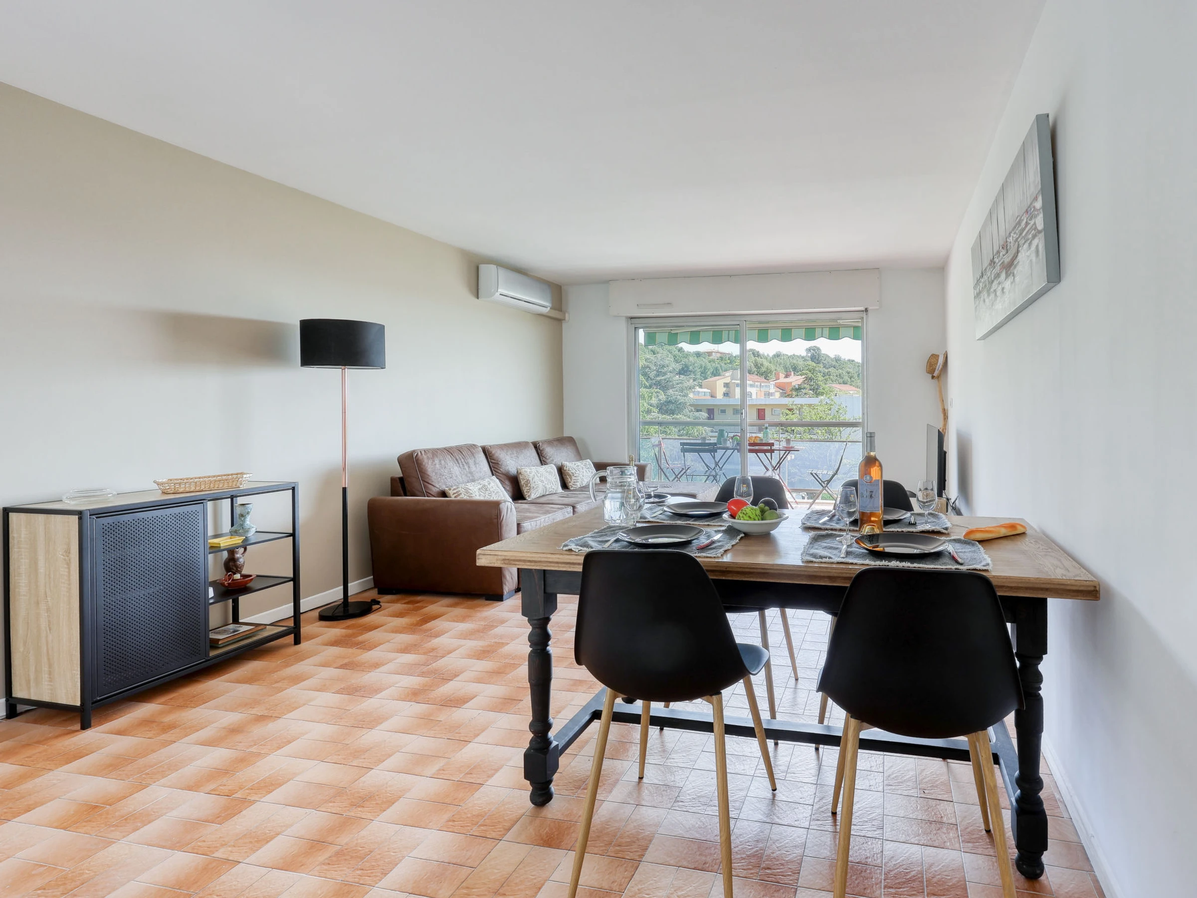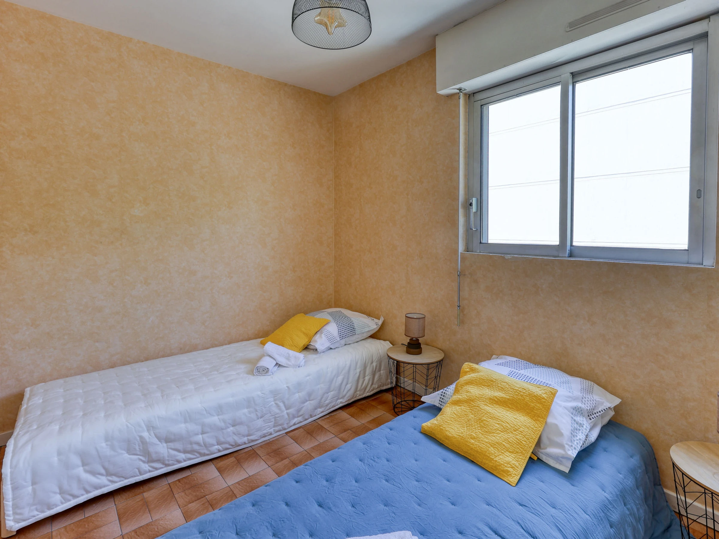 Apt 3 pièces 50 m2 au 2ème étage. Aménagement confortable et agréable: séjour/salle à manger avec TV (écran plat), air-conditionné. Sortie sur la terrasse. 1 chambre avec 1 grand-lit (1 x 140 cm, longueur 190 cm), air-conditionné. 1 chambre avec 2 lits (80 cm, longueur 190 cm), ventilateur. Cuisine ouverte (lave-vaisselle, 3 plaques à induction, grille-pain, bouilloire électrique, micro-ondes, cafetière électrique, Capsules pour machine à café (Nespresso + Filtre) (NON INCLUSES)). Douche, WC séparé. Chauffage à air chaud. Terrasse 15 m2. Meubles de terrasse. Vue latérale sur la mer. A disposition: lave-linge, fer à repasser. Internet (Connexion WIFI, gratuit). Place de parking No 680. Veuillez noter: maximum 1 animal/ chien de petite taille autorisé. TV seulement FR. Détecteur de fumée. Annonce d'un particulier (art 155, IV du CGI). [hidden]