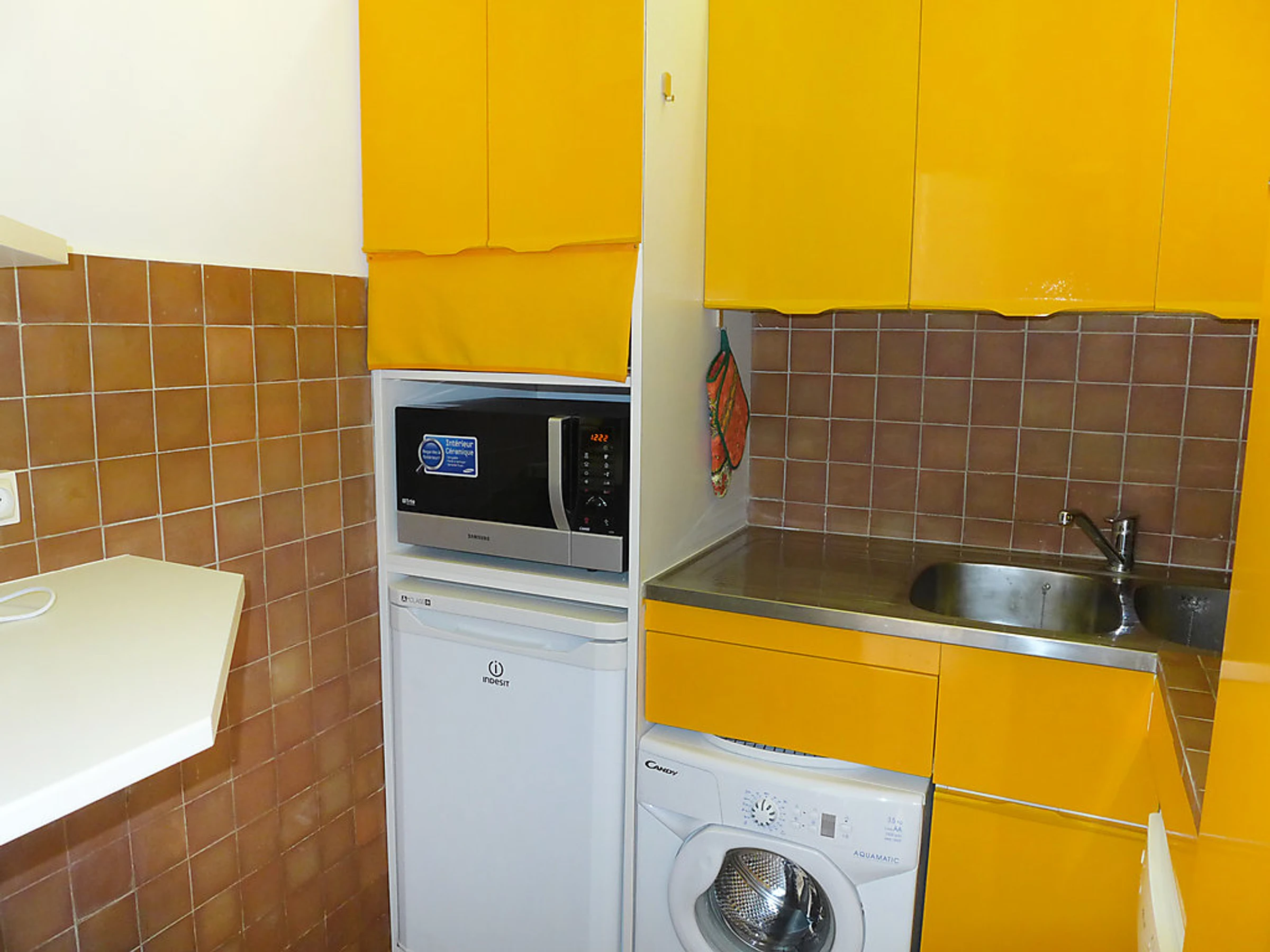 Studio 35 m2 au 3ème étage, situation sud. Clair, complètement rénové en 2013, aménagement fonctionnel: séjour/salle à manger avec 1 grand-lit (1 x 140 cm, longueur 190 cm), TV (écran plat), radio et ventilateur. Sortie sur le balcon, orientée sud. Petite cuisine (2 plaques de cuisson, lave-vaisselle, cafetière électrique, combiné micro-ondes). Douche/WC. Chauffage électrique. 2 petits balcons. Très belle vue sur la mer et le jardin. A disposition: lave-linge, fer à repasser, sèche-cheveux. Internet (Connexion WIFI, gratuit). Place de parking. Veuillez noter: logement pour non fumeurs. TV seulement FR. Détecteur de fumée. Frigo équipé d'un compartiment congélateur. Aucun animal accepté. Interdiction de garer un véhicule autre qu'une voiture dans la résidence. Inclus: Place de stationnement, Nettoyage final, ERV assurance annulation gratuite, Internet sans fil (WIFI) Disponible sur le site avec supplément: Serviettes (premier jeu) 6.0EUR par personne, Poussette 3.0EUR par jour, Réhausseur bébé (pour enfants) 3.0EUR par jour, Linge de lit (premier jeu) 10.0EUR par personne, Lit bébé (jusqu'à 2 ans) 3.0EUR par jour, Lit supplémentaire 6.0EUR par semaine Services supplémentaires obligatoires sur le site: Taxe de séjour 0.66EUR par personne et par jour, Taxe de séjour enfants (par personne et par jour), Taxe de séjour bébés (0-2) (par personne et par jour), Taxe de séjour 0.3EUR par personne et par jour