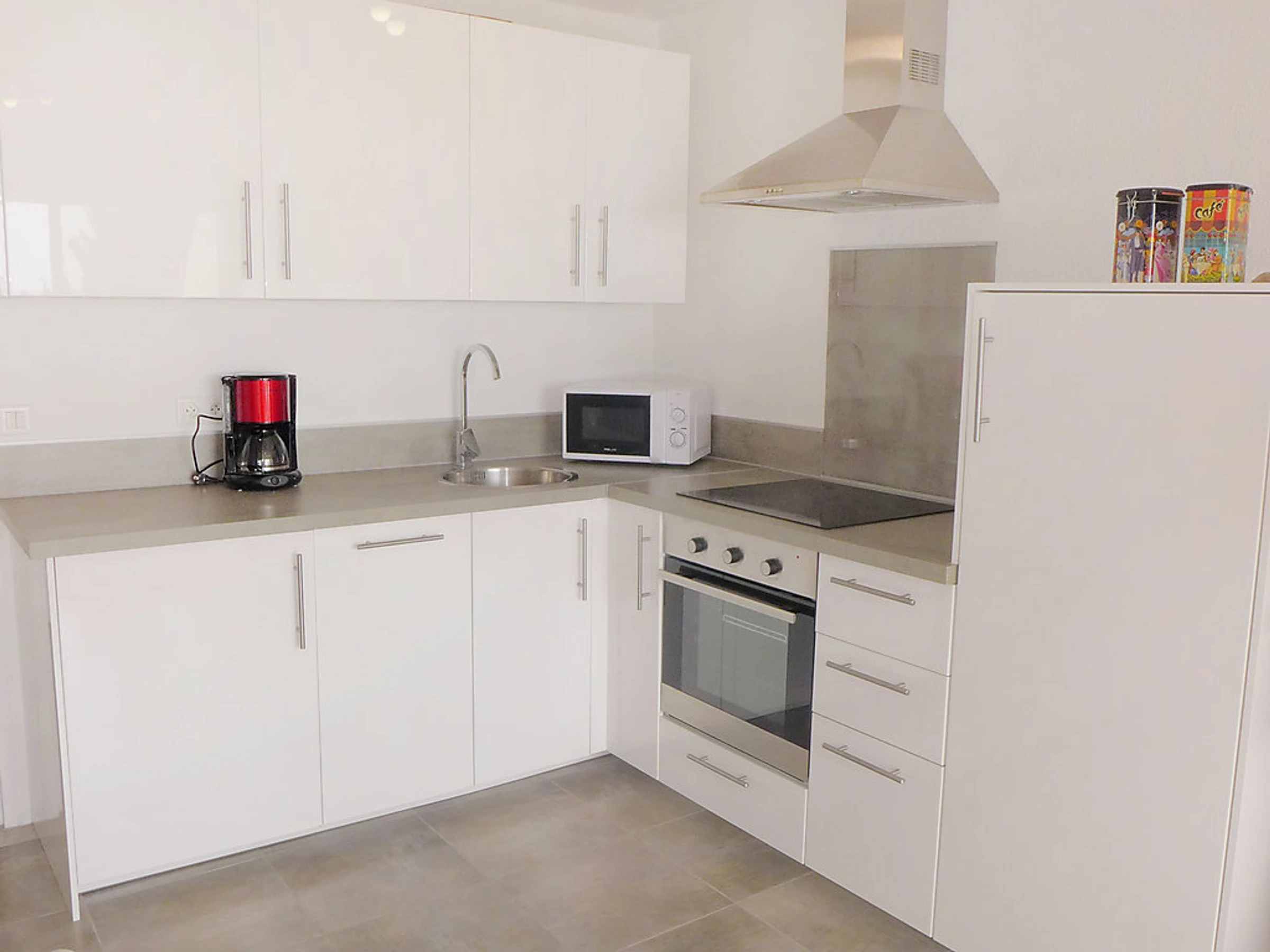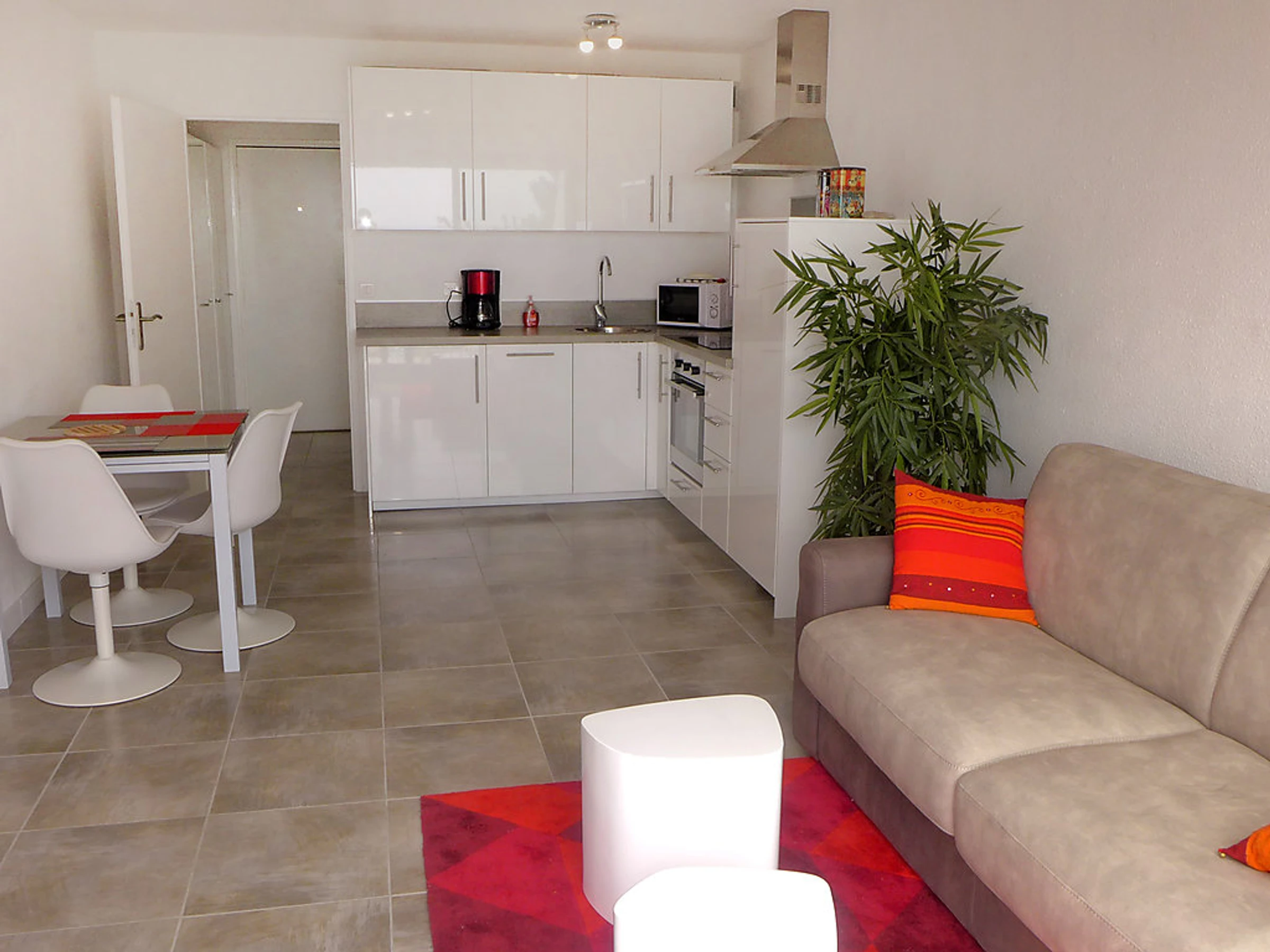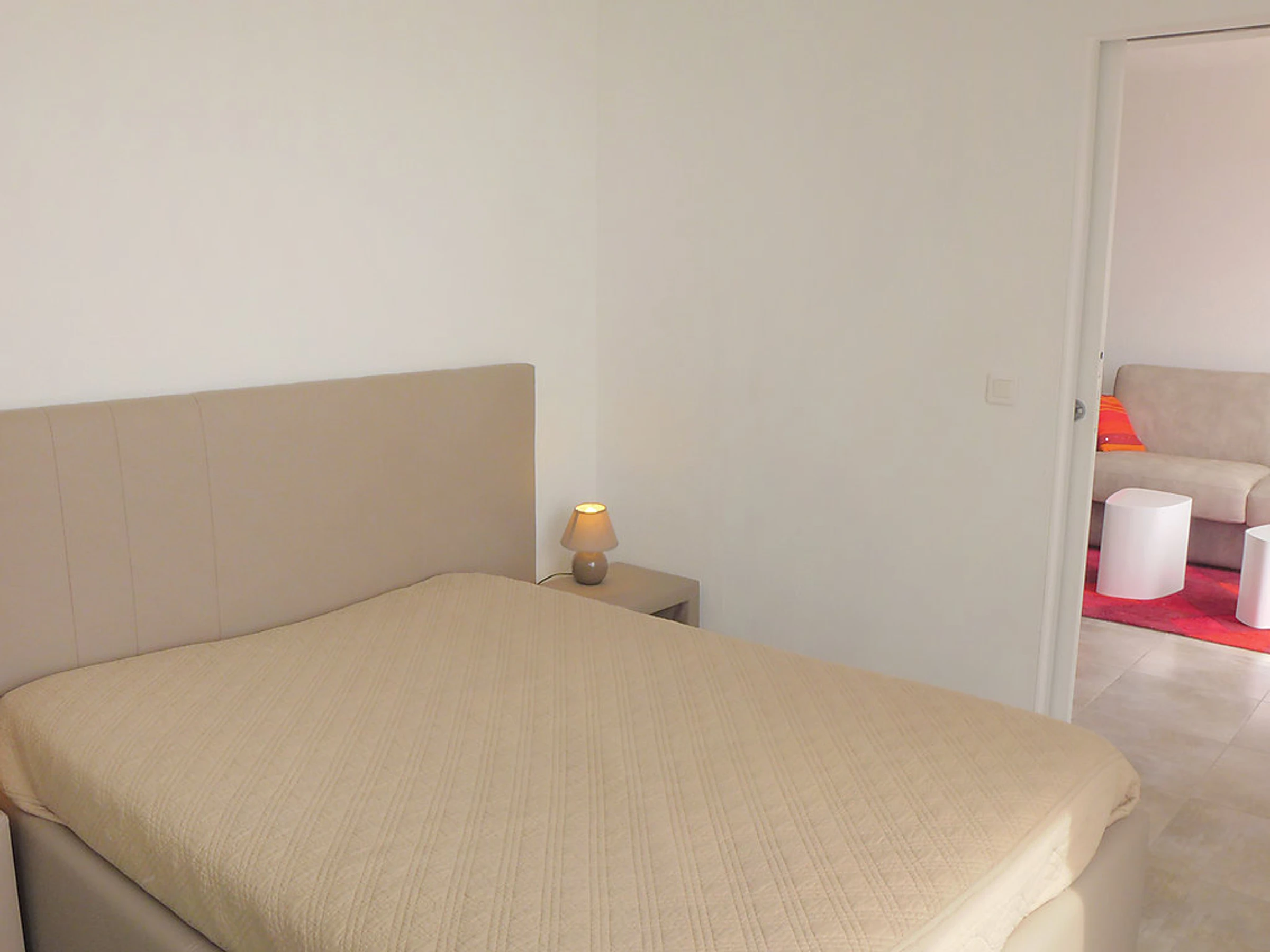 Apt 2 pièces 37 m2 au 1er étage. Complètement rénové en 2016, aménagement agréable et moderne: séjour/salle à manger avec 1 divan-lit double (140 cm, longueur 190 cm), TV (écran plat), air-conditionné. Sortie sur la terrasse. 1 chambre avec 1 grand-lit (140 cm, longueur 190 cm). Coin cuisine (four, lave-vaisselle, 4 plaques vitrocéramique, four micro-ondes). Douche/WC. Terrasse 6 m2. Meubles de terrasse. Très belle vue sur la mer. A disposition: lave-linge, fer à repasser. Internet (Connexion WIFI, gratuit). Veuillez noter: TV seulement FR. Services supplémentaires obligatoires sur le site: Taxe de séjour 0.66EUR par personne et par jour, Taxe de séjour enfants (par personne et par jour), Taxe de séjour bébés (0-2) (par personne et par jour), Taxe de séjour 0.3EUR par personne et par jour