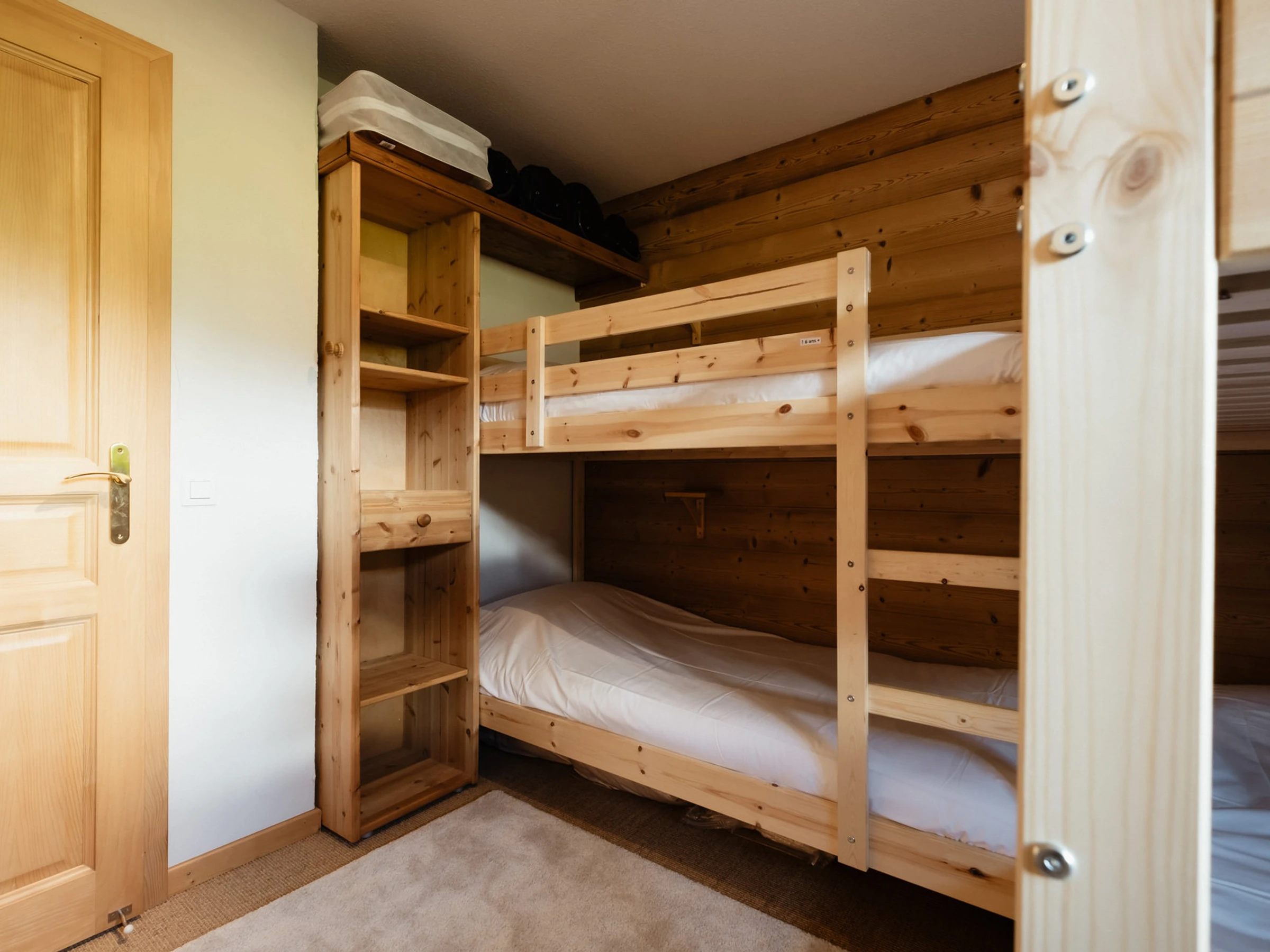 - CHAMBRE (8.31 m²) : 2 x 2 LITS SUPERPOSES (90) -> lit supérieur interdit -6 ans, fenêtre fixe est, vue espaces verts / montagne