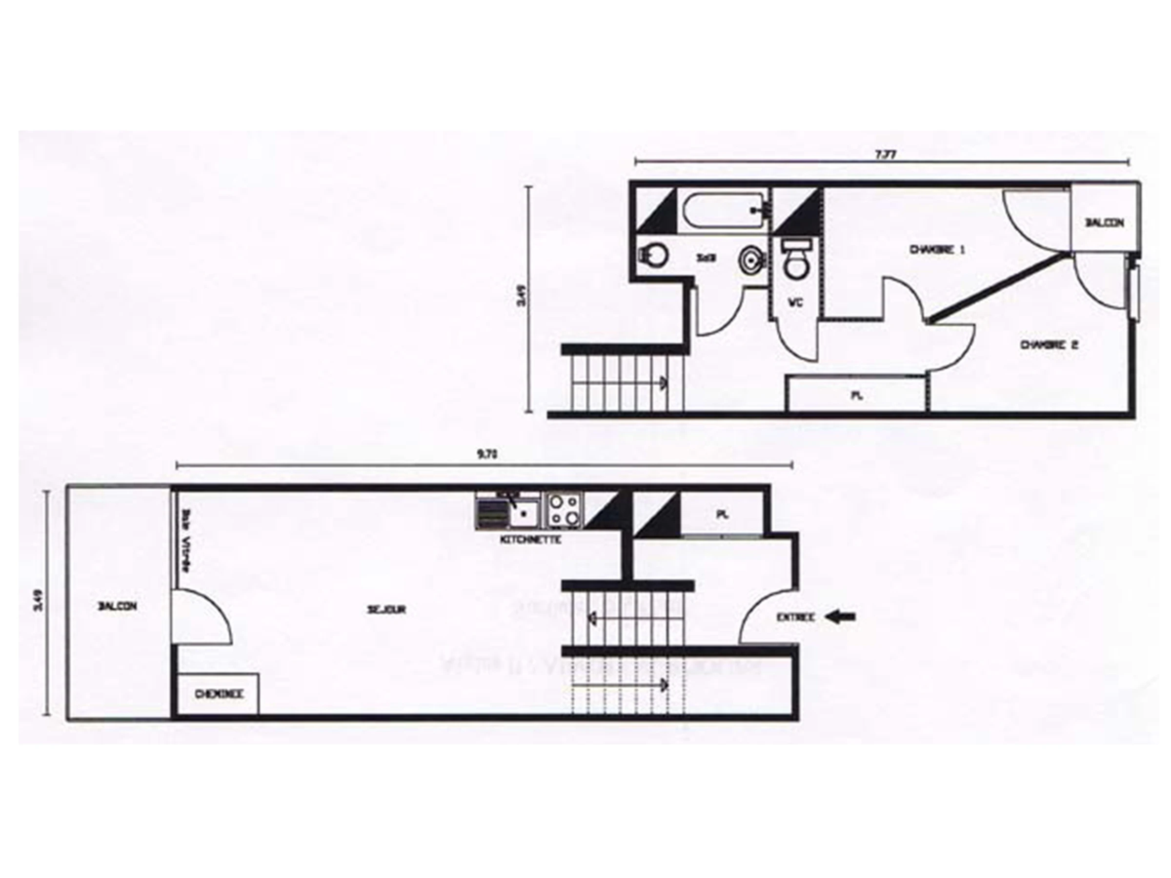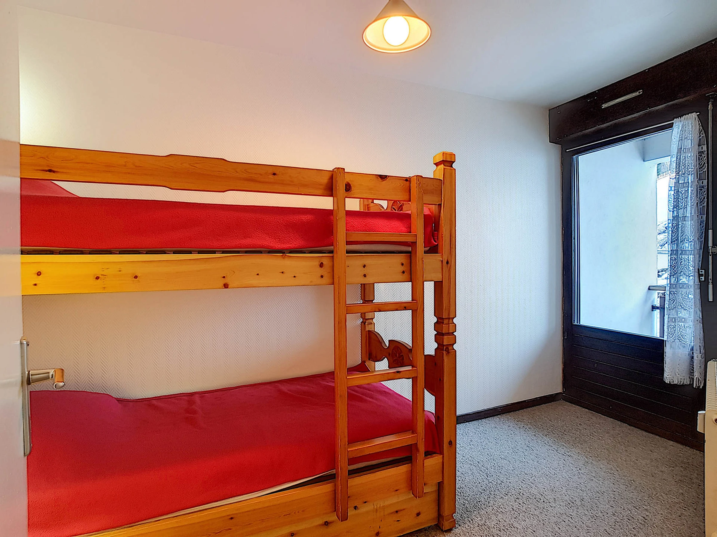 - Coin nuit fermé avec 2 lits superposés 80 cm x 1 pers. (lit supérieur interdit - 6 ans) (6.93 m²), porte fenêtre et balcon Nord/Est