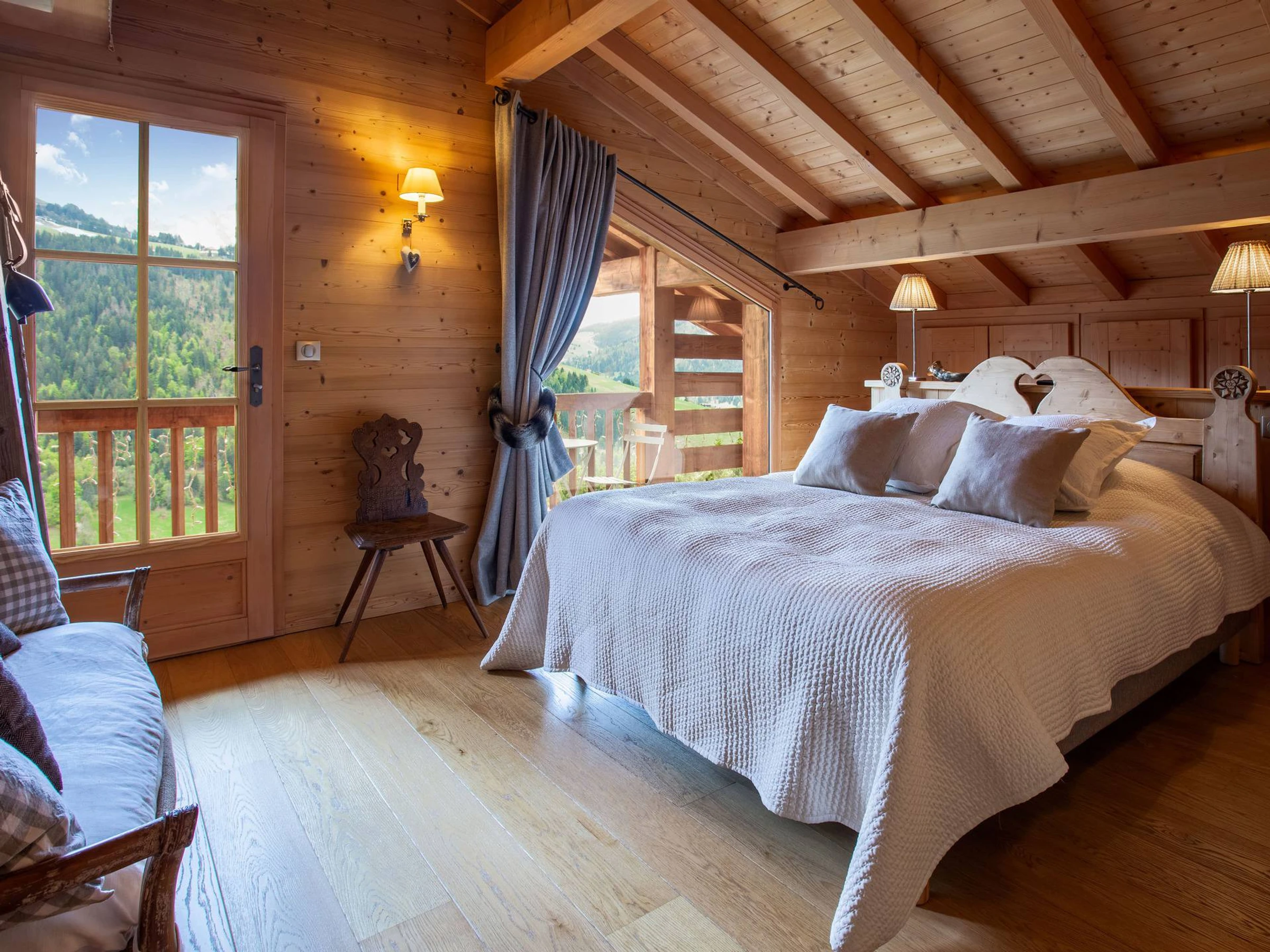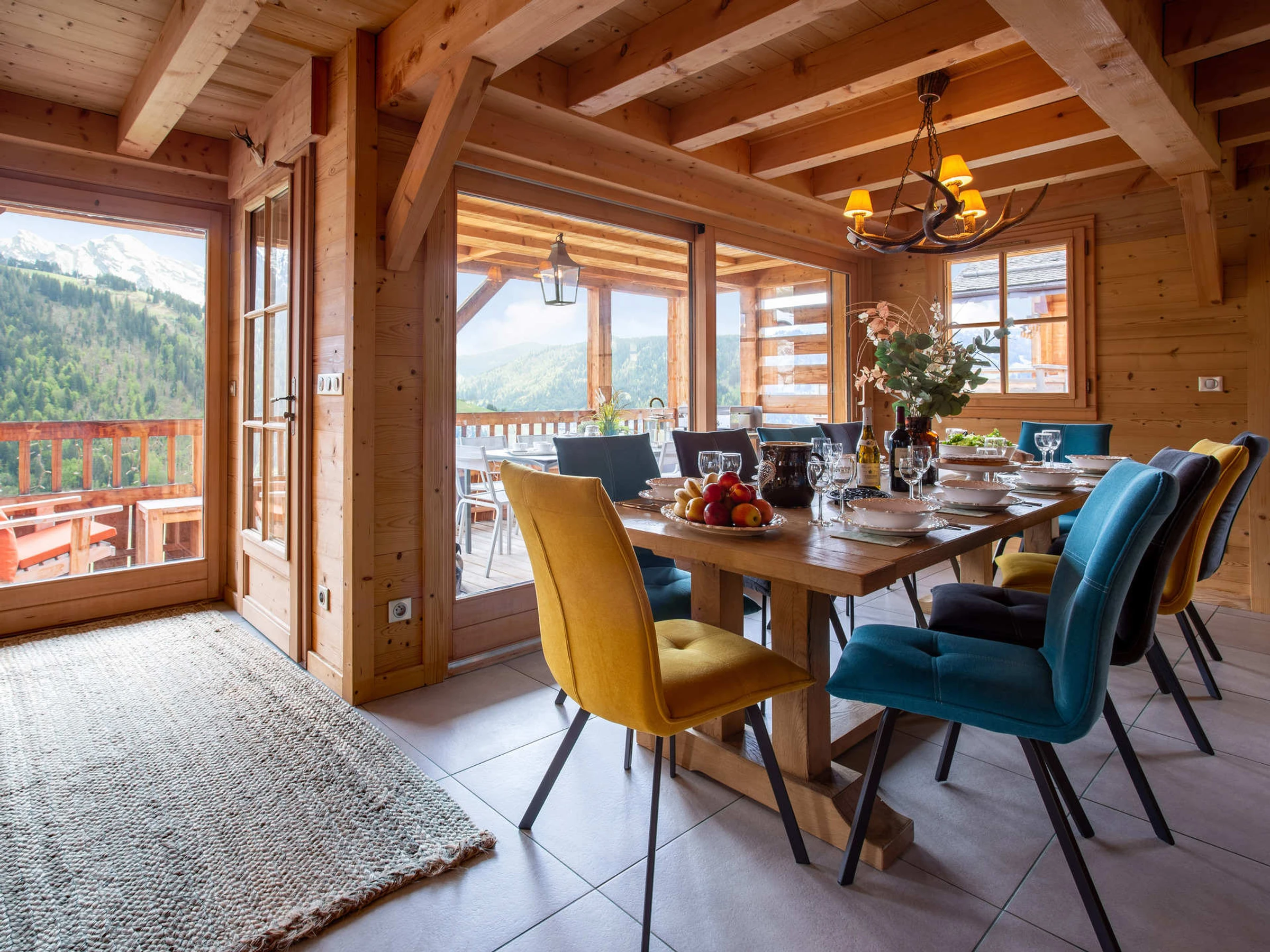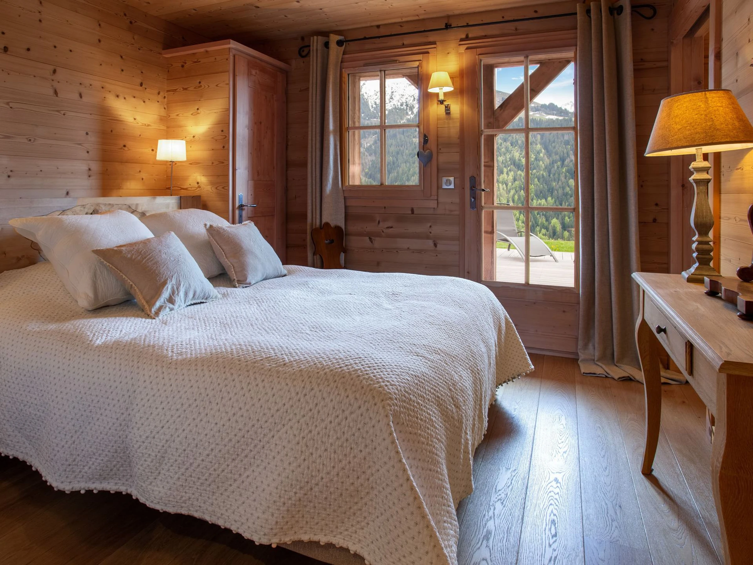 À l’extérieur, le charme opère depuis la grande terrasse plein sud, qui surplombe la vallée et offre un panorama à couper le souffle. Le chalet bénéficie d’un garage pour un véhicule et de trois places de stationnement extérieur.