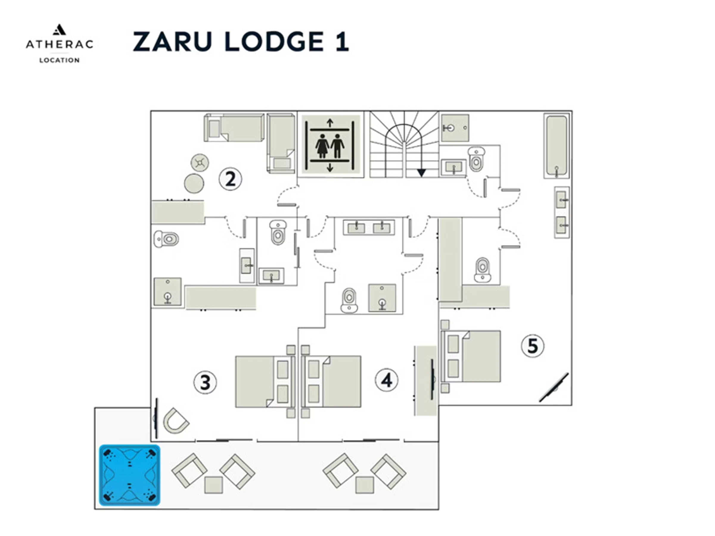 - Capacité : 12 personnes, 5 chambres, 4 salles de bains