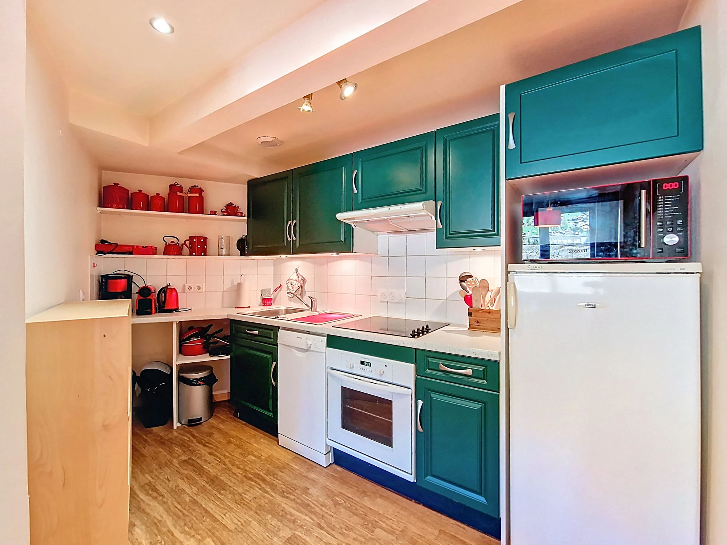 - Cuisine (plaques vitro 4 feux, hotte, four, micro-ondes, réfrigérateur avec freezer, lave vaisselle) (7.99m²)