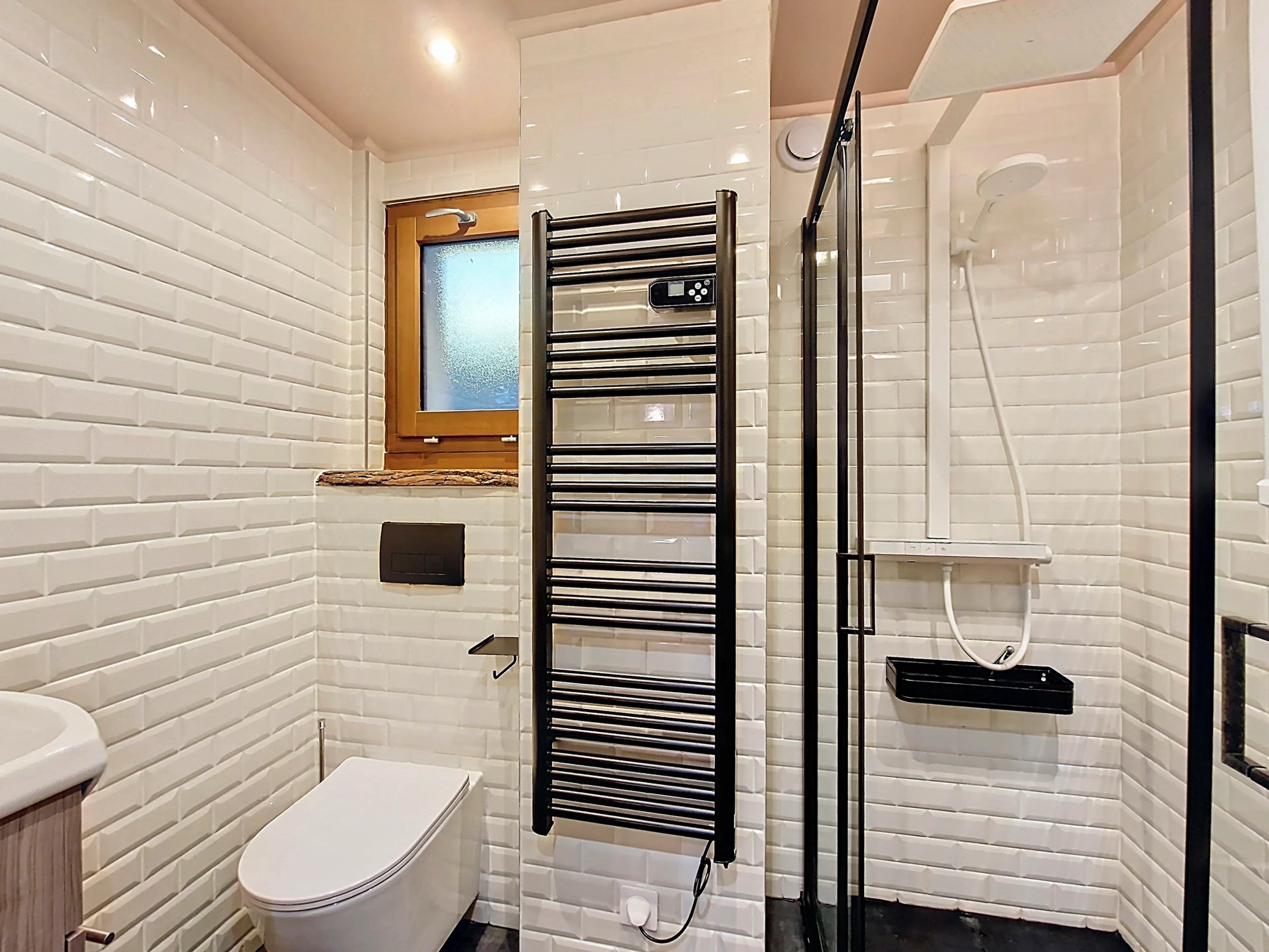 - Salle d'eau (douche, lavabo, WC, sèche-serviette)