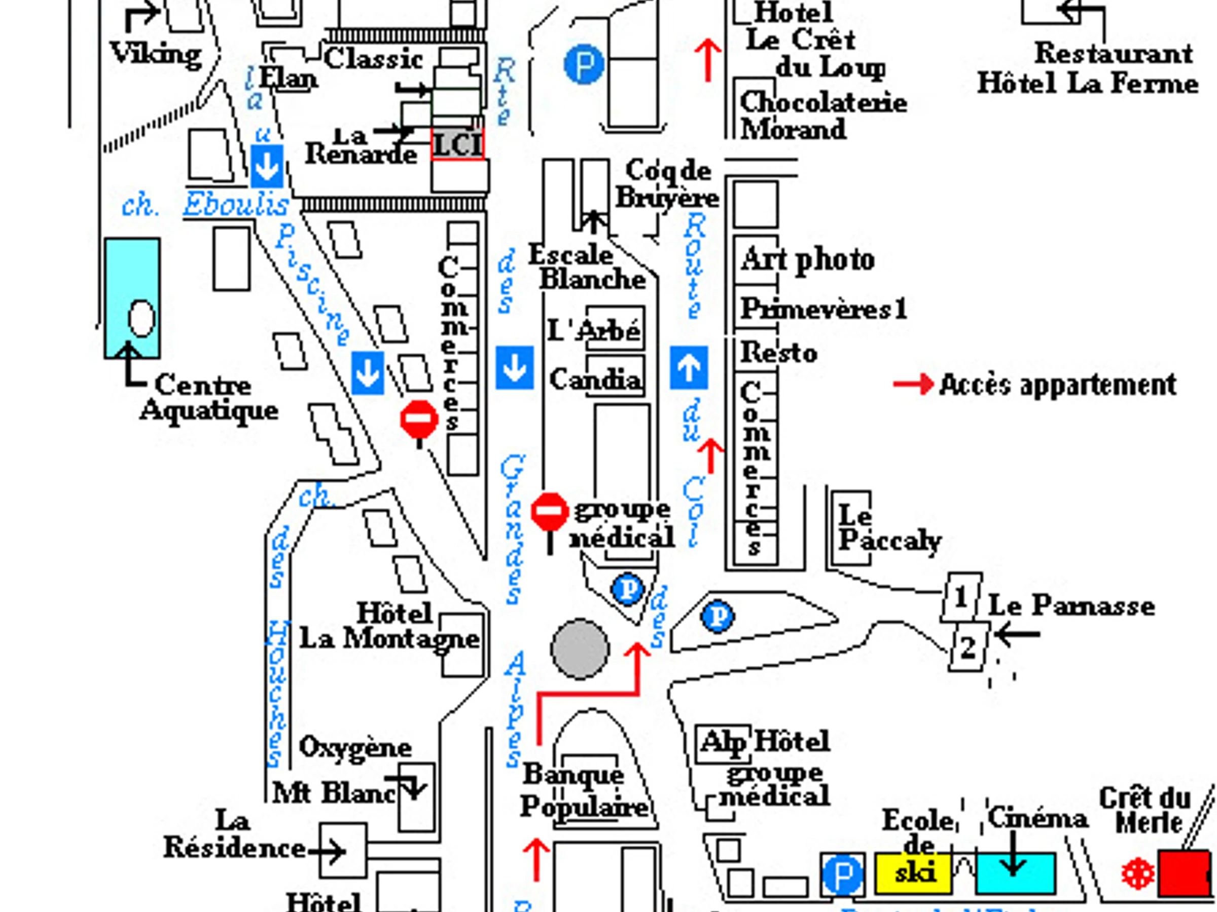 La Clusaz - Centre village - Quartier du Bossonet - 8 route des Grandes Alpes - A 30 m des commerces - A 200 m des remontées mécaniques du Bossonnet - A 450m du Centre Aquatique - Arrêt ski-bus à 50m - A 950 m de la gare routière et à 32,8 km de la gare SNCF (Annecy) - Vue panoramique sur le village et les pistes