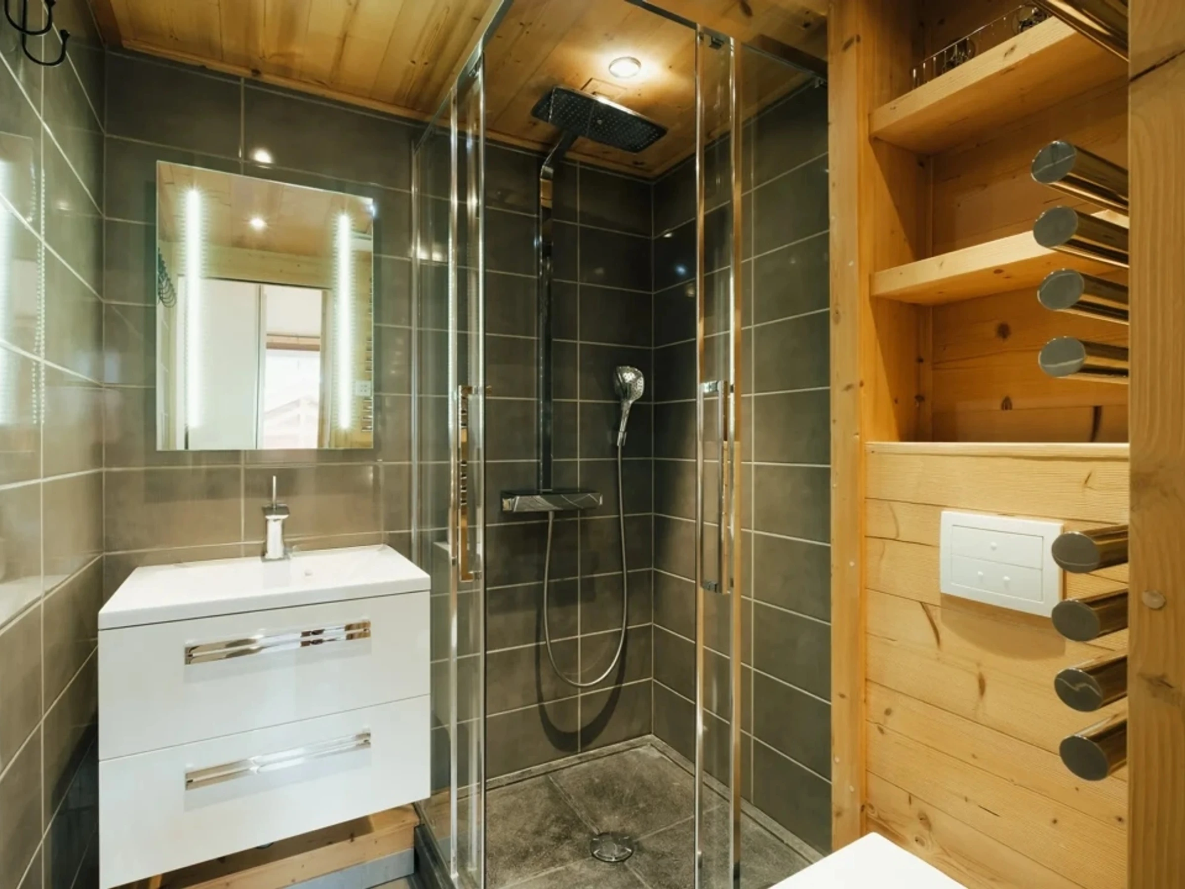 - SALLE D'EAU (2.65 m²) : vasque, douche, WC, radiateur SECHE-SERVIETTES