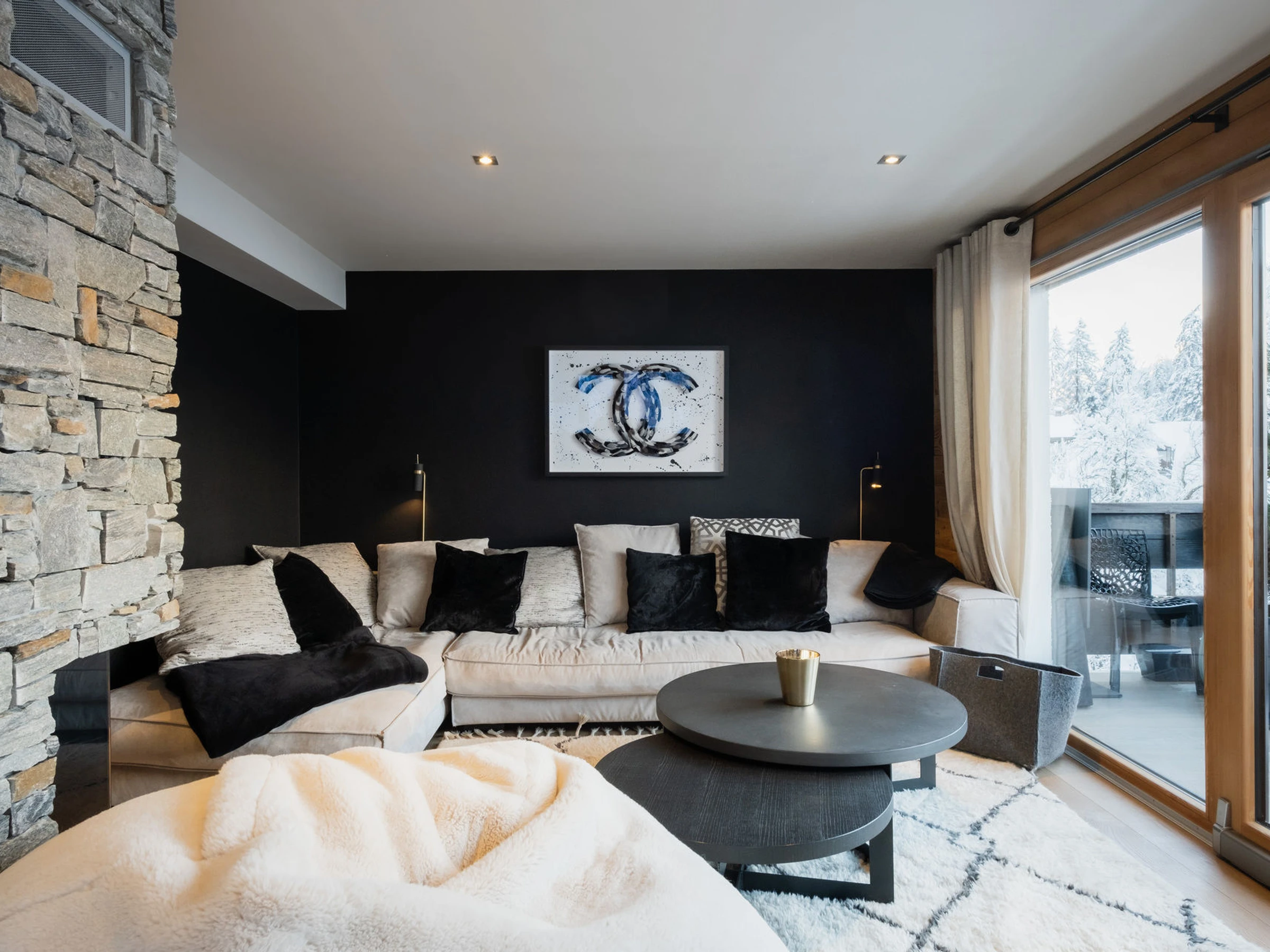 À l’extérieur, le balcon sud-est invite à savourer un petit-déjeuner au soleil levant ou un moment de détente en fin de journée face aux sommets. Il permet également de profiter du spectacle du village illuminé à la nuit tombée.