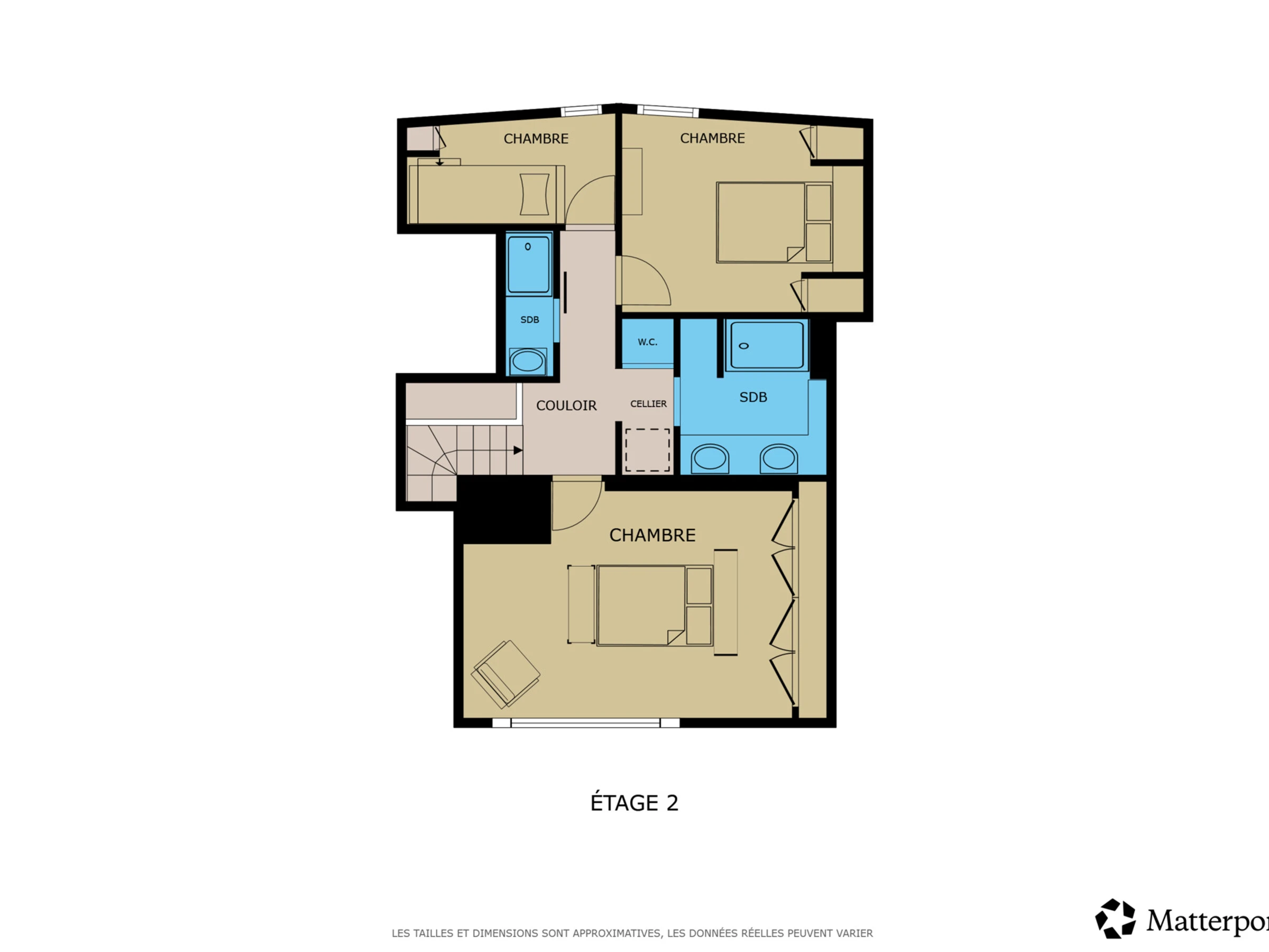 Étage mansardé : Sous les toits, les pièces conservent un esprit chaleureux grâce à leurs sous-pentes.