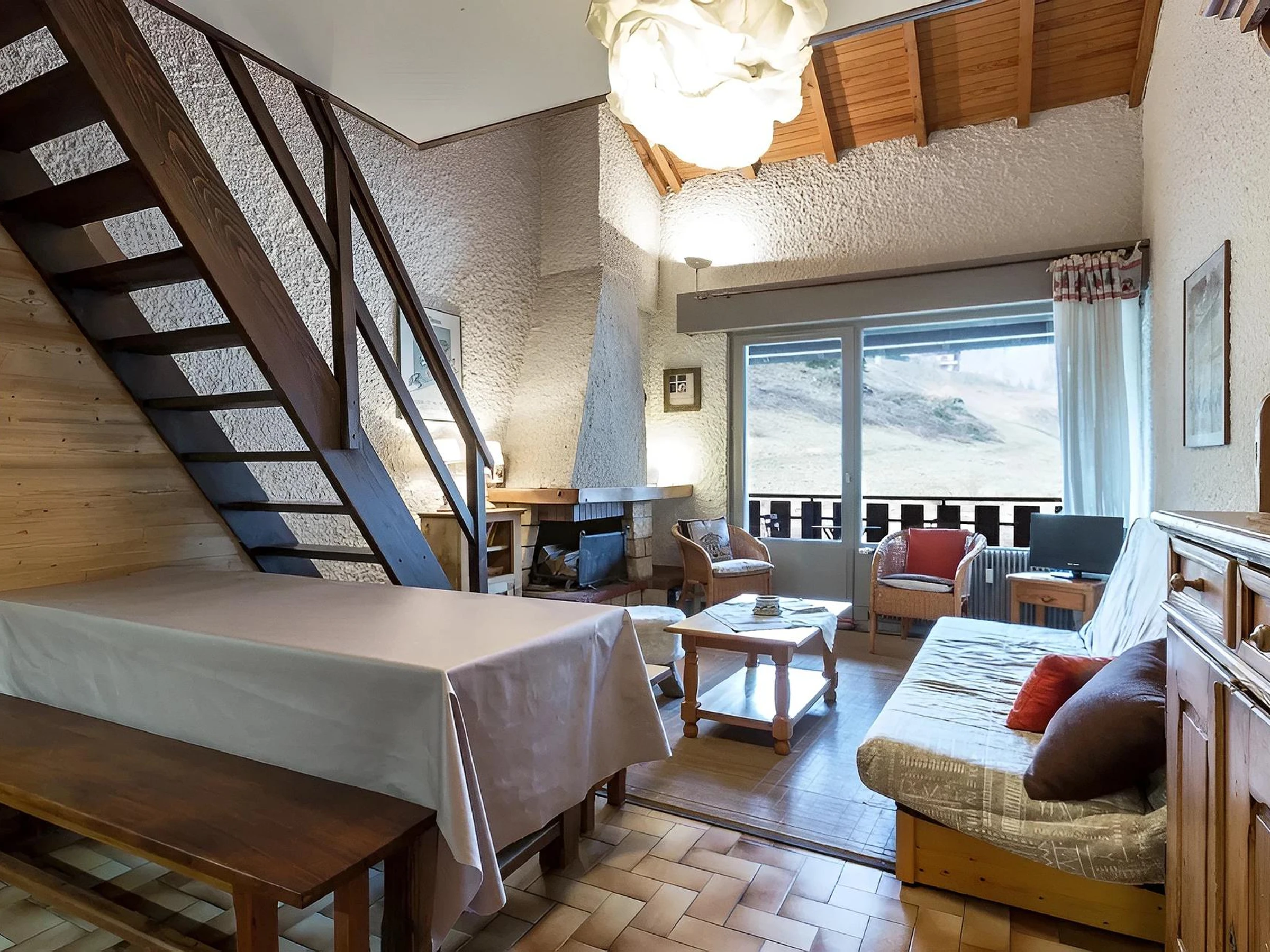 À l’extérieur, orienté sud-ouest, le balcon s’ouvre sur la station, offrant une lumière agréable depuis le séjour. Une place de parking couverte, assure un stationnement pratique en toute saison.