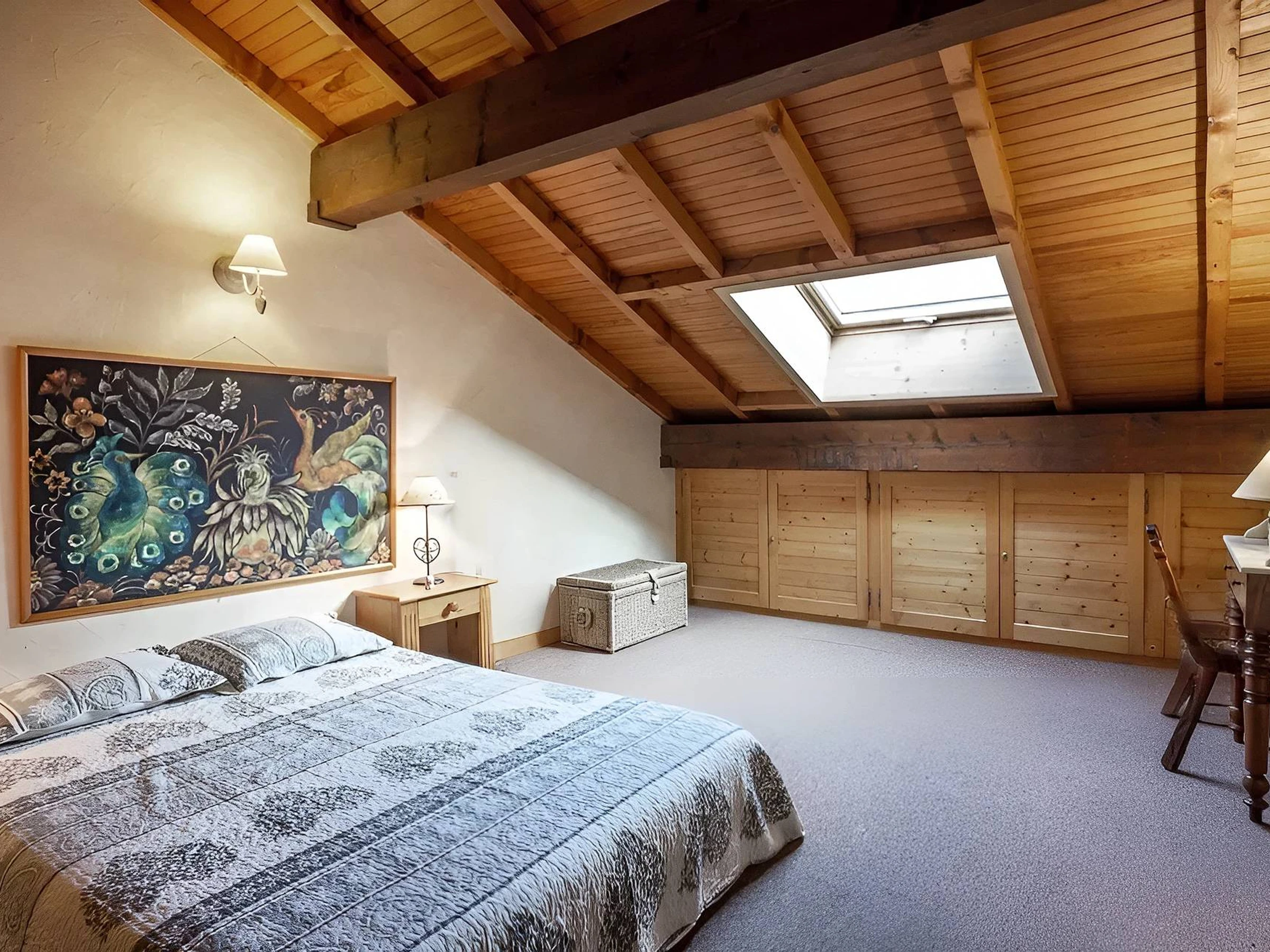 Étage mansardé : Sous les toits, les pièces conservent de beaux volumes et un esprit chaleureux grâce à leurs légères sous-pentes.