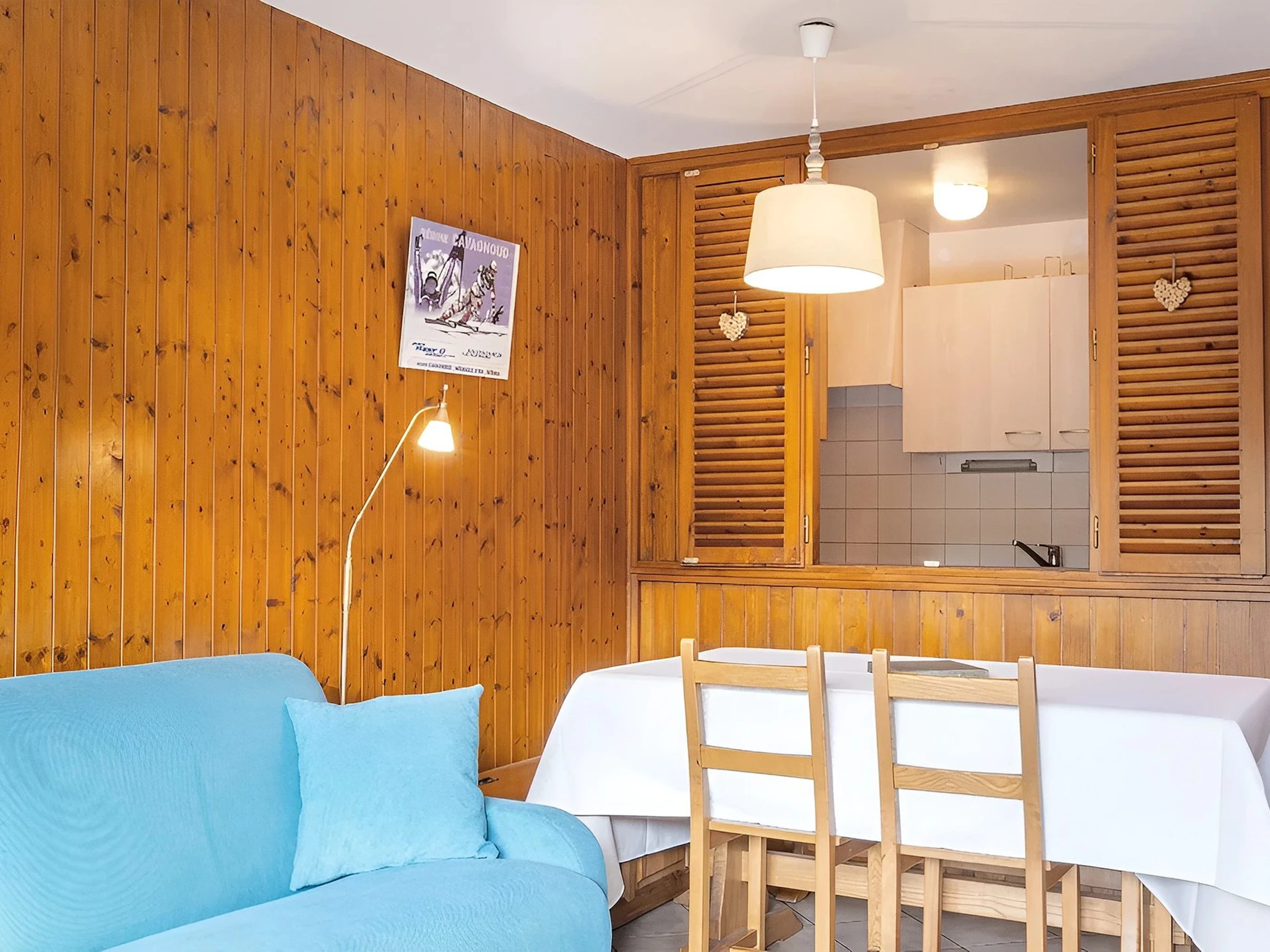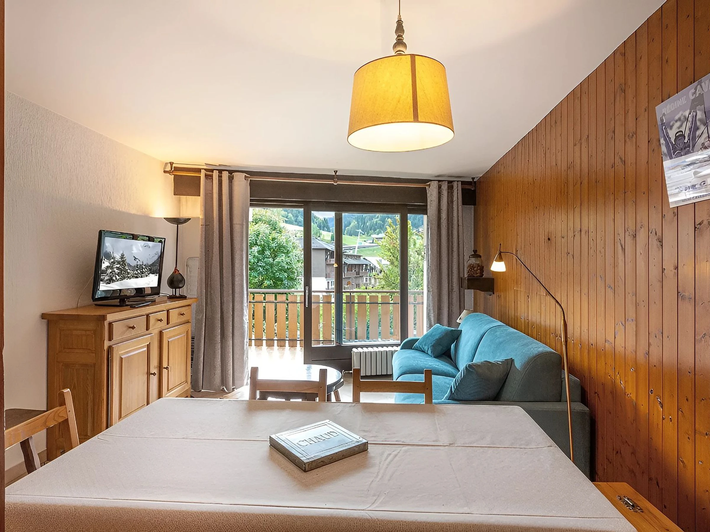 - SEJOUR (15.11 m²) : coin repas, 1 CANAPE-LIT RAPIDO 2 PLACES (160), TV écran plat, baie coulissante sud, balcon sud, vue station / montagne