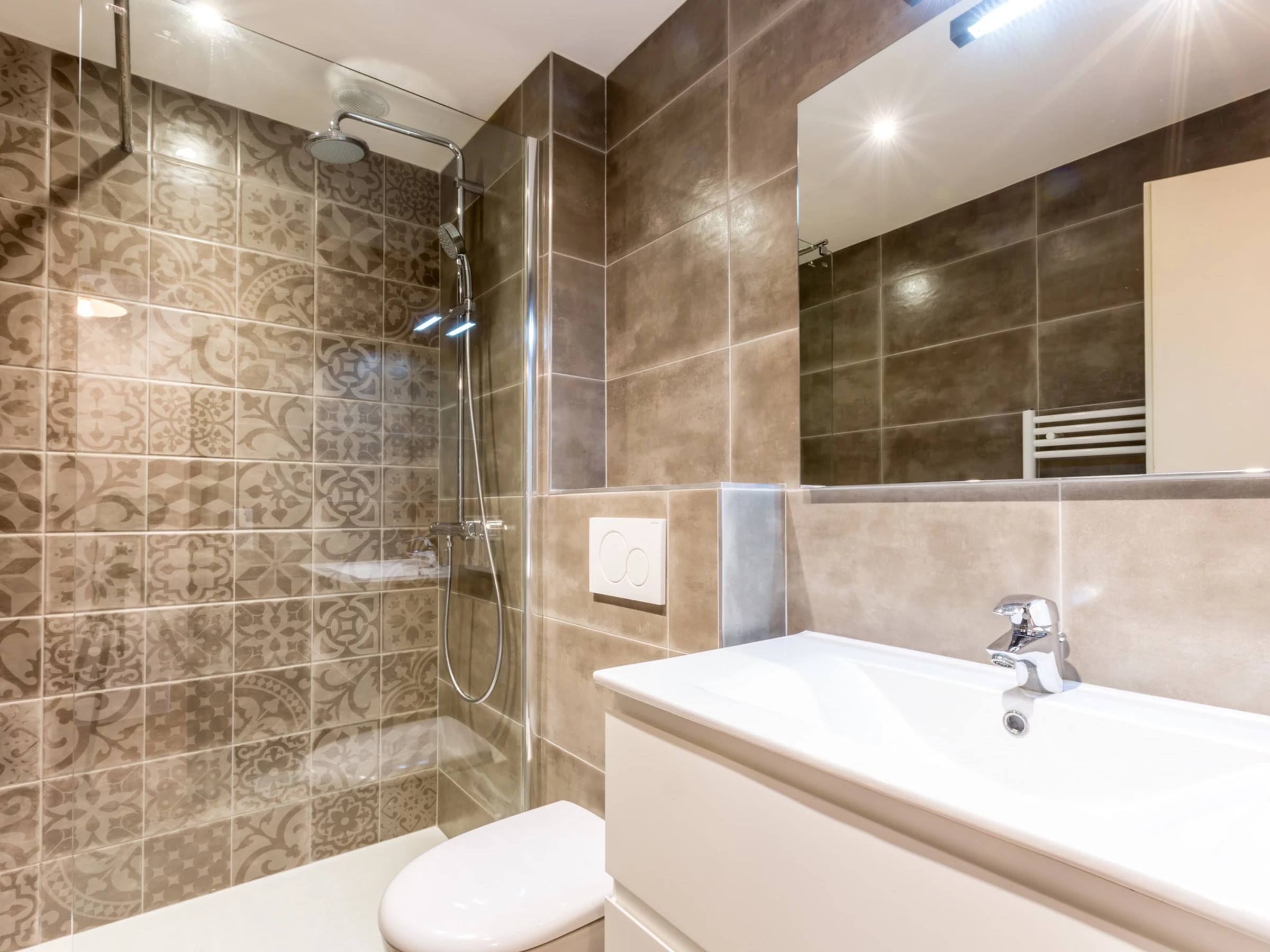 - SALLE D'EAU (3.58 m²) : vasque, douche à l'italienne, radiateur sèche-serviettes, WC