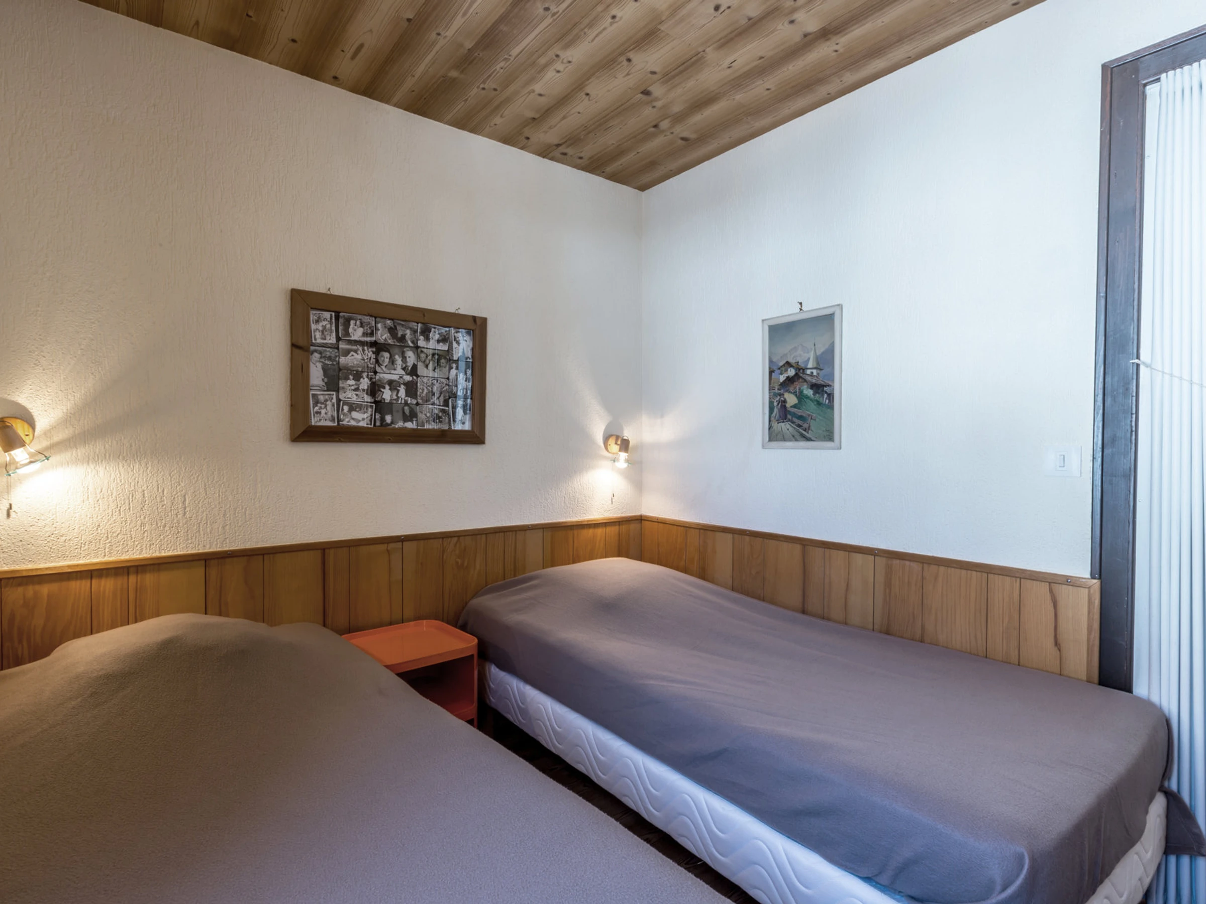 - CHAMBRE (7.49 m²) : 2 LITS 1 PLACE (90), fenêtre ouest, vue sur chalet voisin / montagne