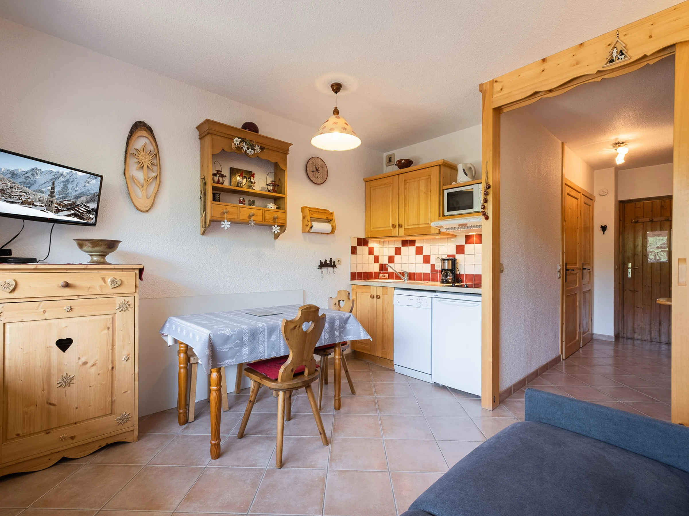 - SEJOUR (11.01 m²) : coin repas, 1 CANAPE-LIT RAPIDO (140), TV écran plat, baie + porte-fenêtre, terrasse sud (11 m²), vue terrasse / montagne