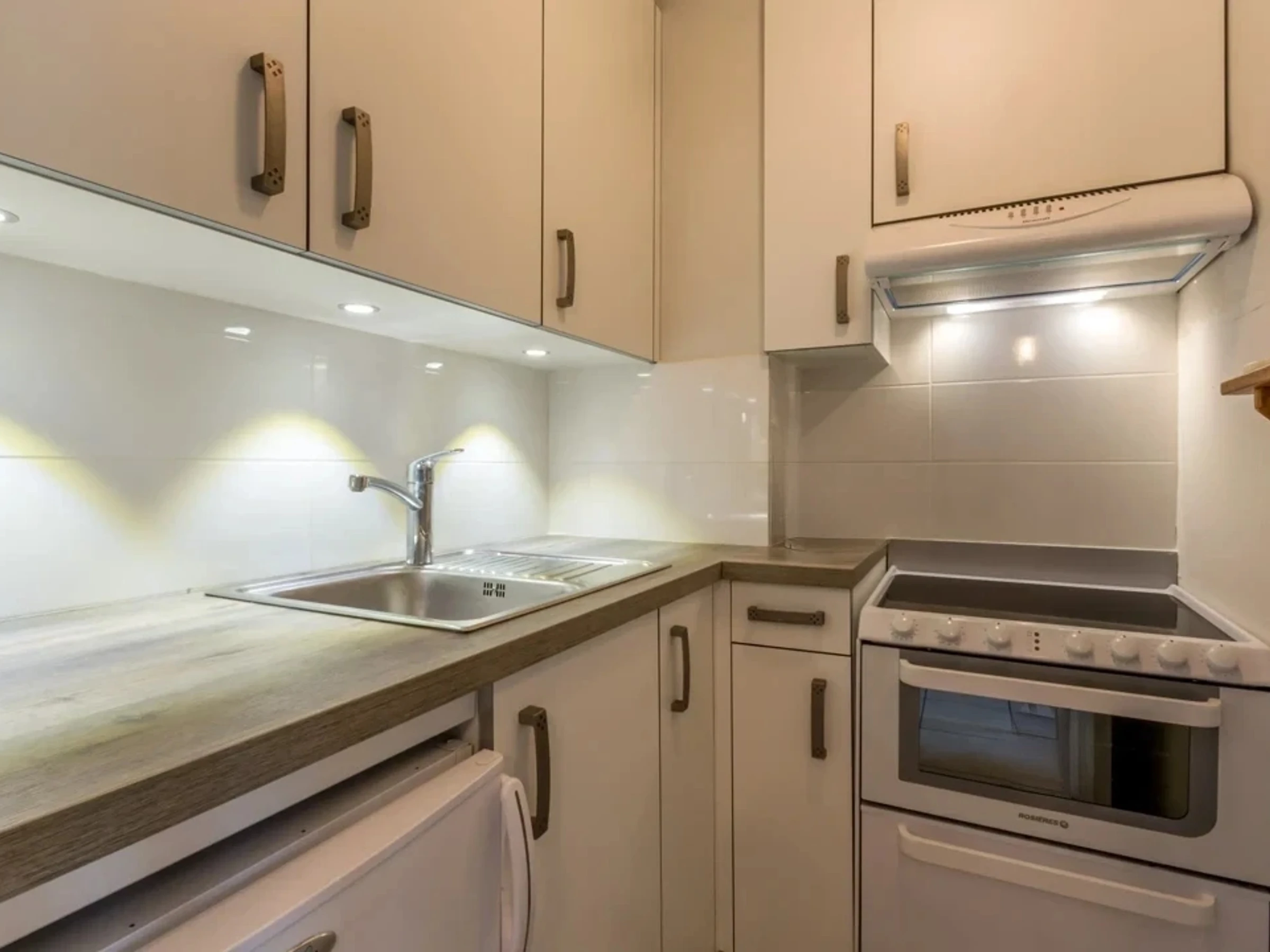 Équipements : Trio : plaques vitrocéramique, four, lave-vaisselle, micro-ondes, réfrigérateur, appareil à raclette, appareil à fondue.