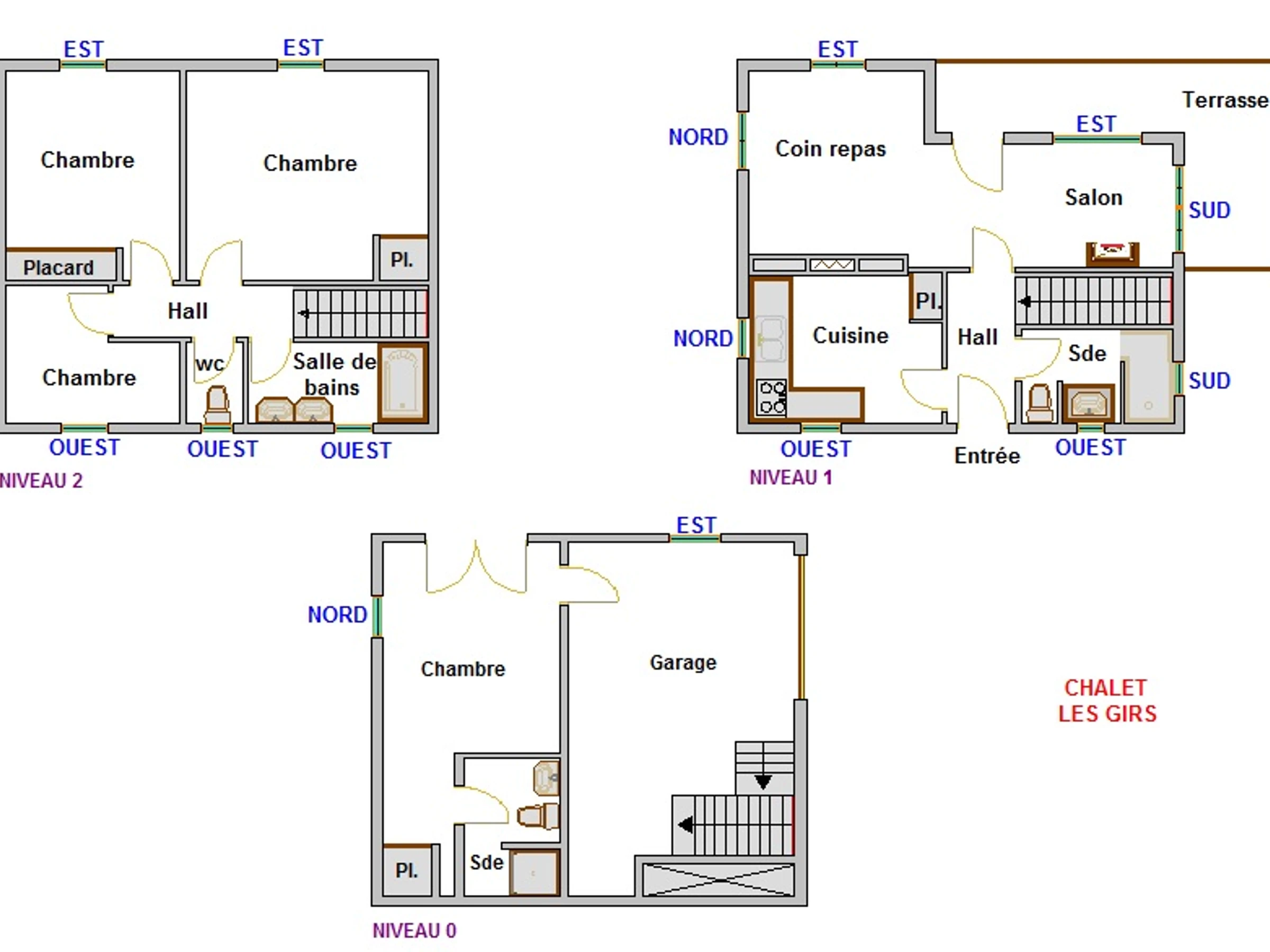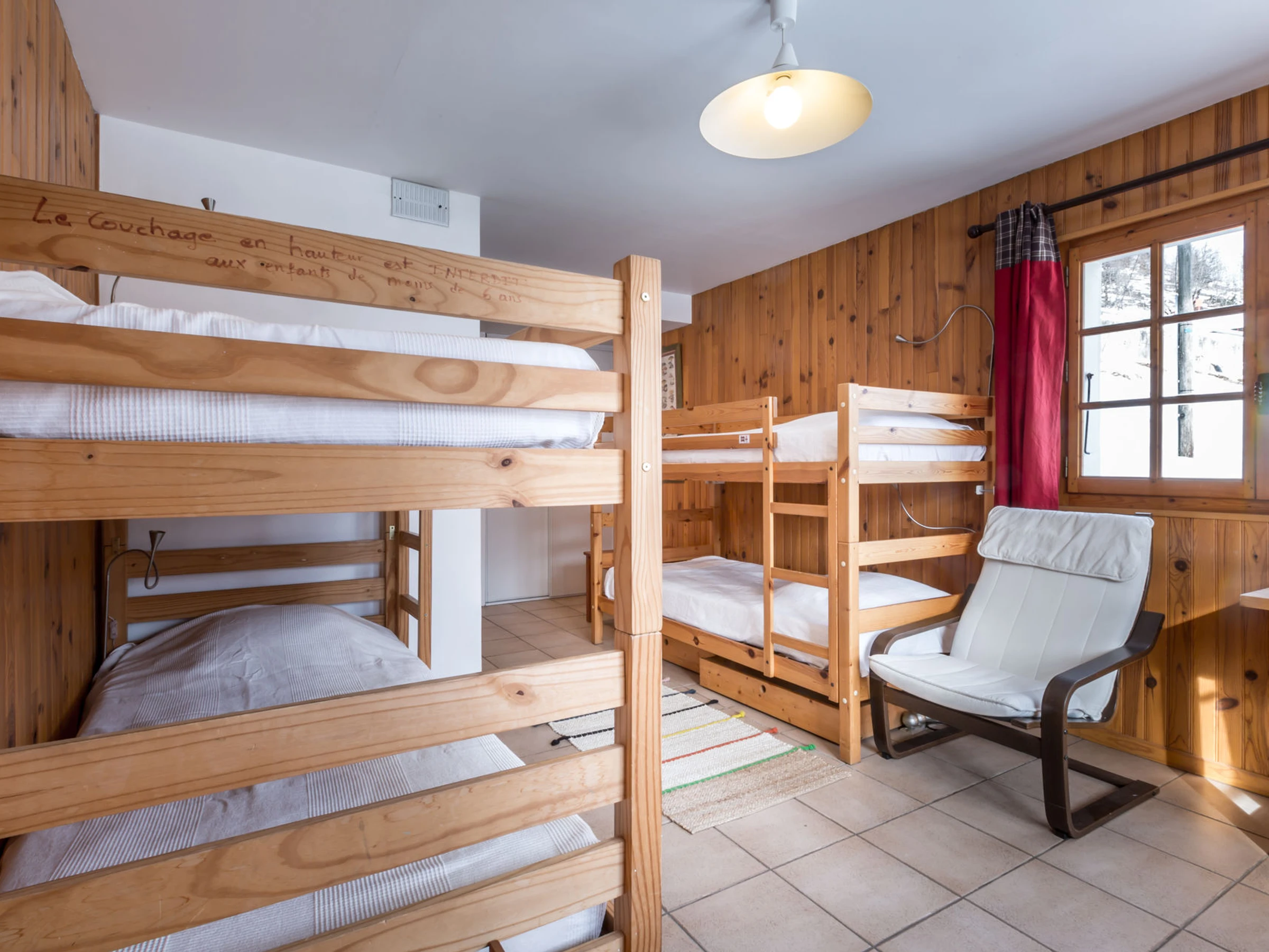 - CHAMBRE (21.42 m²) : 2 X 2 LITS SUPERPOSES (90) -> lit supérieur interdit -6 ans, avec salle d'eau attenante (douche, lavabo, WC), fenêtre nord, porte-fenêtre est, vue chalet voisin