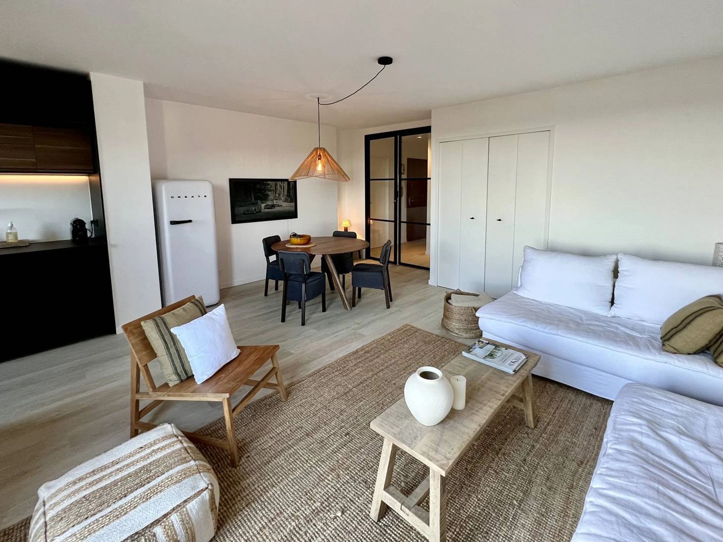 Appartement exceptionnel, entièrement rénové d'environ 55m² avec séjour et cuisine ouverte, décoration très soignée, mobilier de qualité, balcon avec vue imprenable sur la mer et les îles. Une spacieuse chambre avec salle de douche (douche à l'italienne), lit queen size et matelas de bonne qualité. Prestations de haut standing dans une résidence recherchée située entre mer et village. Piscine collective à disposition. Plage du débarquement accessible à pieds par un sentier qui traverse les vignes jusqu'à la mer, en 20 minutes environ. Le village de La Croix-Valmer et ses commerces sont accessibles en 5 minutes à pieds. Parking privatif dans la résidence. Connexion internet fibre sur place. Possibilité de louer du linge. Ménage de départ en supplément (75€).