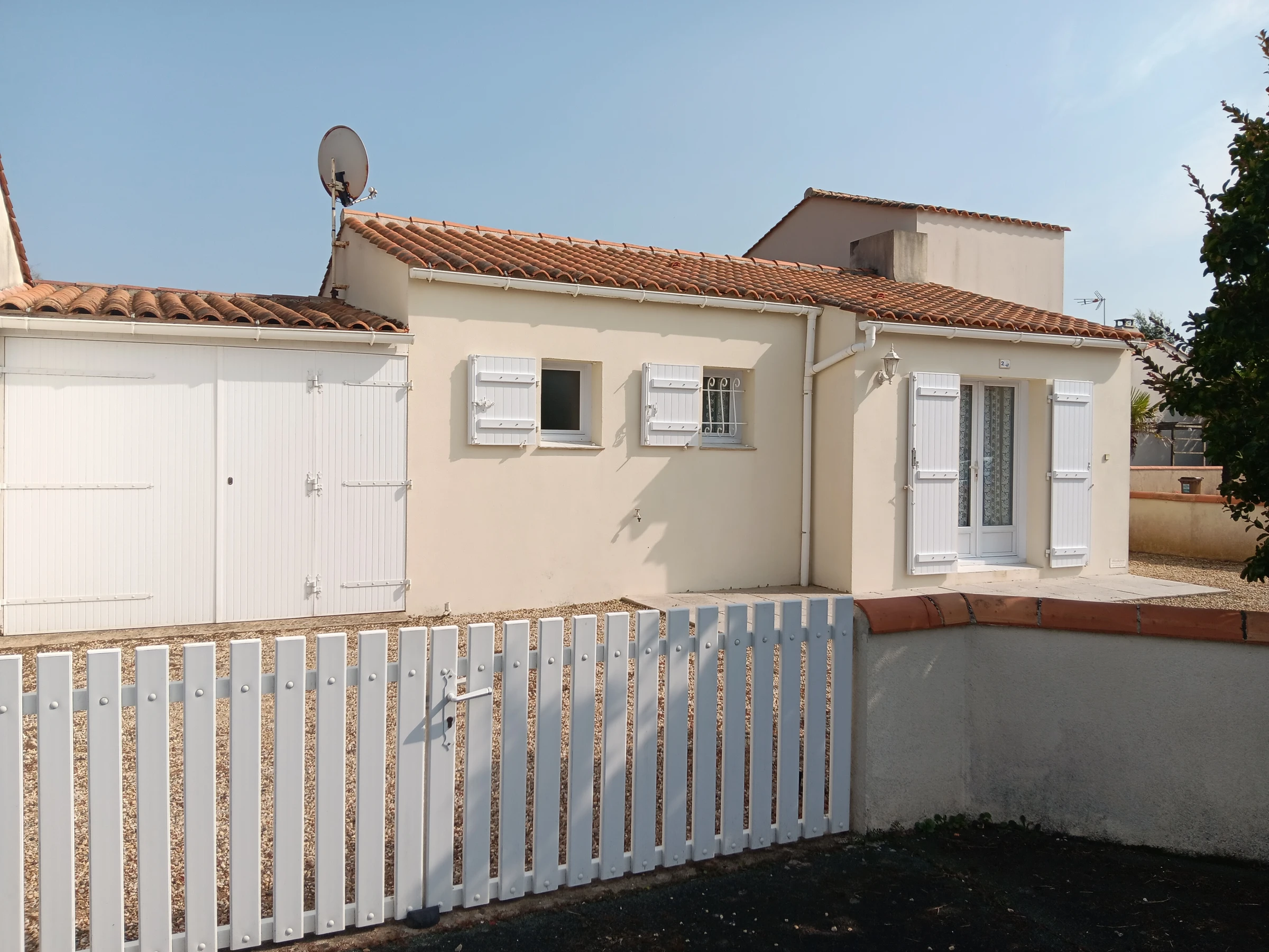 Maison dans secteur résidentiel et tranquille, à 1200 Mètres de la plage et 1 000 Mètres des commerces. Séjour/salon avec un clic clac couchage 2 personnes, TELEVISION et box internet fibre haut débit avec WIFI - Kitchenette équipée: plaque vitrocéramique, four électrique, réfrigérateur/congélateur et MICRO ONDES - Une chambre avec 1 lit de deux personnes (160 cm) - Salle d'eau avec douche, vasque sur meuble et LAVE LINGE - WC séparé - Jardin avec terrasse, salon de jardin et store banne pour des moments de détente. Ménage au soin du locataire. Linge de maison non fourni, location possible auprès de notre partenaire, nous contacter. Chauffage du 1er octobre au 31 mai en sus selon relevé de compteur.
