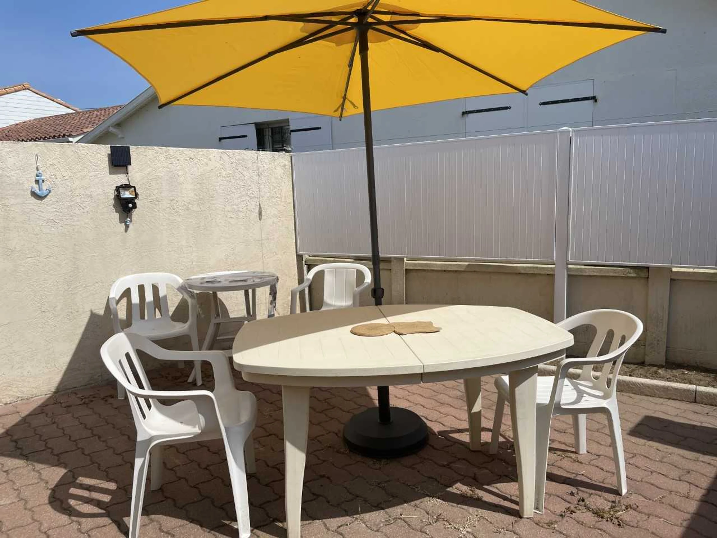 Logement situé à 600 M plage et 500 M des commerces. Maison individuelle divisée en 7 logts. indépendants: 4 au rez de chaussée et 3 à l'étage. Logement au rez de chaussée à droite comprenant une pièce principale avec télévision et un canapé convertible couchage 1 à 2 personnes - Coin cuisine: plaque vitrocéramique, four électrique, Frigo/congélateur et Micro-ondes - Grande chambre un lit pont de 140 cm et deux lits de 90 cm superposés – Une salle d’eau avec cabine de douche et vasque – Un WC – Une véranda avec un BZ couchage 1 à 2 personnes et un coin salle d'eau: douche, lavabo et LAVE LINGE - Cour fermée avec salon de jardin et barbecue au gaz- Une place de parking privée - Ménage au soin du locataire. Linge de maison non disponible, location de linge possible auprès de notre partenaire: ID SERVICE. EDF en sus en intersaison. location wifi possible avec box 5G : 40€/semaine