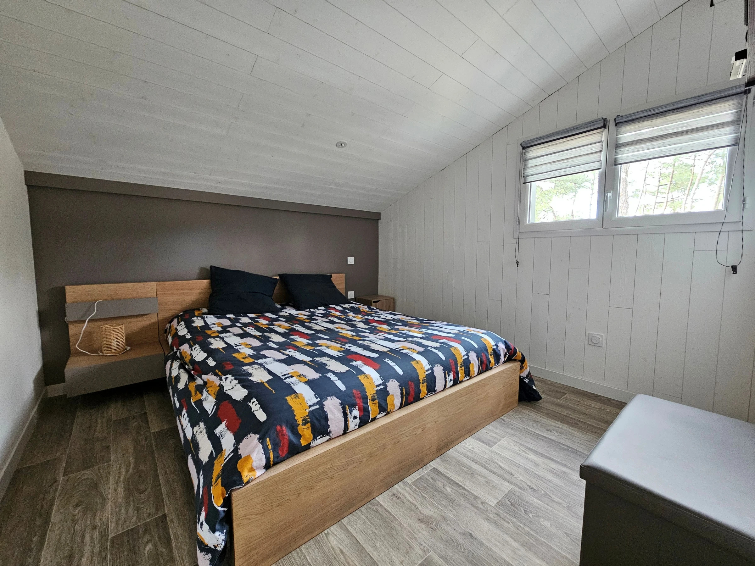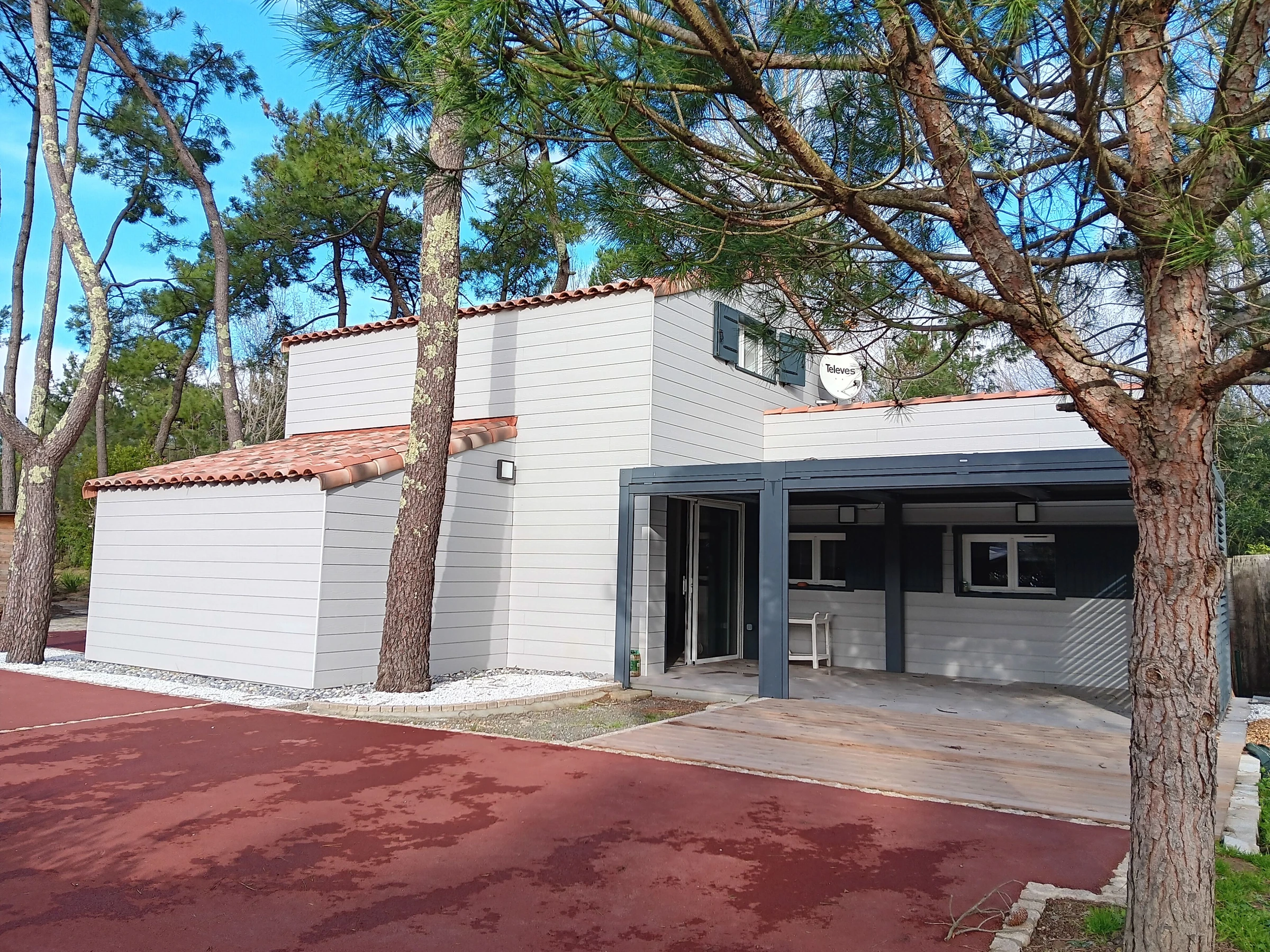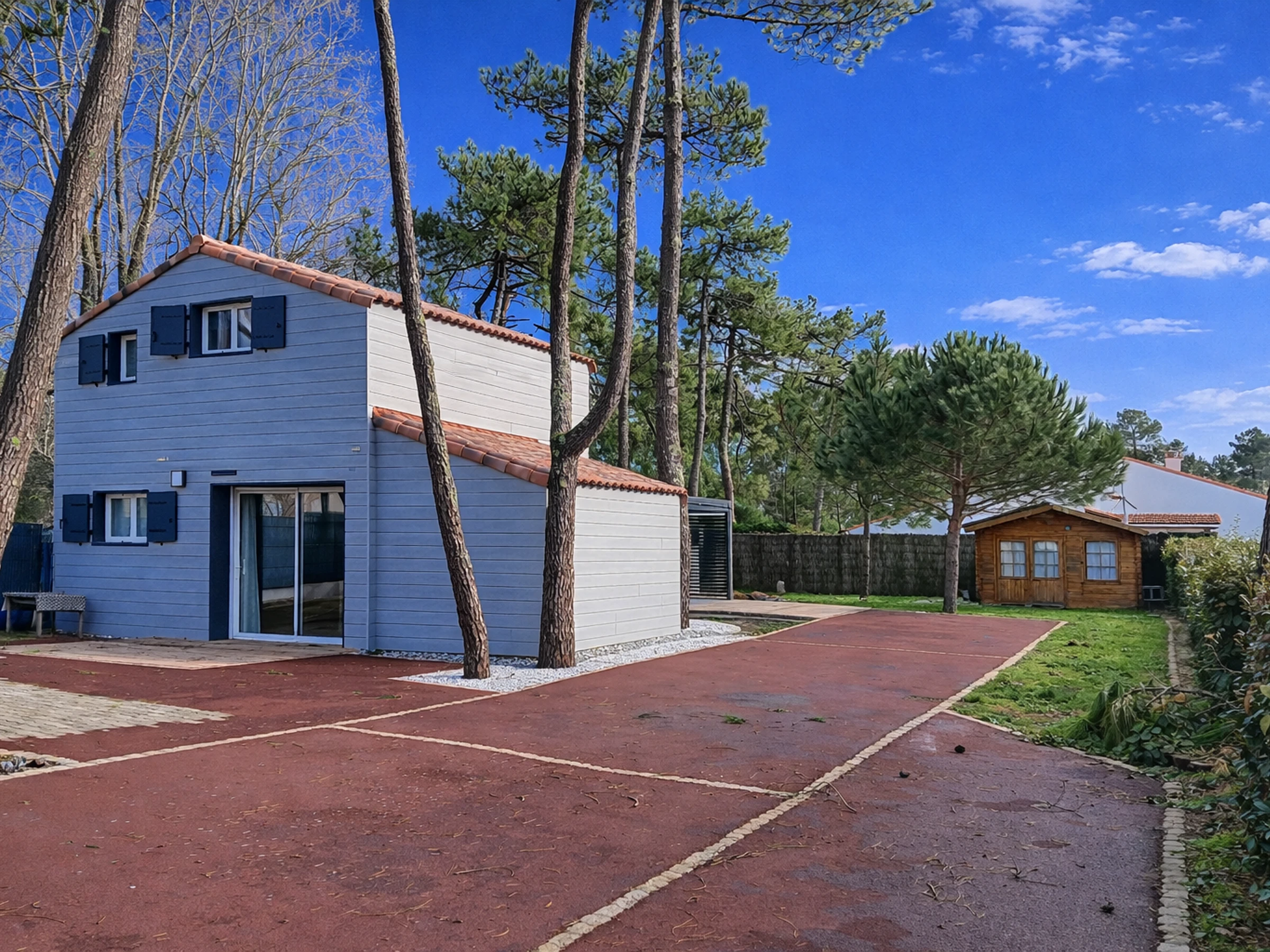 Située à 500 Mètres de la Plage et 2600 Mètres du centre bourg - Appréciée pour sa proximité de la forêt de pinèdes et ses sentiers pédestres pour des balades et pour admirer les écureuils - Propriété de 2 logements indépendants avec une allée commune (nous consulter), comprenant : une pièce de vie avec télévision, une cuisine ouverte équipée d’une plaque de cuisson au gaz, un frigo/congélateur américain, lave-vaisselle, micro-ondes et four électrique, un WC, une chambre avec un lit de 140 cm, télévision et dressing et salle d’eau attenante avec lavabo et douche italienne. A l’étage, une chambre avec un lit de 160 cm + un lit bébé et télévision, une autre chambre avec un lit de 160 cm et télévision et une salle d’eau avec douche, vasque sur meuble et WC. Un cabanon avec LAVE LINGE.