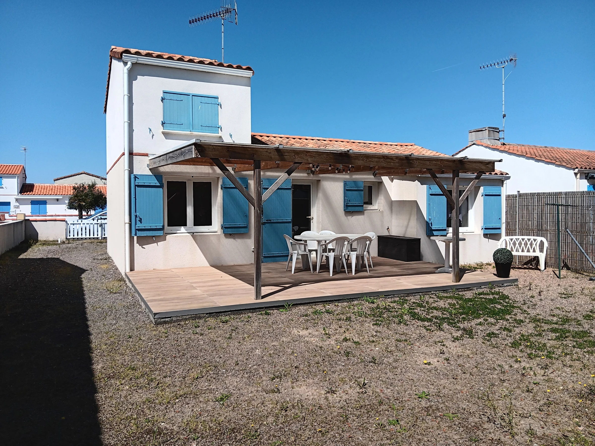 Maison dans secteur résidentiel et tranquille, à 1200 Mètres de la plage et 1 000 Mètres des commerces. Séjour/salon avec TELEVISION - Kitchenette équipée: gazinière avec four, réfrigérateur/congélateur et MICRO ONDES -3 chambres avec chacune 1 lits de deux personnes - Salle d'eau avec douche, lavabo et LAVE LINGE - WC séparé - Jardin avec terrasse et salon de jardinet plancha pour des moments de dé[hidden] locataires n'ont pas accès à l'étage qui est réservé au propriétaire) Ménage au soin du locataire. Linge de maison non fourni, location possible auprès de notre partenaire, nous contacter. Chauffage du 1er octobre au 31 mai en sus selon relevé de compteur. Location wifi possible avec box 5G : 40€/semaine