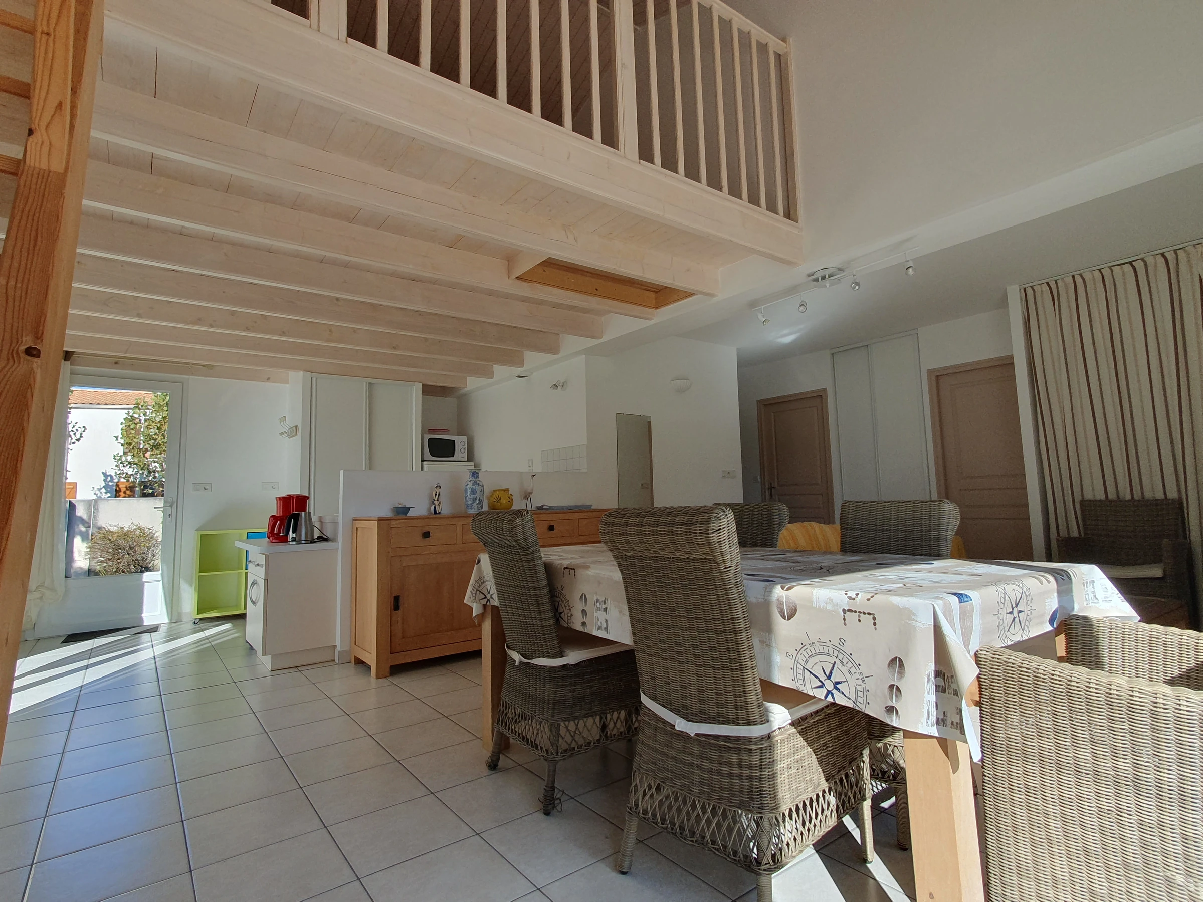 Agréable maison avec accès direct plage à moins de 100 mètres par la forêt et dune de sable et à 800 mètres des commerces, dans un environnement boisé de toute beauté. - Comprenant : séjour/salon avec TELEVISION - Cuisine ouverte (LAVE VAISSELLE, plaques vitrocéramiques, REFRIGERATEUR/CONGELATEUR, MICRO ONDES, four) - Une chambre: 1lit 160x200- une chambre avec 2 lits 1 personne - Une salle d'eau avec douche italienne, lavabo et LAVE LINGE - WC - A l'étage, une mezzanine avec 1 lit 2 personnes - Jardin clos avec terrasse, salon de jardin et barbecue. POUR DE BONNES VACANCES REPOSANTES EN FAMILLE! Ménage au soin du locataire. Linge de maison non fourni, location possible auprès de notre partenaire, nous contacter. Chauffage du 1er octobre au 31 mai en sus selon relevé de compteur. Location wifi possible avec box 5G : 40€/semaine