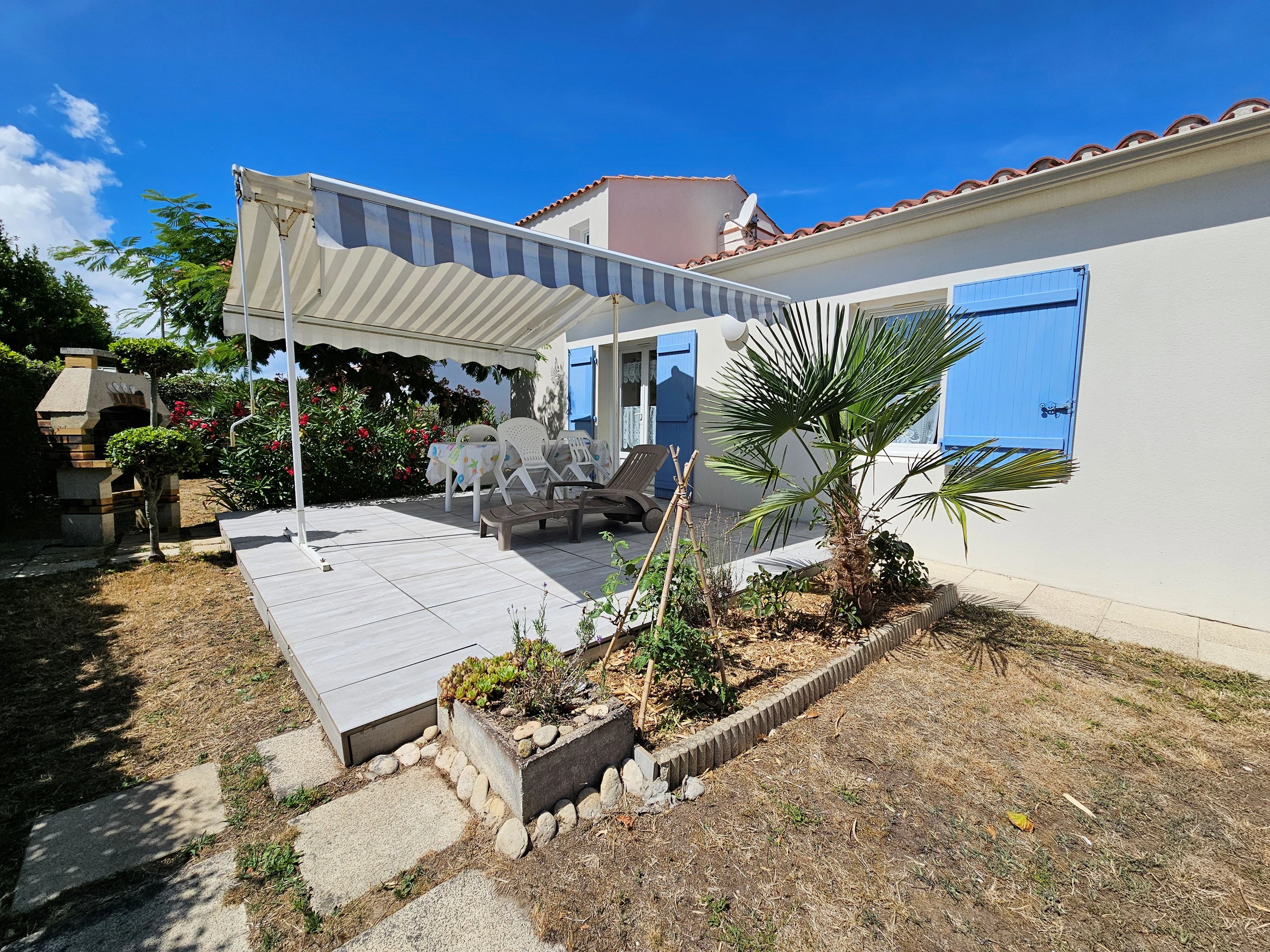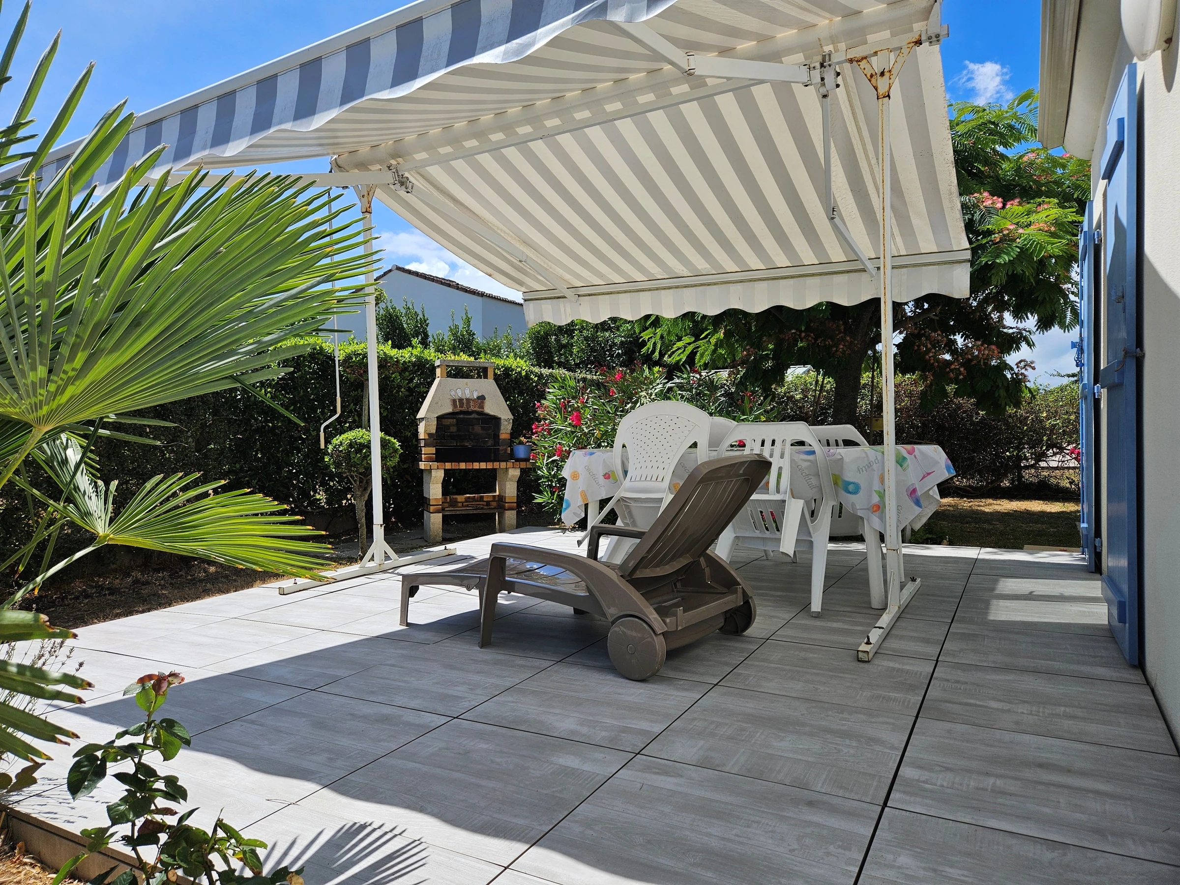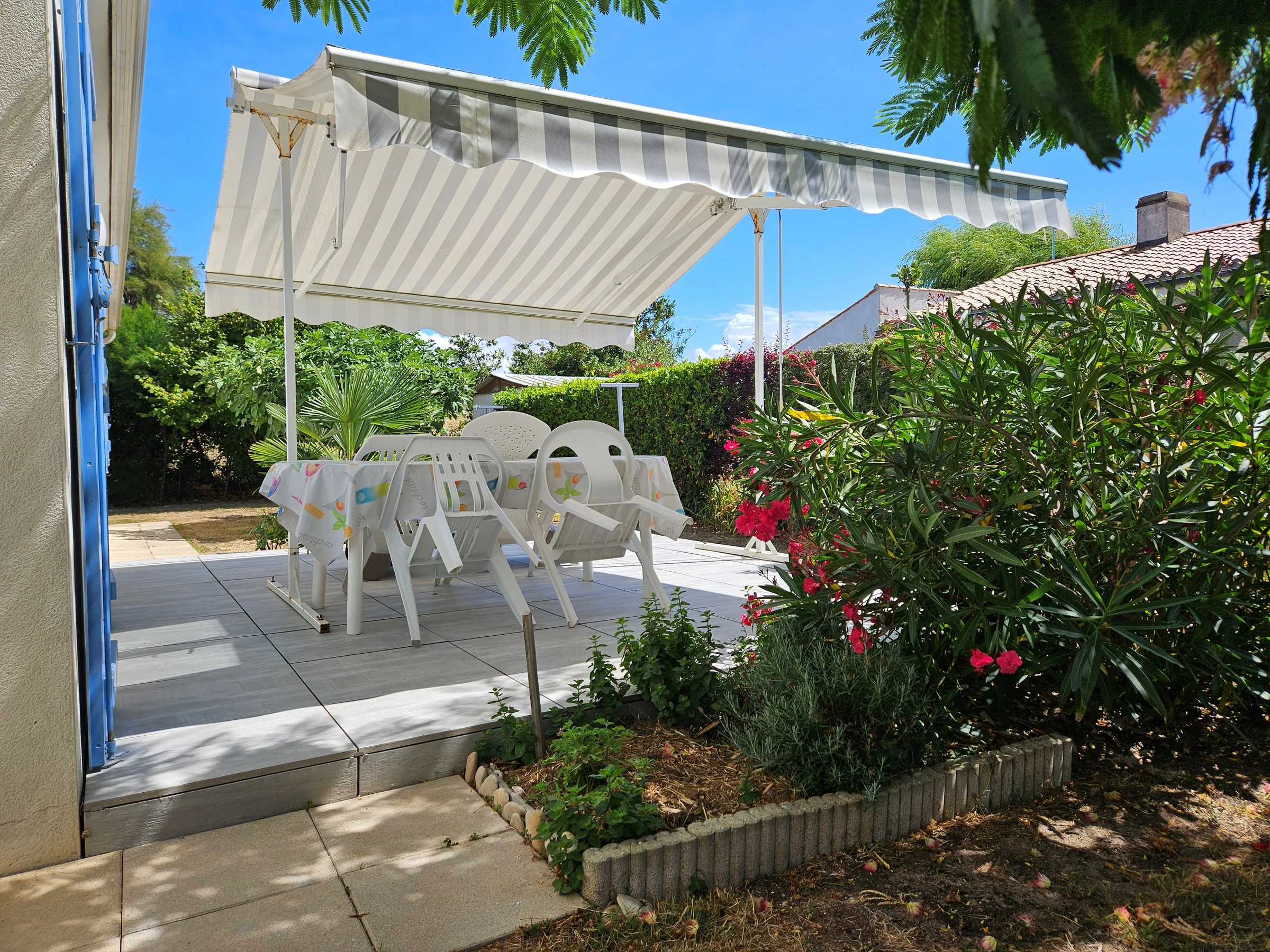Villa située impasse des silènes, à 500 M du centre ville et 600 M de la plage. Comprenant: une kitchenette équipée de feux gaz, four, réfrigérateur avec petite partie congélateur et MICRO-ONDES, et ouverte dans le séjour-salon et TELEVISION - Salle d'eau avec douche et vasque - WC séparé - Une chambre avec un lit de deux personnes et une deuxième chambre avec deux lits d'une personne - Garage à usage de débarras avec LAVE LINGE - Jardin clos avec terrasse et salon de jardin pour profiter des moments de détente. Ménage au soin du locataire. Linge de maison non fourni, location possible auprès de notre partenaire, nous contacter. Chauffage du 1er octobre au 31 mai en sus selon relevé de compteur. Location wifi possible avec box 5G : 40€/semaine