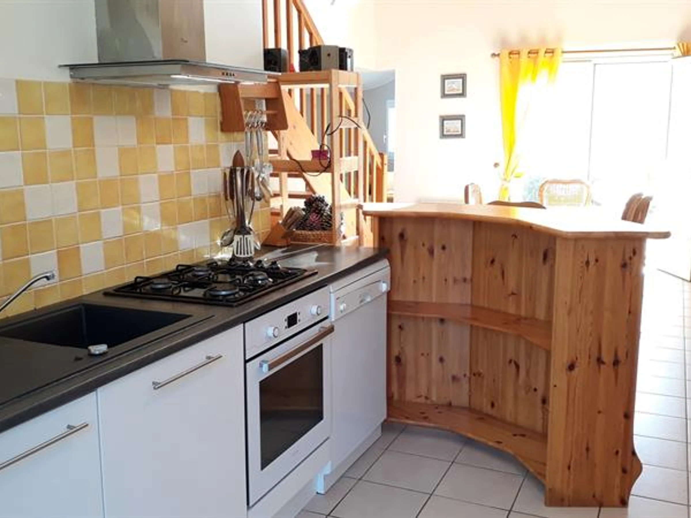 Jolie villa composée au rez de chaussée d'une cuisine équipée d'un micro ondes, d'un frigo, d'un lave vaisselle, d'un four, d'un séjour avec cheminée, d'un salon, de trois chambres avec 1 lit de 160, 1 lit de 140, et 2 lits de 80 rapprochés,de deux salles d'eau, d'un WC.