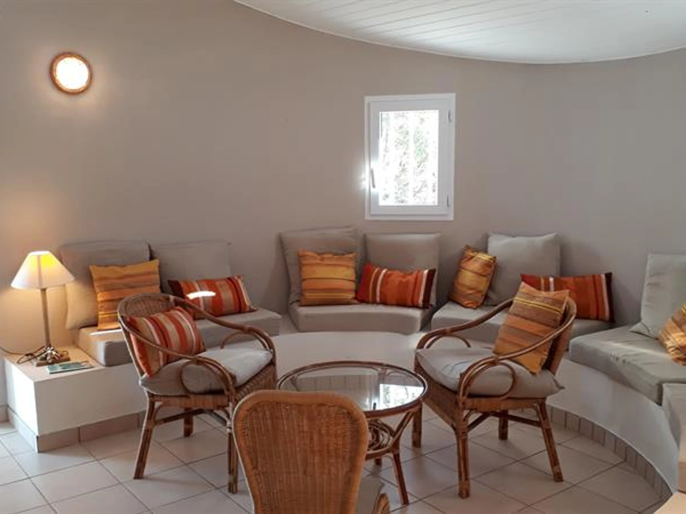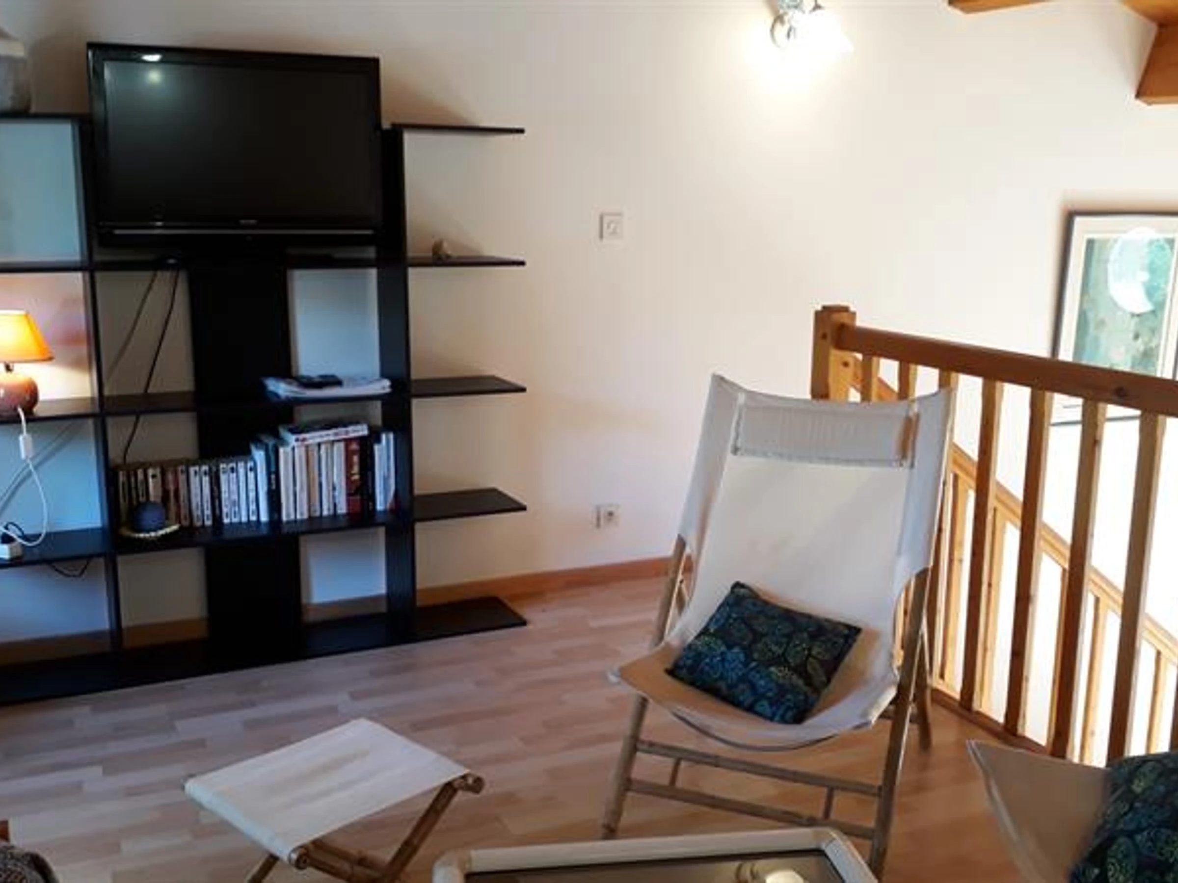 A l'étage, une mezzanine avec clic clac, 2 lits d'appoint de 90 et écran plat. A l'extérieure, un grand jardin avec terrasse ensoleillée, salon de jardin et barbecue en dur. Villa située à 400 m de la plage et 3000 m du centre ville, elle est labellisée Clévacances 2 clés.