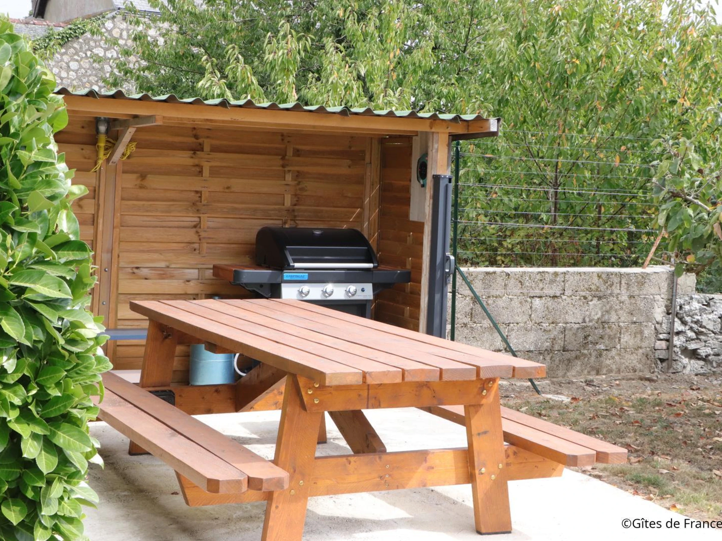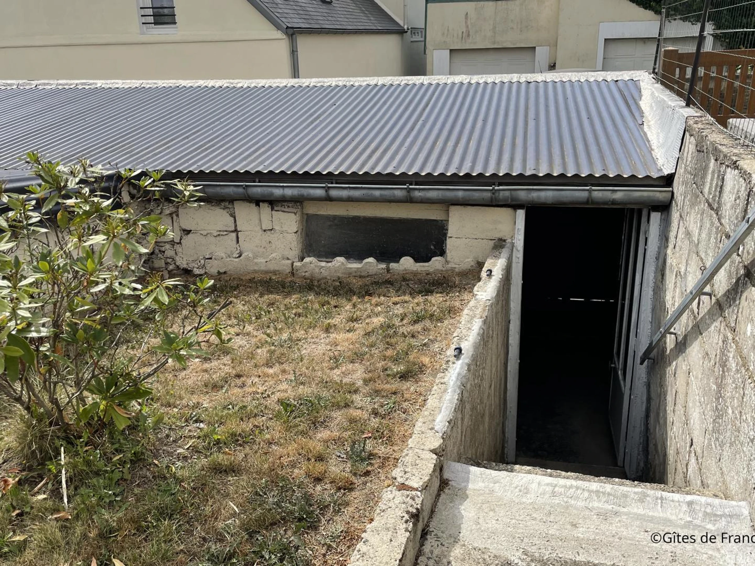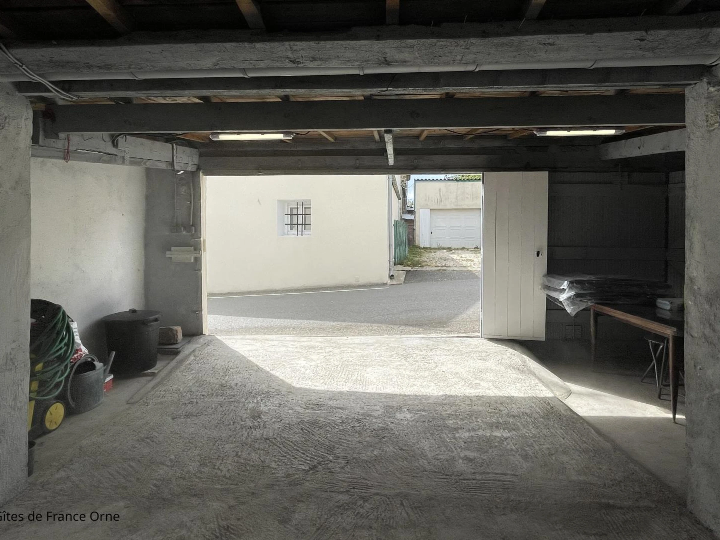 - Garage de 30m² à quelques mètres de la maison à droite avec emplacement pour voiture (5.20m x 2.60m), donnant accès au jardin clos surélevé 160m2 (table de jardin, barbecue)