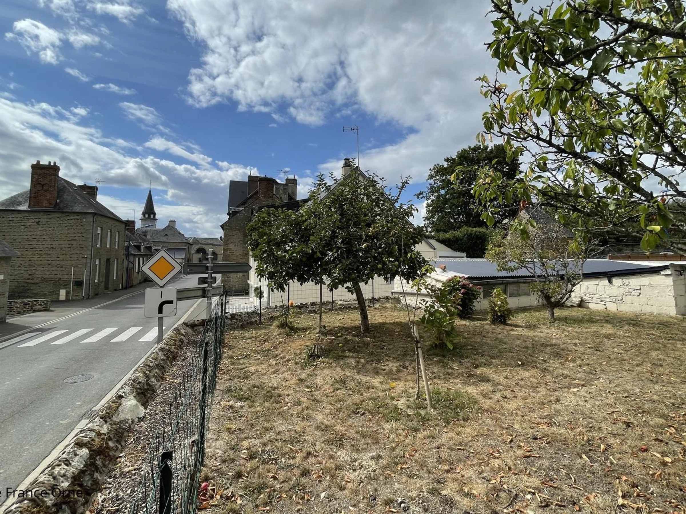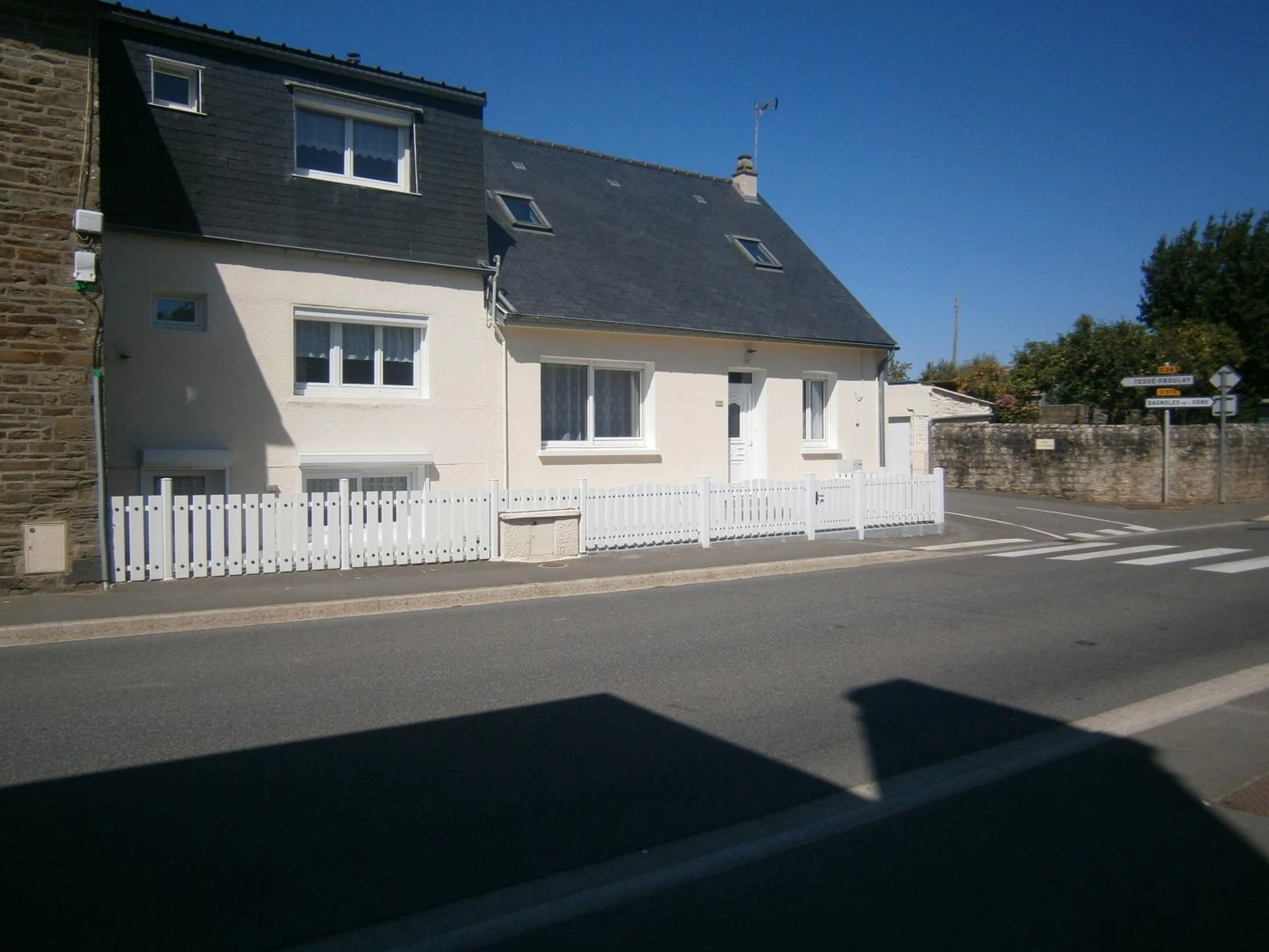 Vue sur la rue et maisons environnantes.