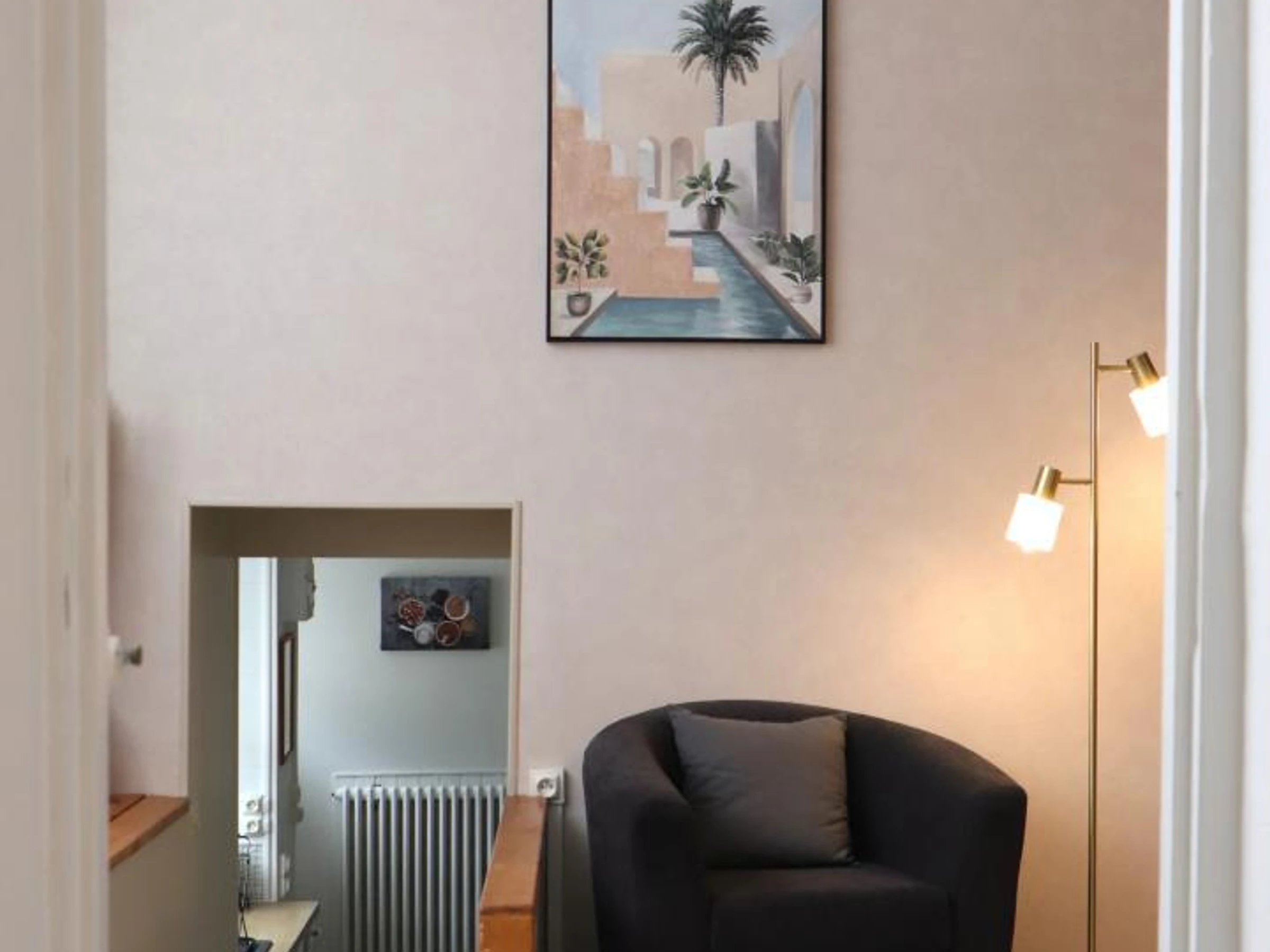 - palier avec fauteuil, livres et jeux de société