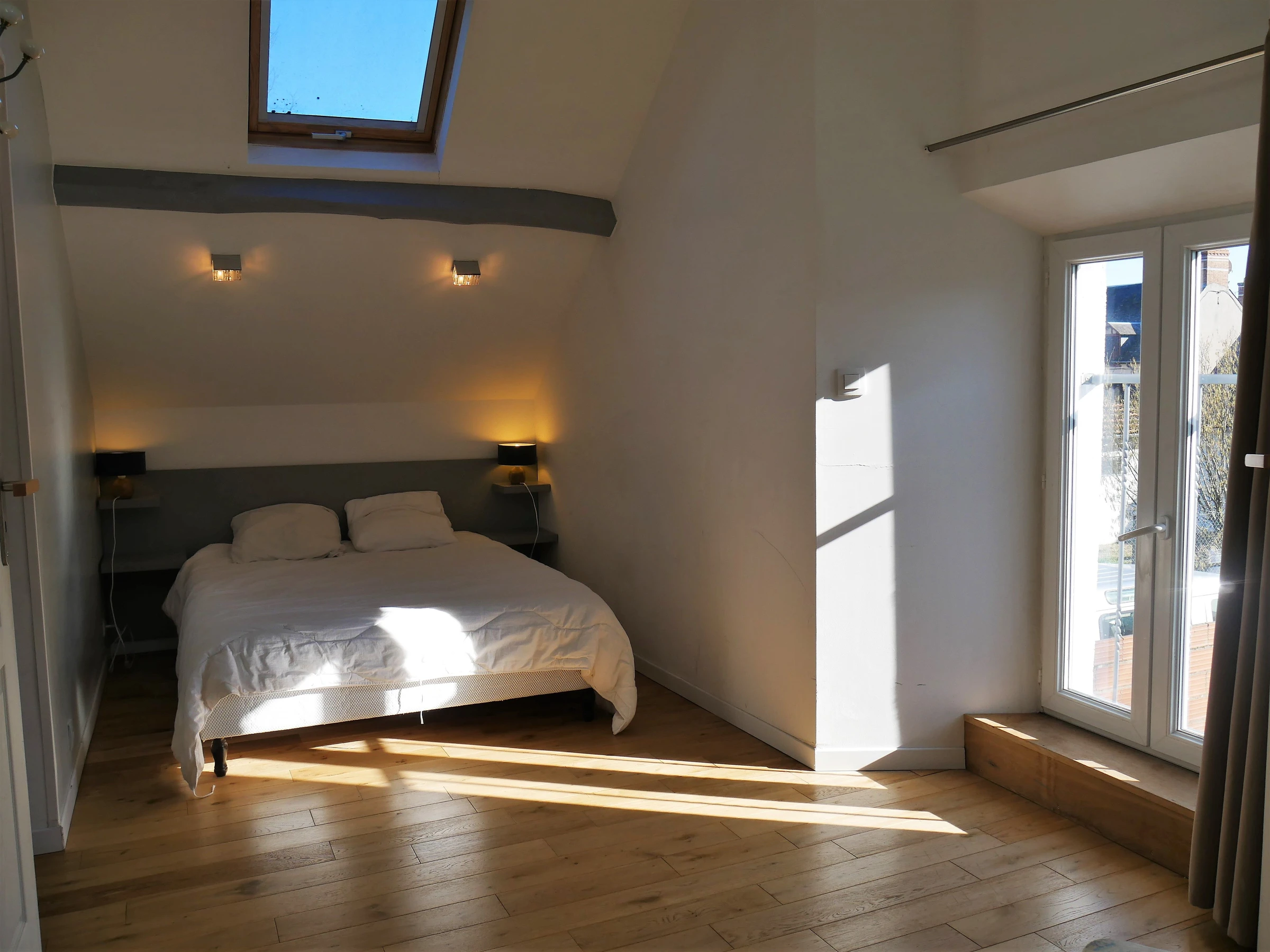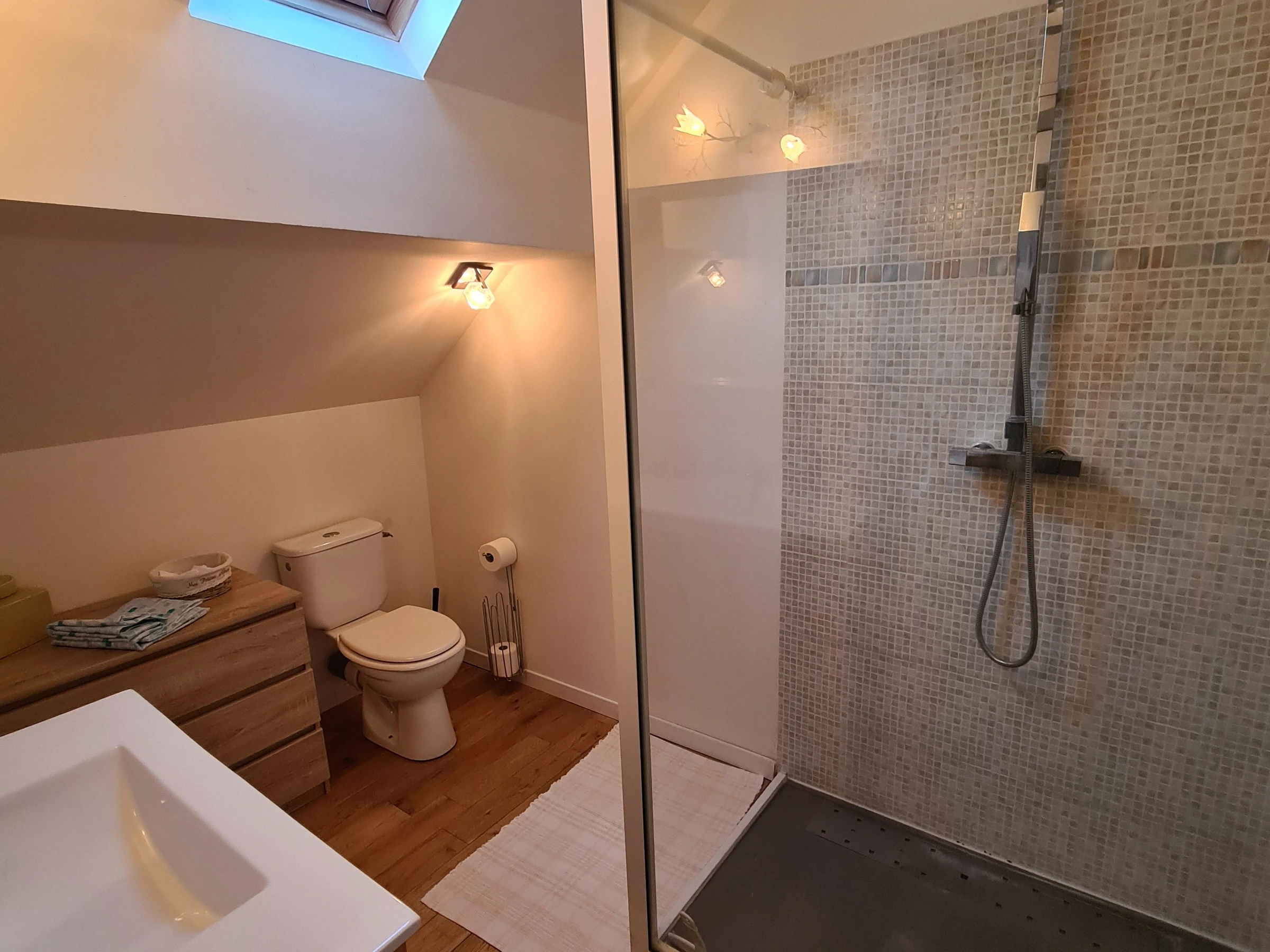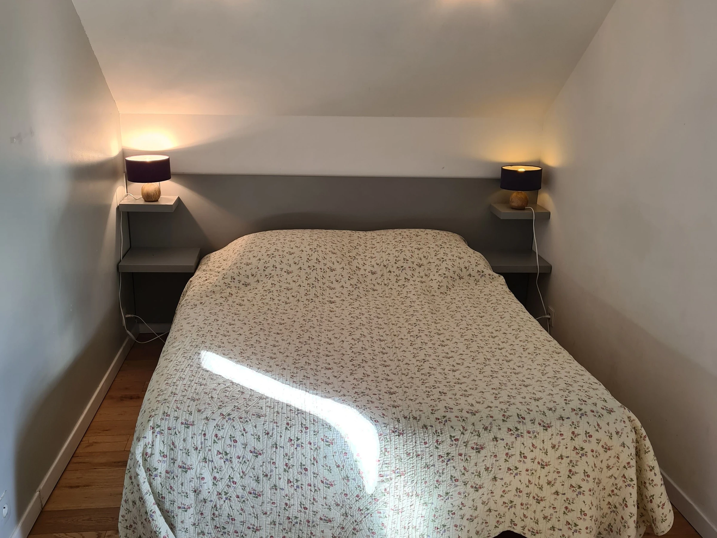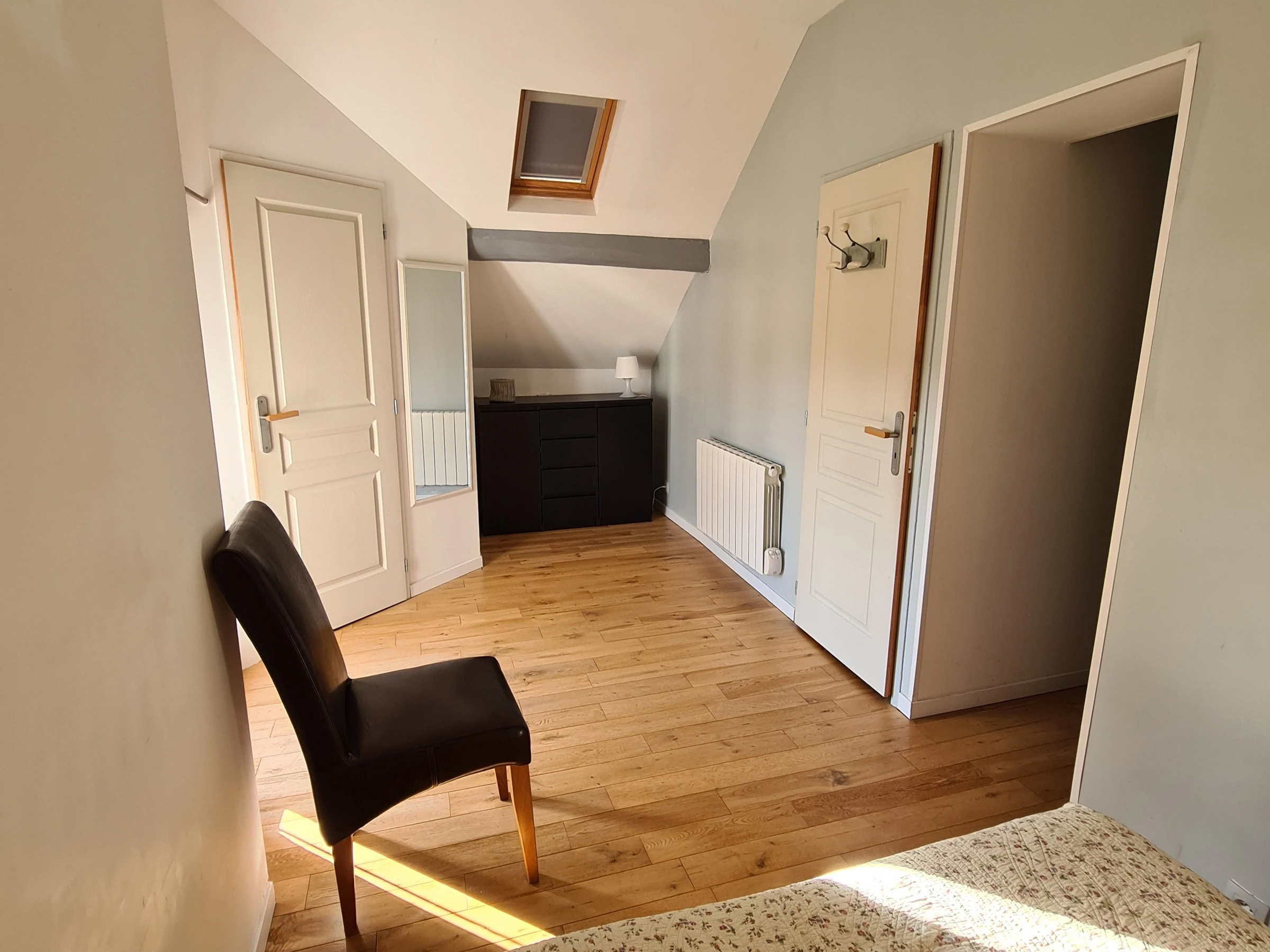 A l’étage, 2 chambres avec lits doubles (140 cm) avec salle d'eau et WC privatifs, une chambre avec un lit simple 90 cm, un dressing et penderie.