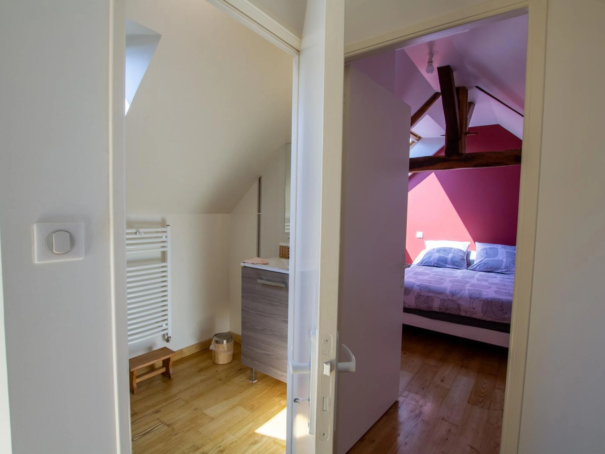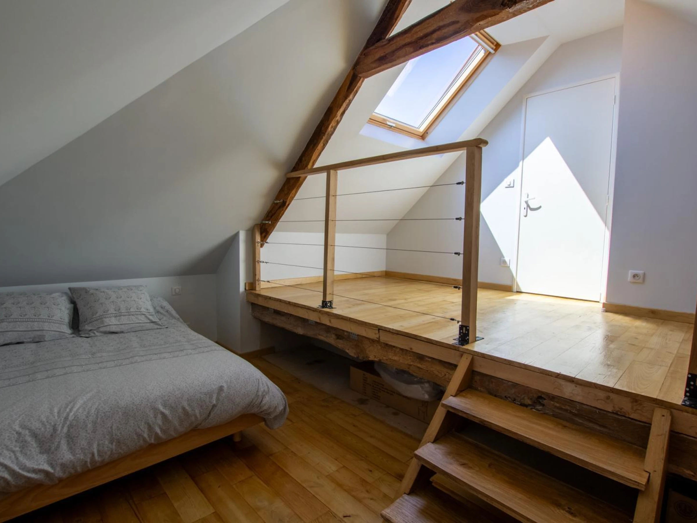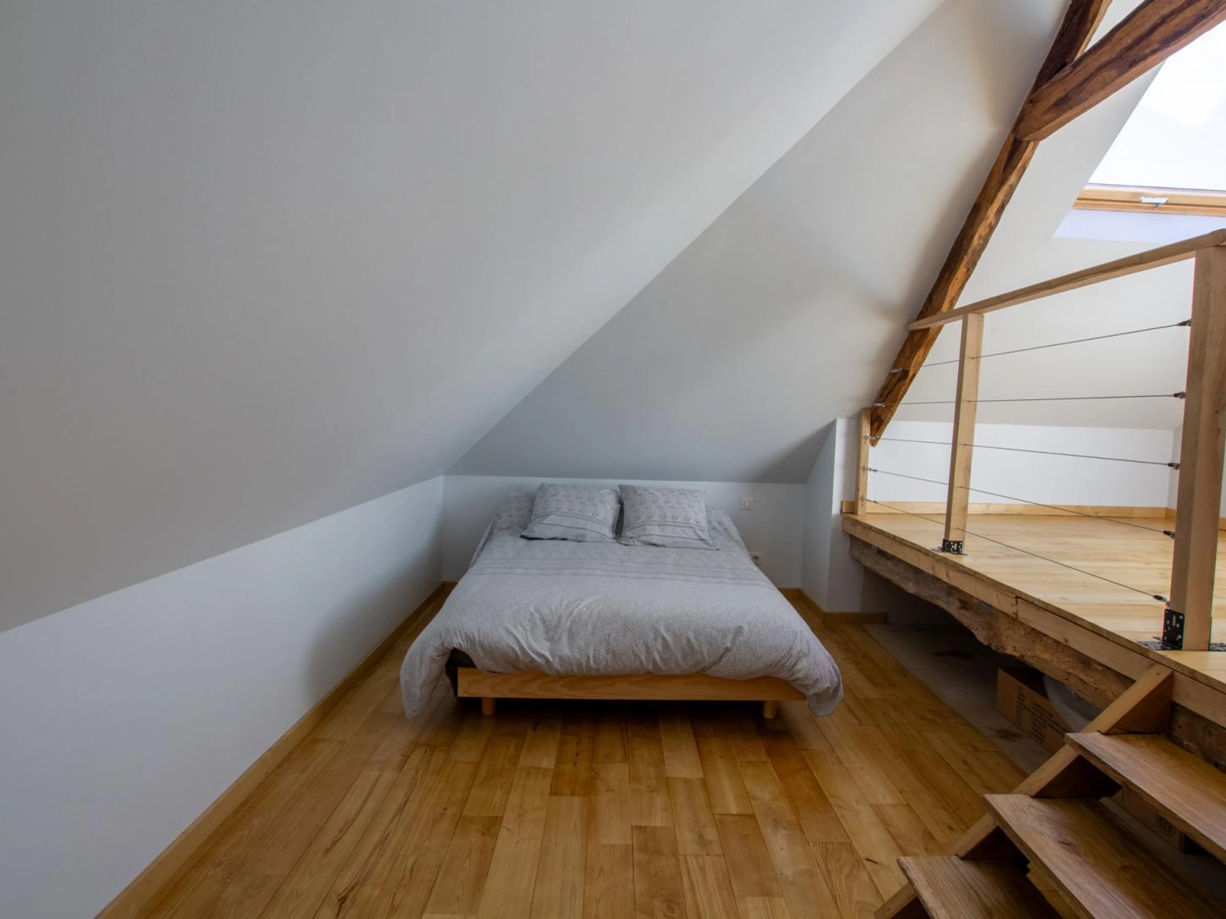 A l'étage, 2 chambres mansardées avec chacune un lit de 140, clim réversible. WC indépendants avec lave-mains.