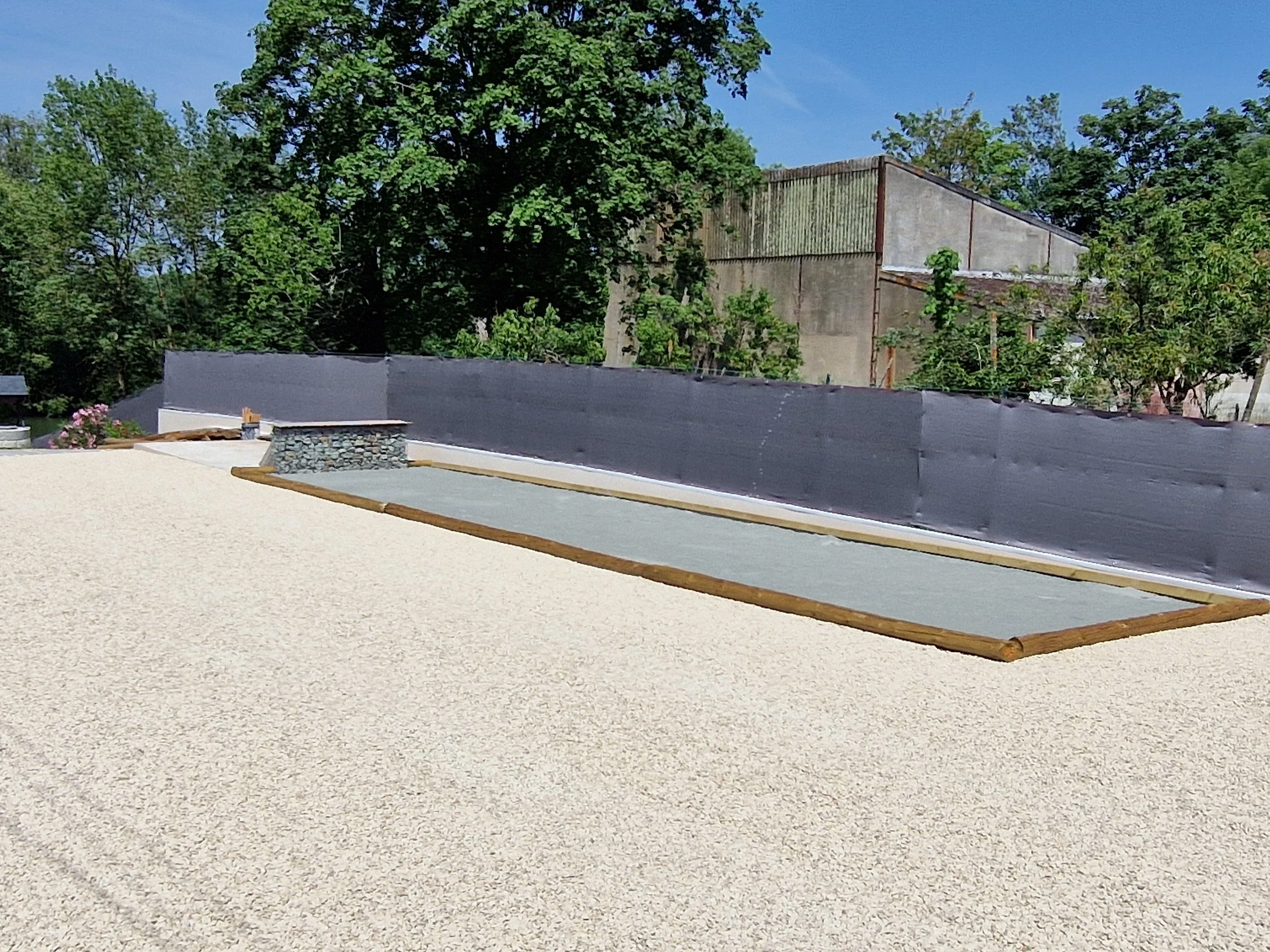 Nous avons une grande banderie avec lave-linge et sèche-linge avec jeu sur place (filet et raquette de badminton, Molky, jeu de pétanque adulte et enfant, jeu de palet sur planche en bois, raquette plage).