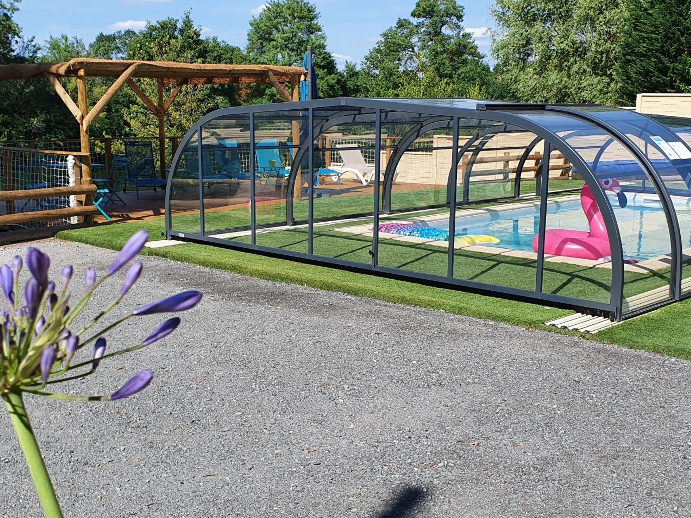 L'avantage de l'abri vous permet d'être au chaud à l'intérieur en cas de météo mitigée, il peut être ouvert entièrement ou en partie. C'est indispensable pour pouvoir profiter de la piscine une très grande partie de l'année.