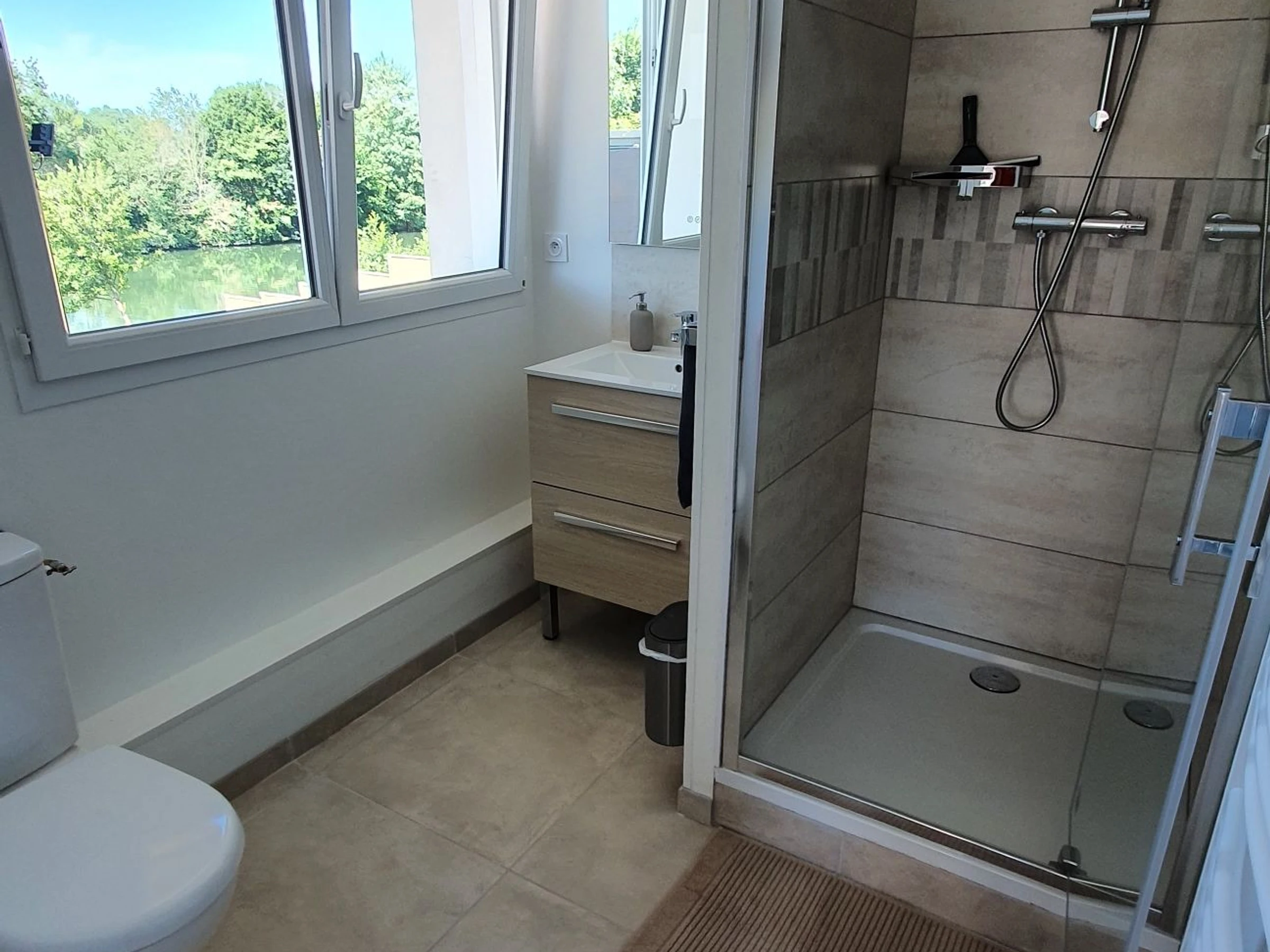 1 salle d'eau avec grande douche italienne et double vasque. WC indépendant. 2 chambres avec 1 lit de 140 x 200 et 2 chambres avec 1 lit de 140 x 200 et 1 lit de 90 x 200 en mezzanine. Un grand dressing commun aux 4 chambres (jeu de société à disposition). Au RDC une salle d'eau avec WC. Espace buanderie avec lave-linge et sèche-linge avec jeu sur place (filet et raquette de badminton, Molky, jeu de pétanque adulte et enfant, jeu de palet sur planche en bois, raquette plage).