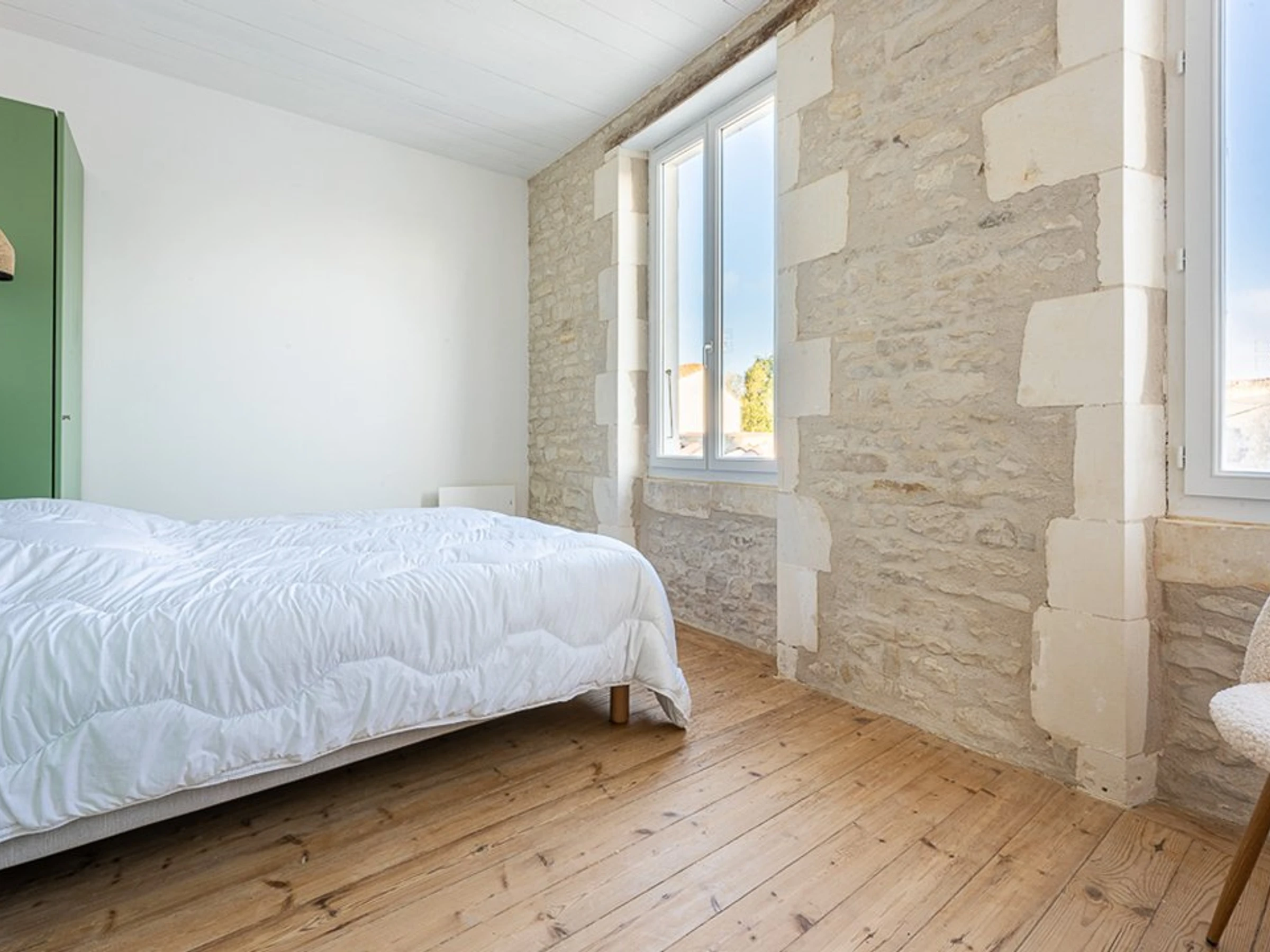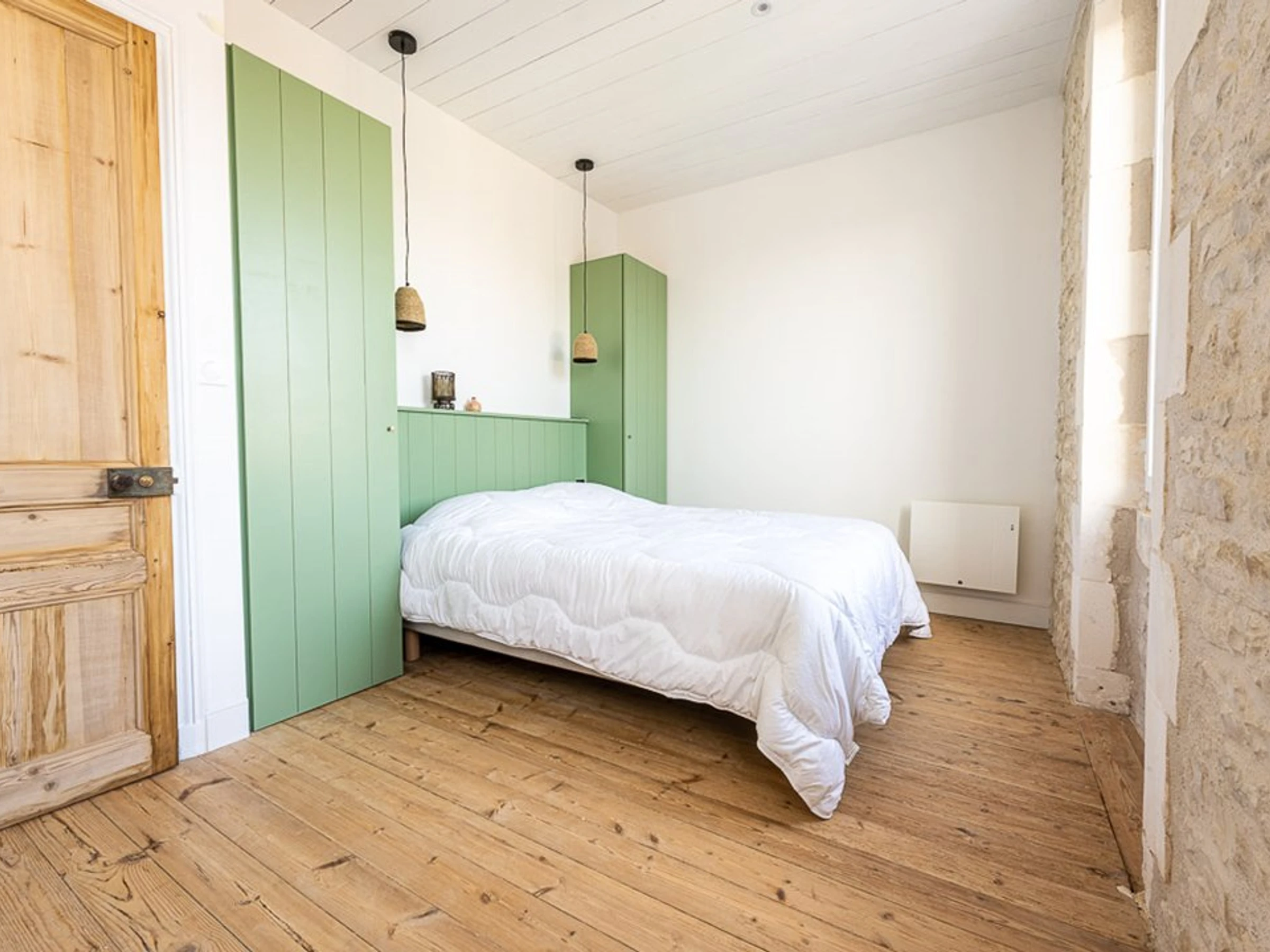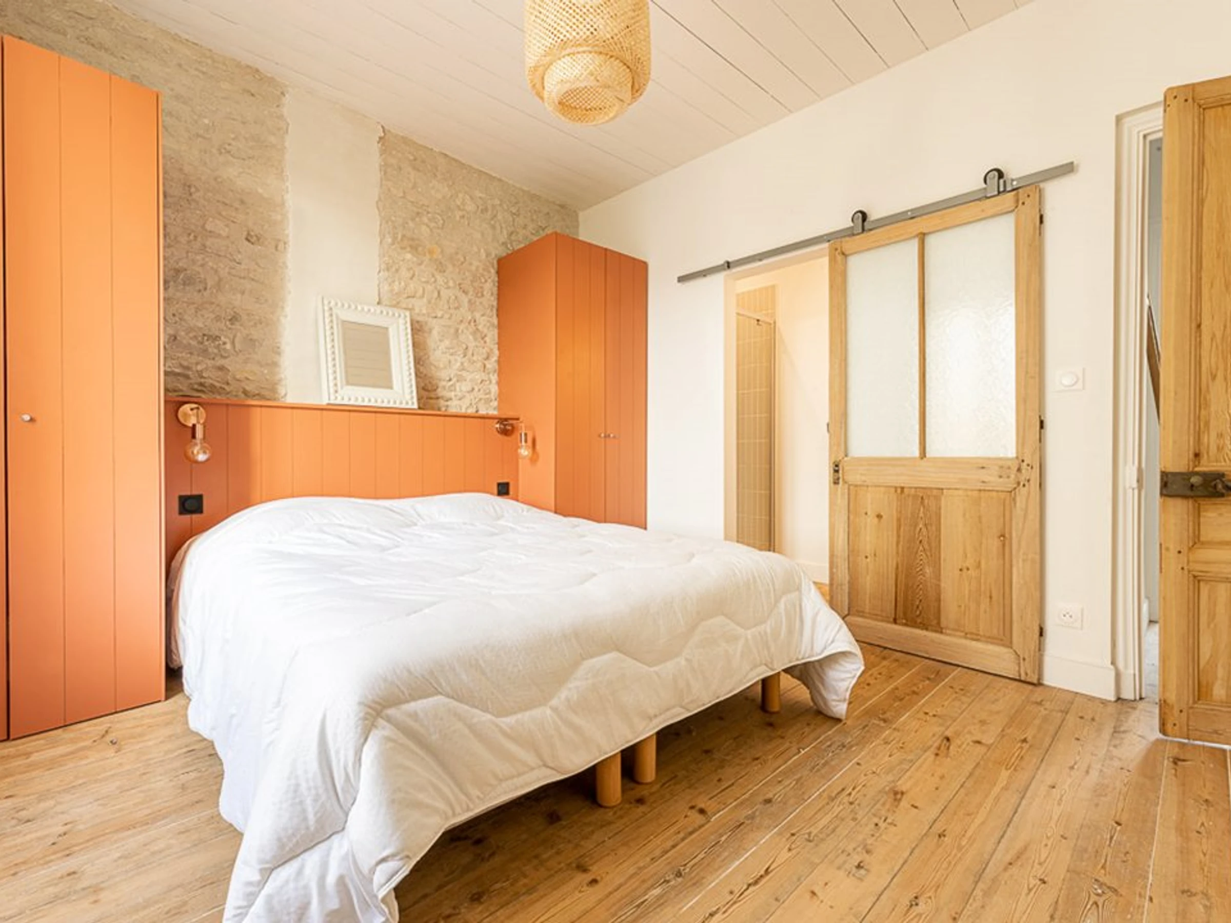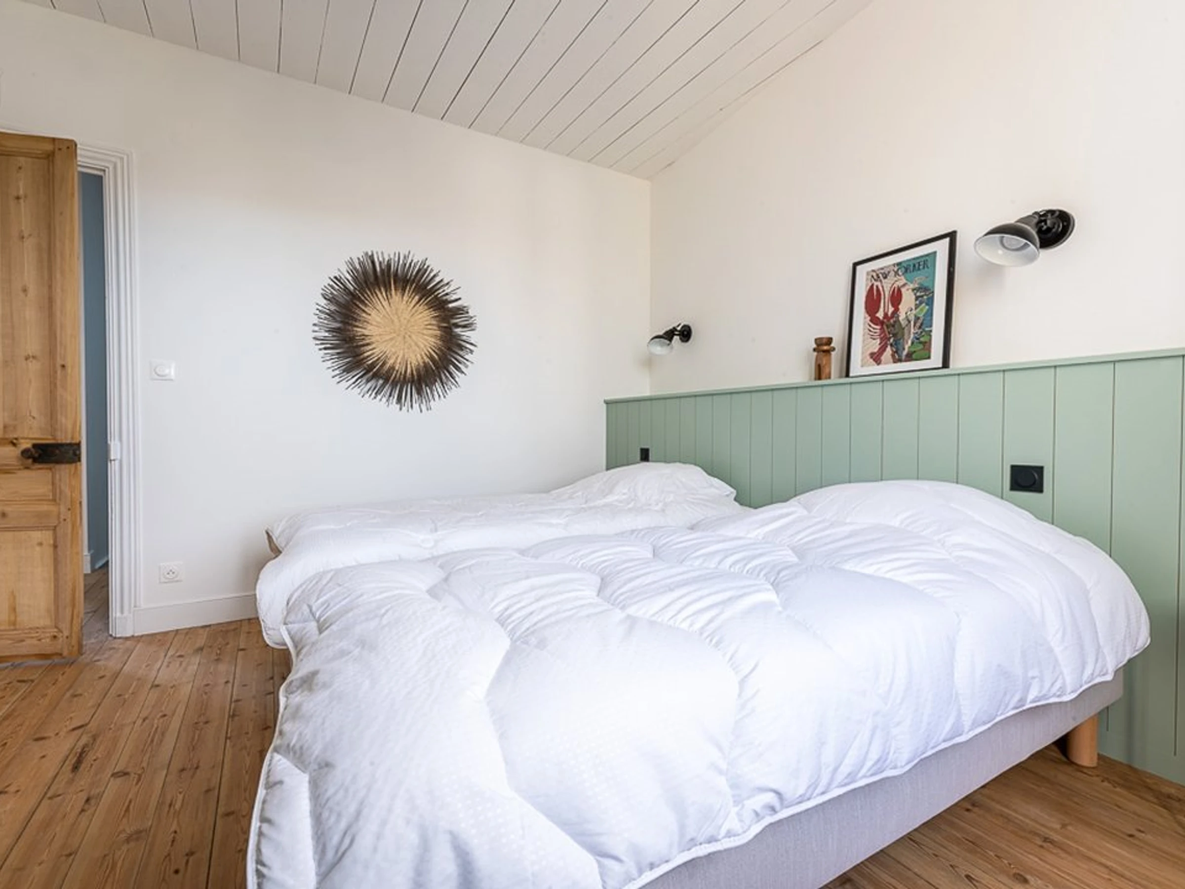 La maison comprend 3 chambres à l’étage : une chambre avec un lit double (côté rue), une chambre avec 2 lits simples (côté jardin), une suite parentale dotée d’une salle d’eau (côté jardin).