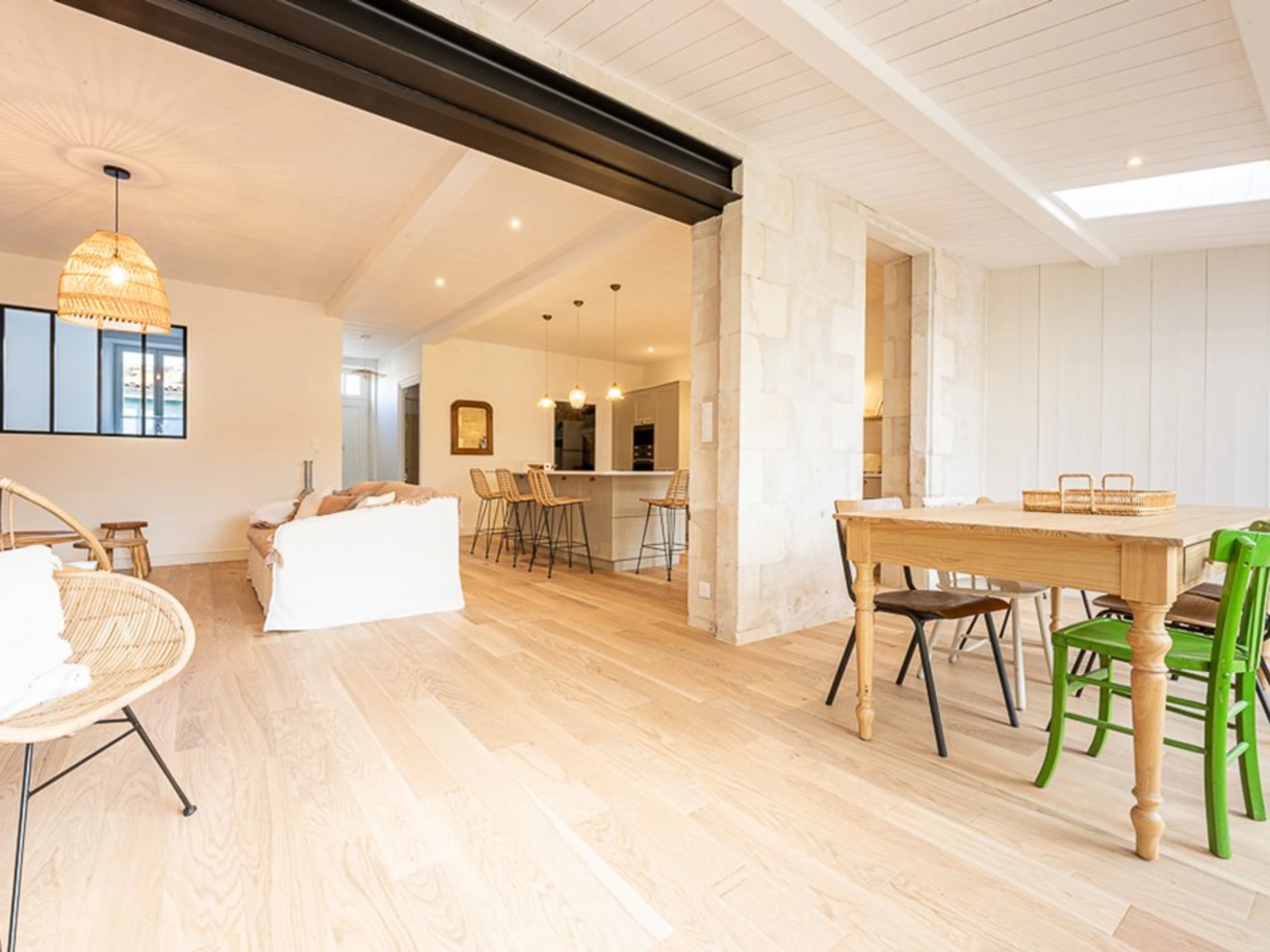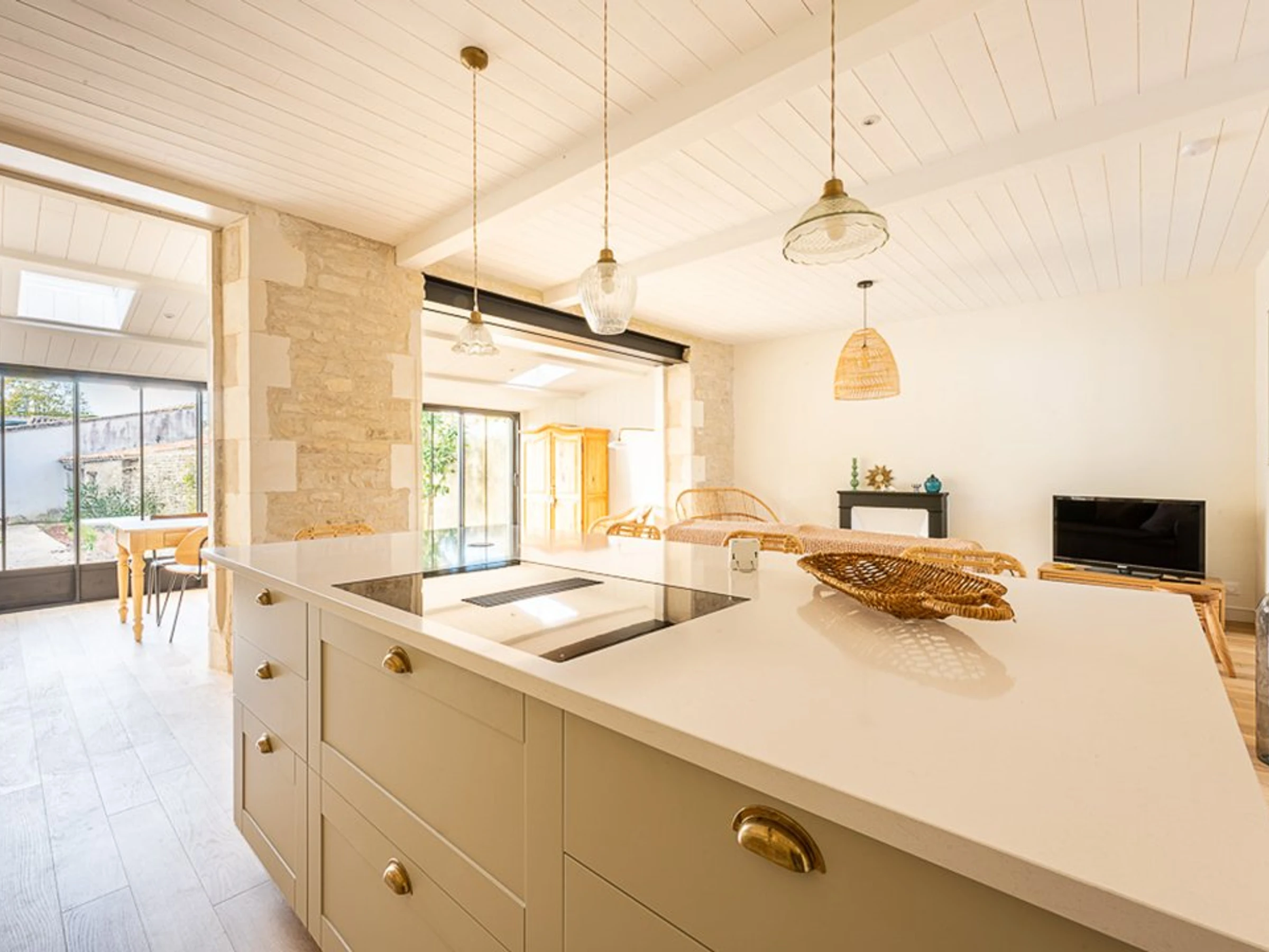 Vous apprécierez l’agencement de la grande pièce de vie principale, qui se compose d’une cuisine ouverte, d’un coin salon et d’une salle à manger ouverte sur la terrasse extérieure.