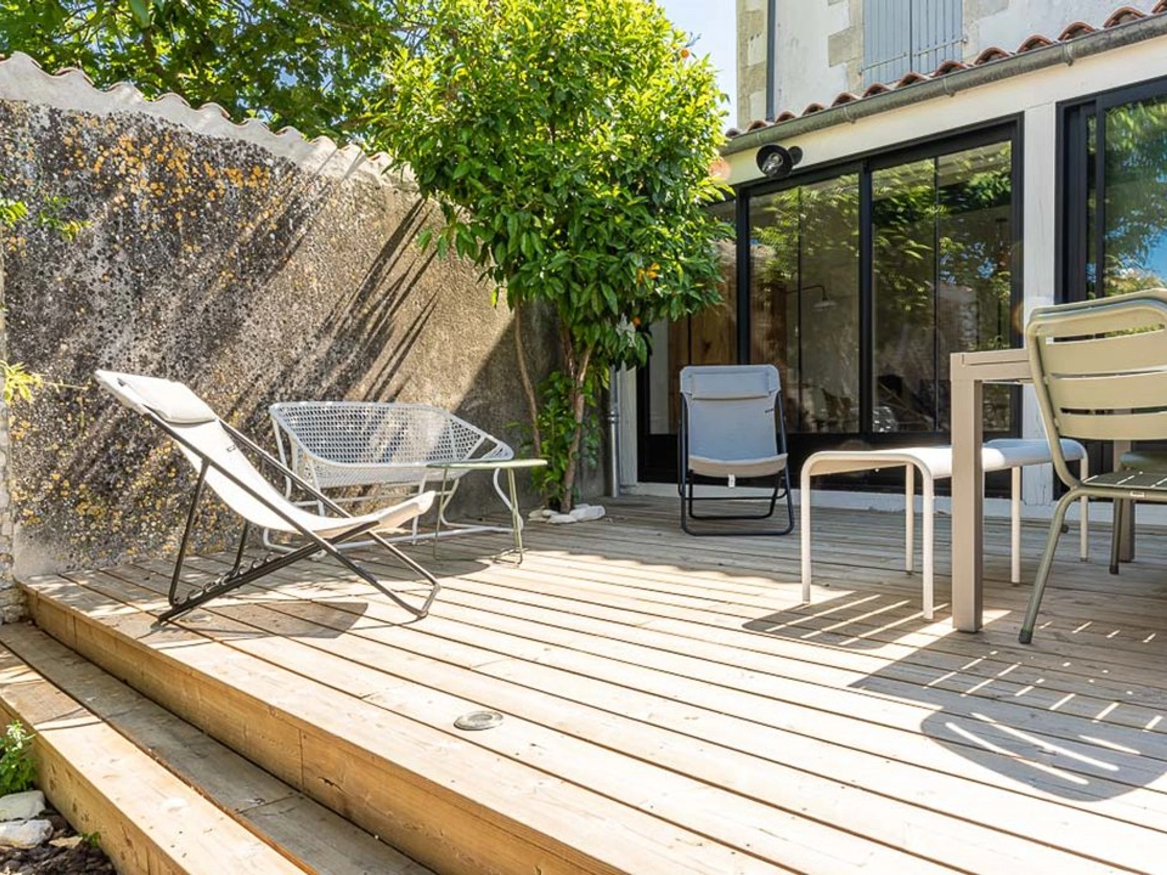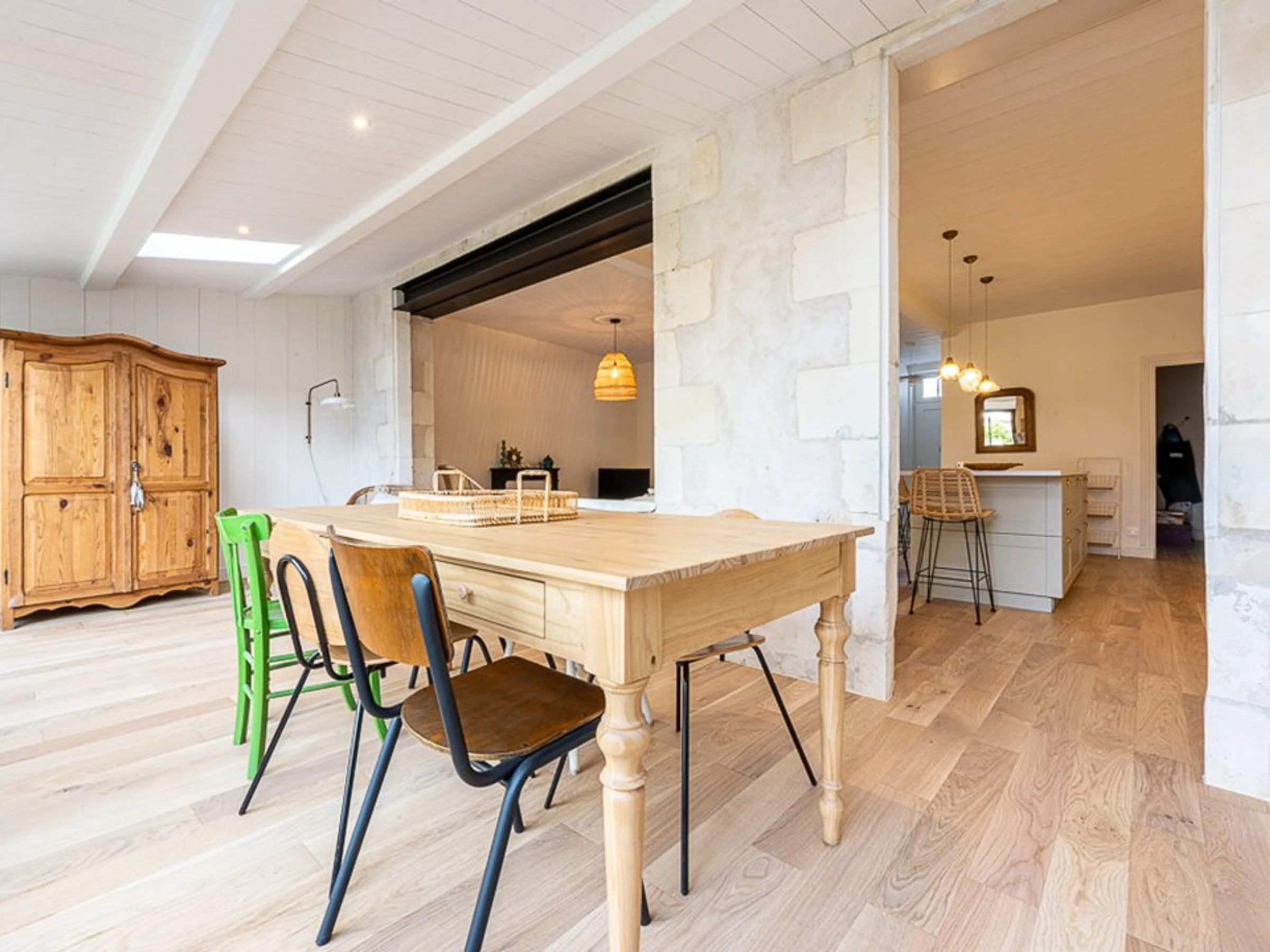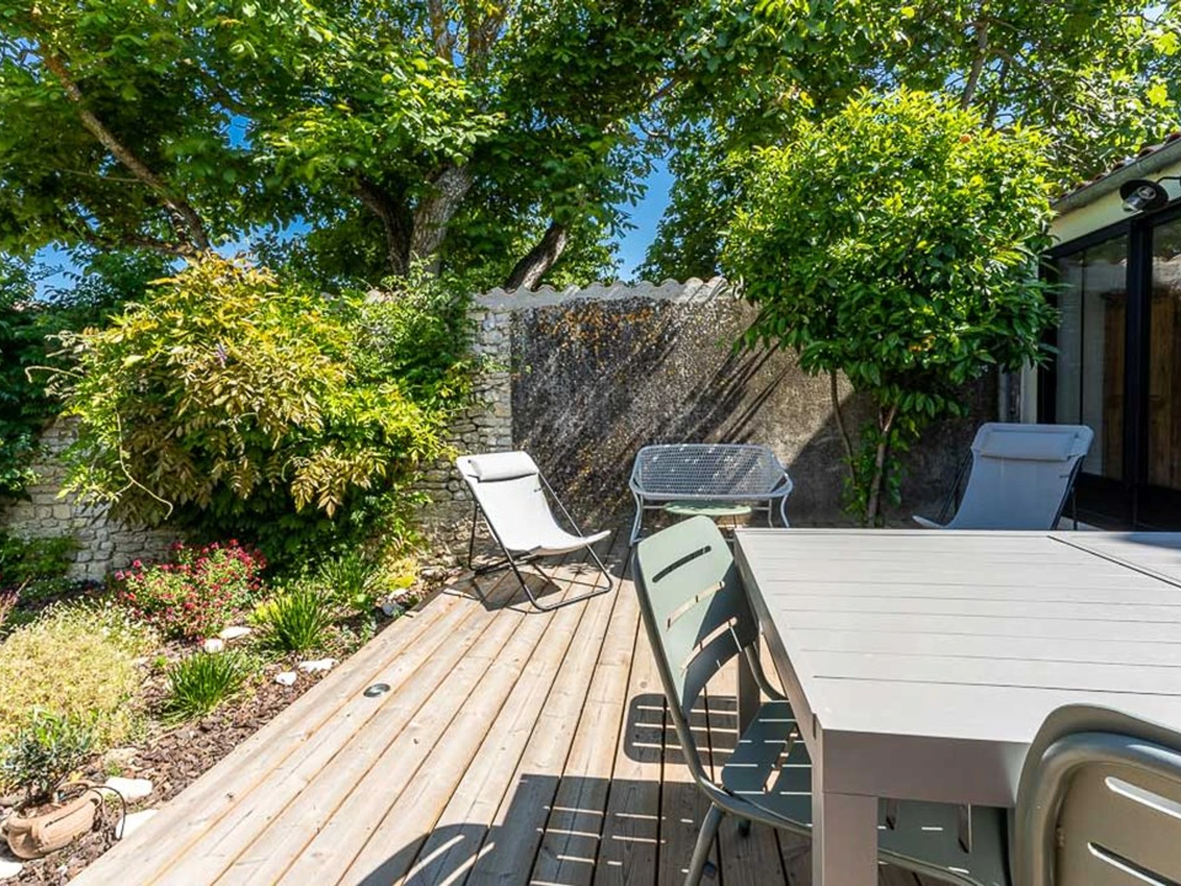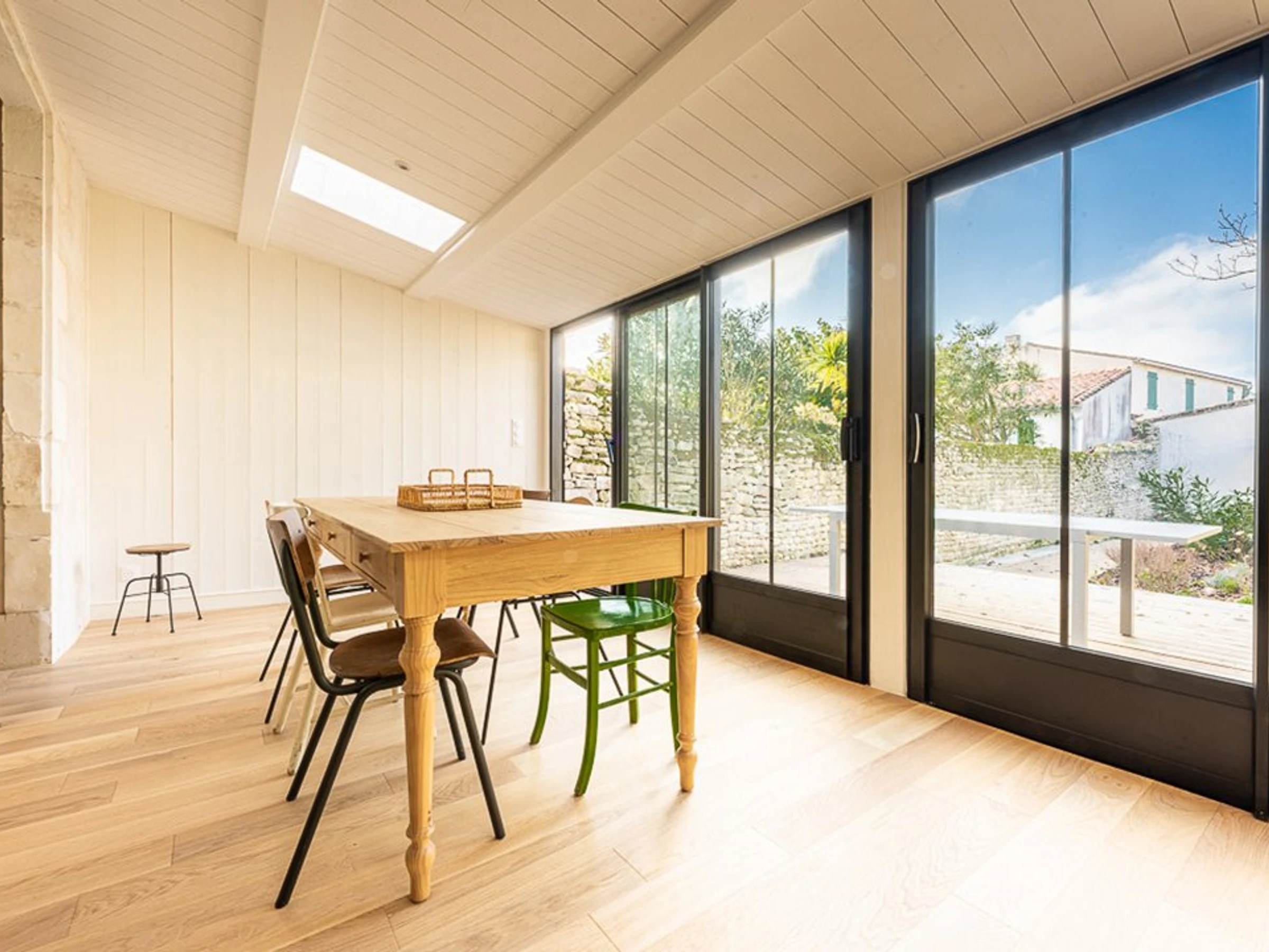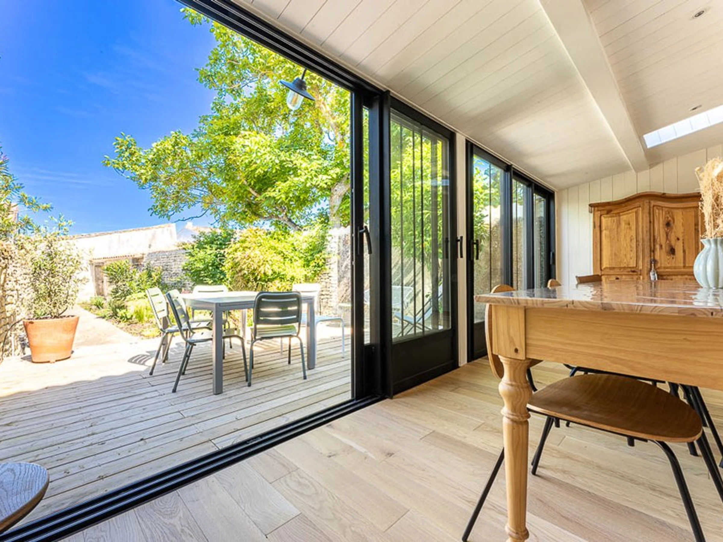 Pour profiter du soleil, vous profiterez de la salle à manger ouverte sur la terrasse en bois, avec ses grandes baies vitrés